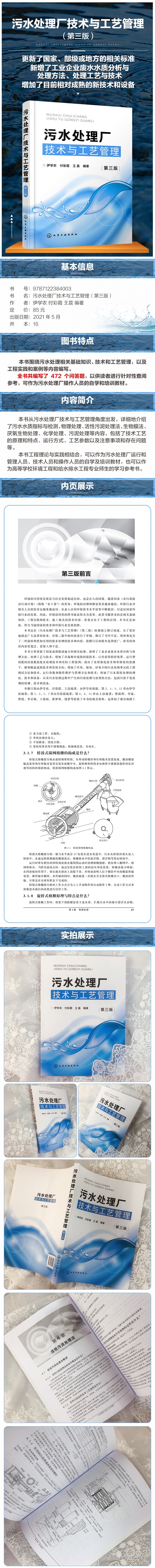 本书是在《污水处理厂技术与工艺管理》(第二版)的基础上修订而成。为了更好地满足广大读者的要求,对第二版中的内容进行了审阅,修订了书中不足,增补和充实了一些新的和更加实用的废水处理的技术和内容,使修订后的版本范围更广,涉及的知识内容更宽泛、更深入和丰富。