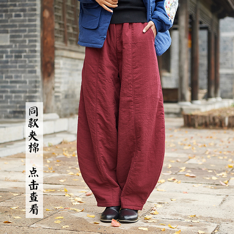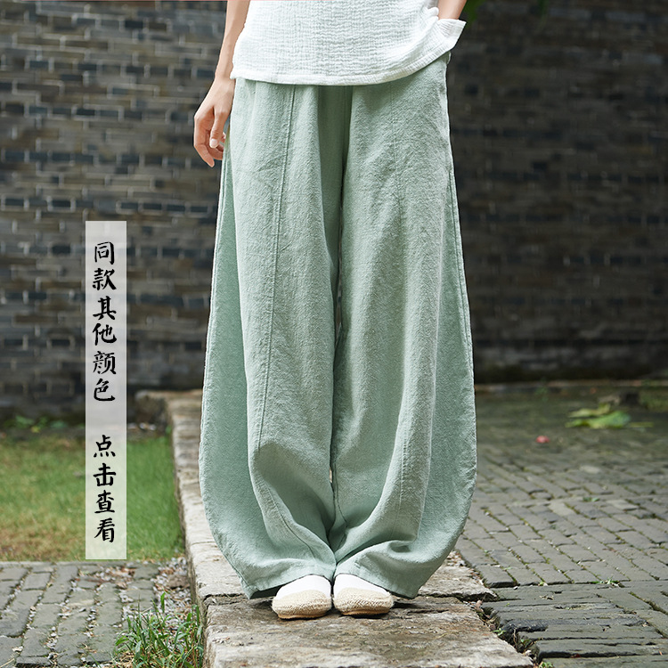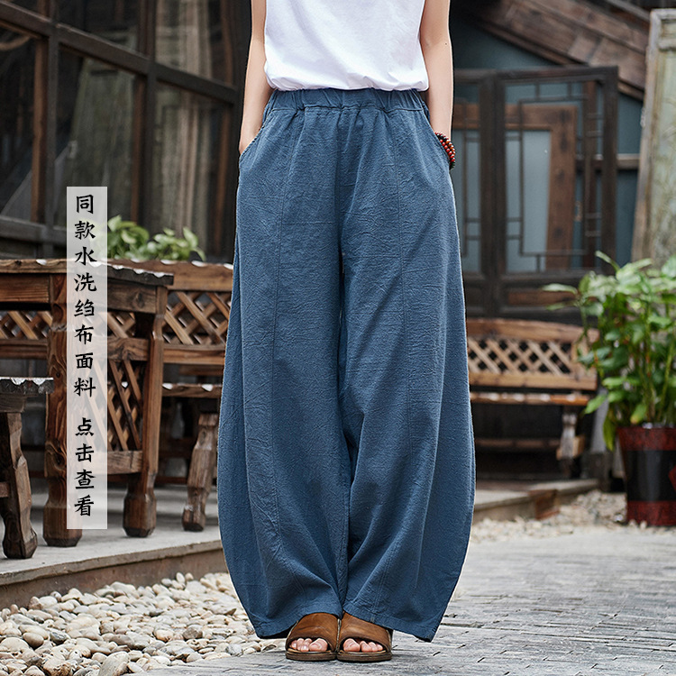 BXF-2318棉麻新品原创国风复古苎麻水洗百搭灯笼裤长裤