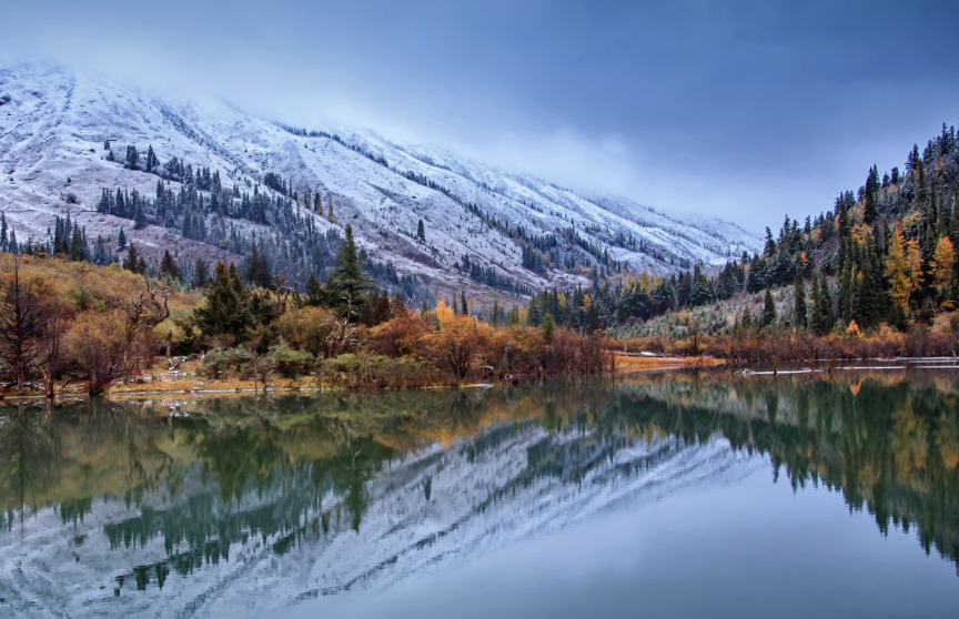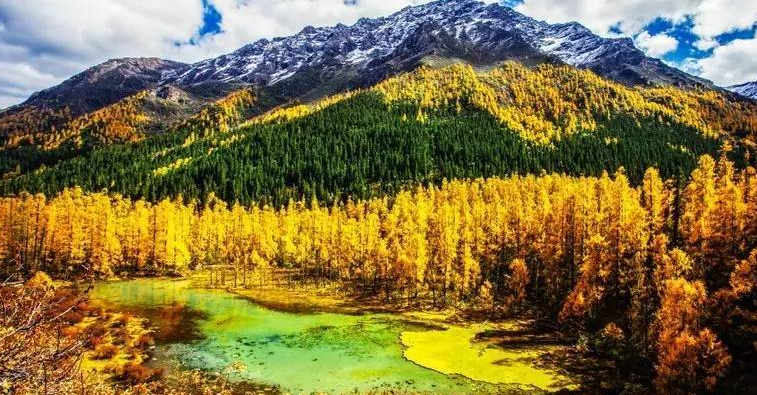 在莲花海国家森林公园里,海拔已有3500米,静逸的湖水清澈见底。