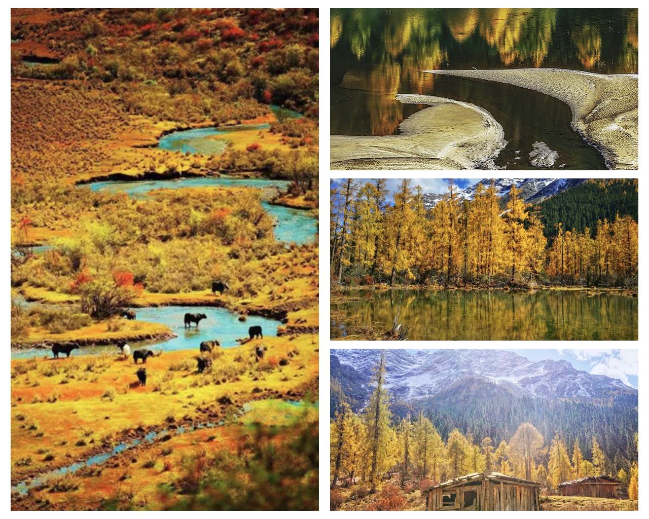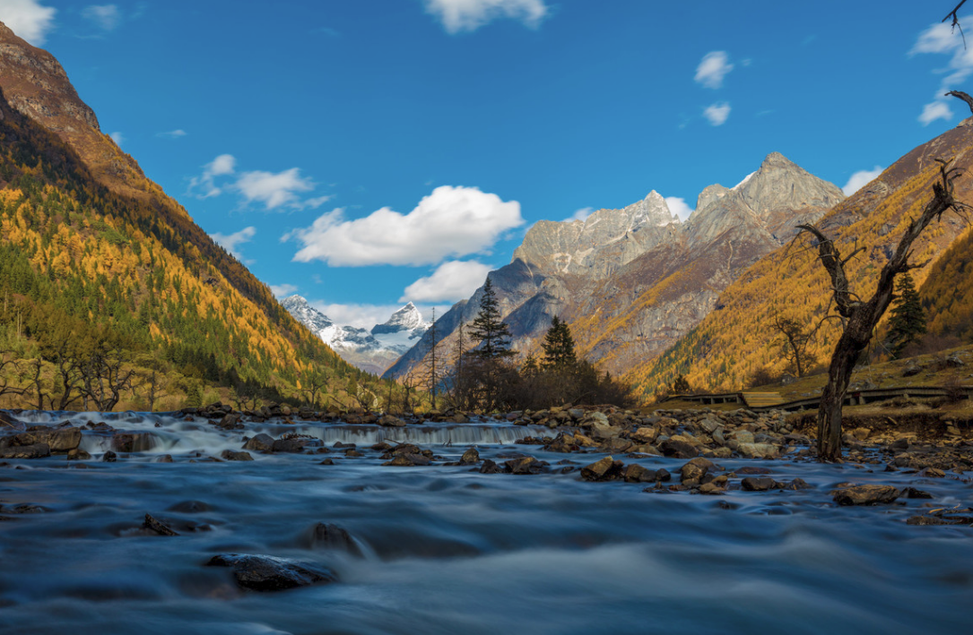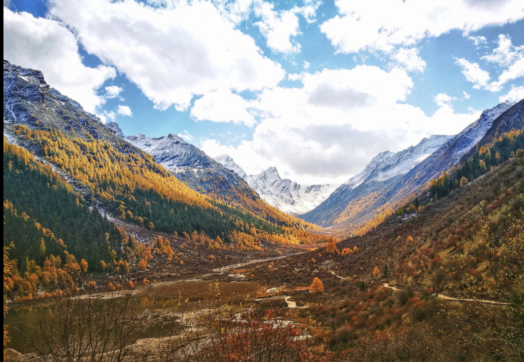 上午游览小众旅游人去的玛嘉沟秋色拍摄创作,湖泊、雪山、彩林、村寨景色;秋天的这里是色彩世界,宛若天上神仙们打翻了的颜料,铺洒了满满一沟,让人陶醉;呈现出蓝天白云、秋高气爽、漫山红遍、层林尽染、五彩斑斓的极致秋韵。下午前往日隆镇。