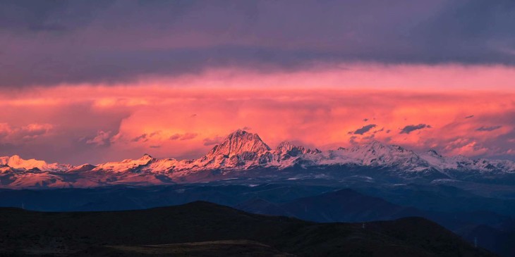 遥望藏区四大神山之一藏区“第二香巴拉”的雅 拉神山全貌和四川最高峰“蜀山之王”的木雅贡嘎大雪山山系全貌,为贡 嘎西坡地区难得的观景摄影点。