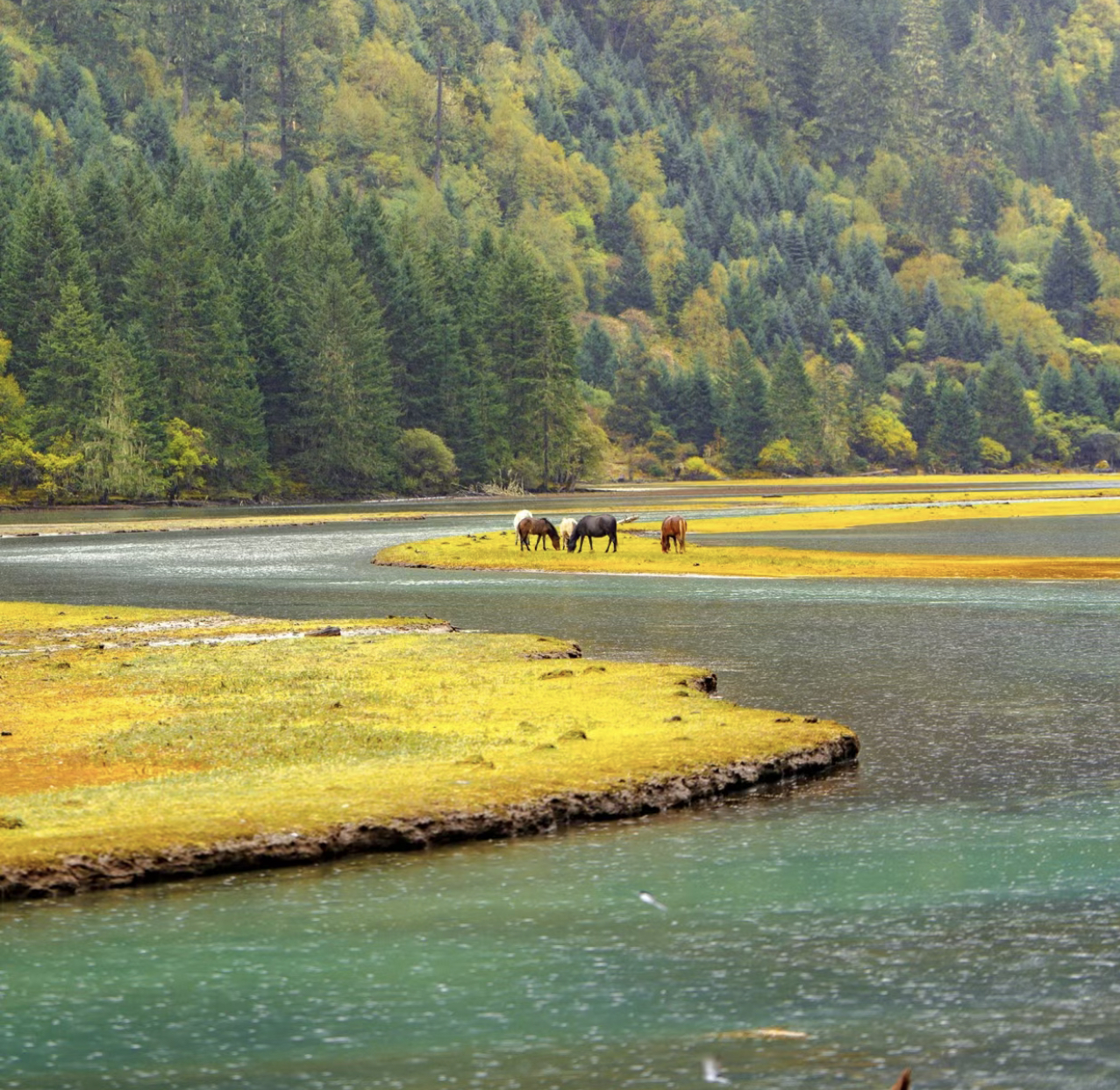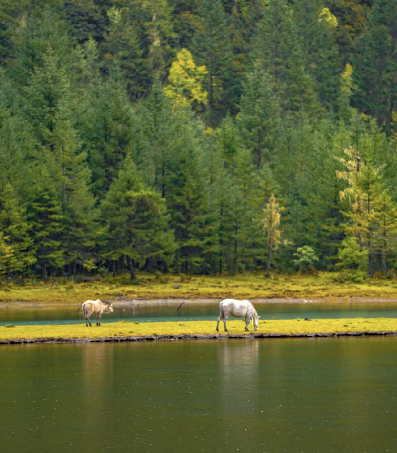 还有枯木若影若现,一切很像九寨沟里海子的水景,但更不加修饰的自然美。