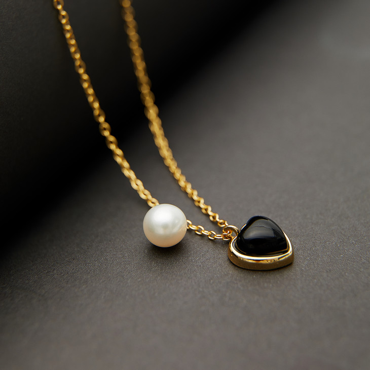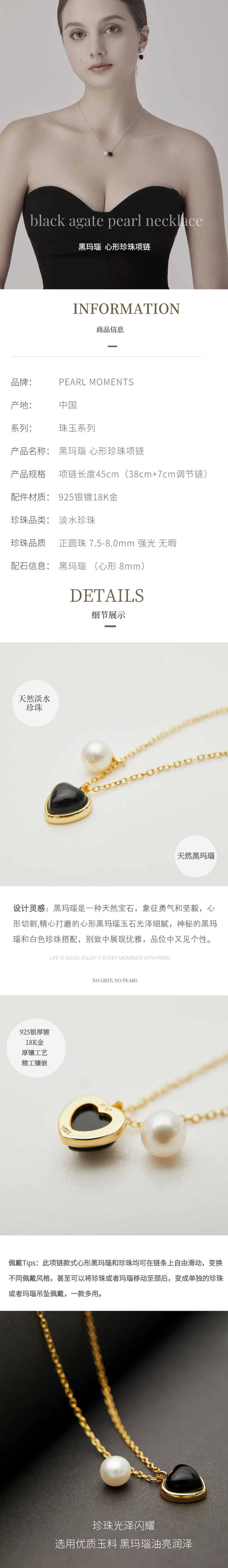 Pearl moments南红 黑玛瑙/黑贝母/南红小心心天然淡水珍珠项链【该商品不支持用券】