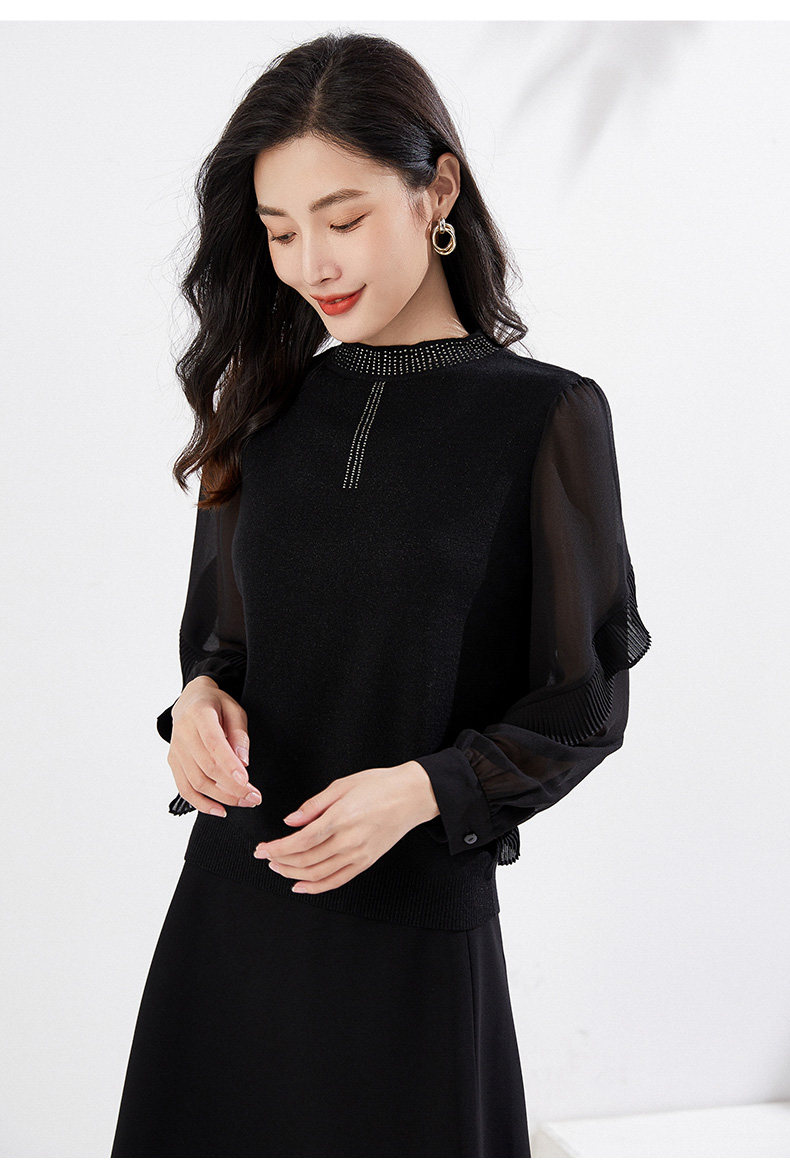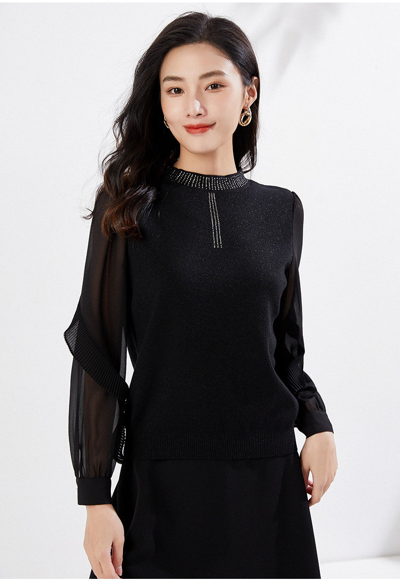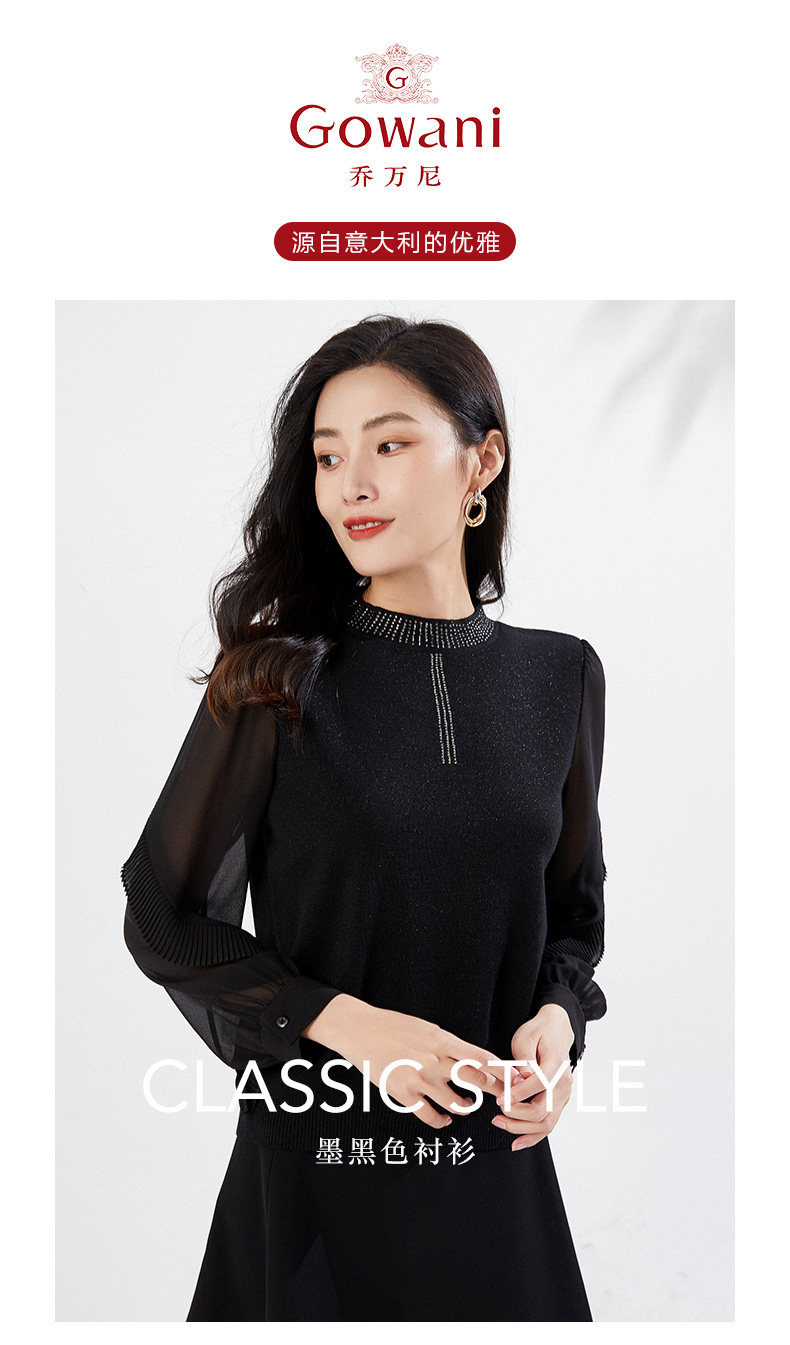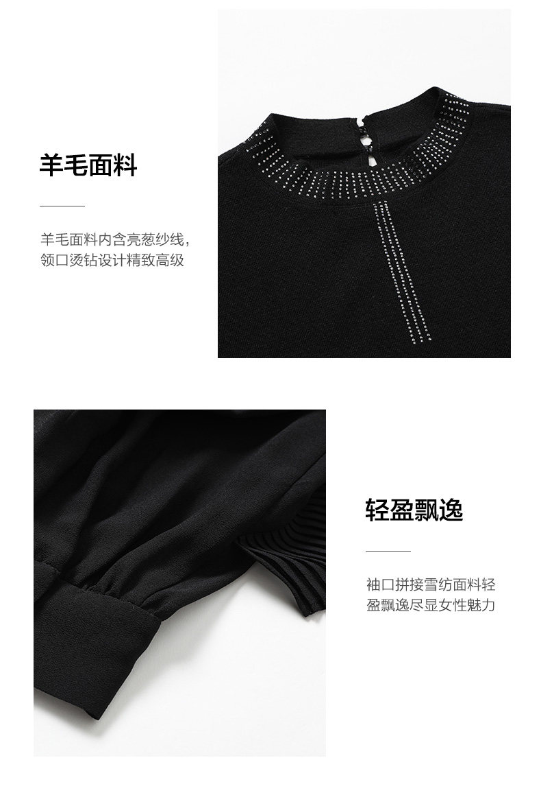 乔万尼春新品绵羊毛小香风毛针织衫拼接微透设计EI3M260