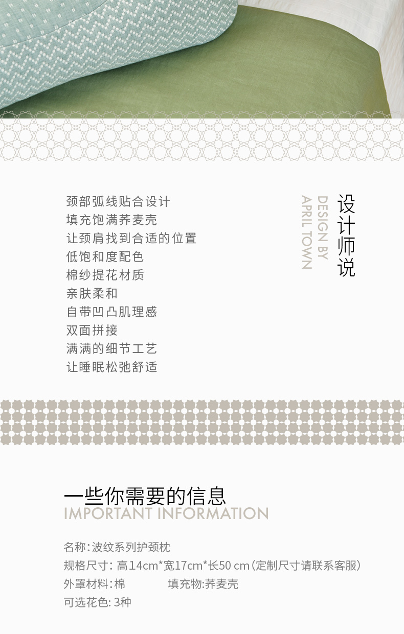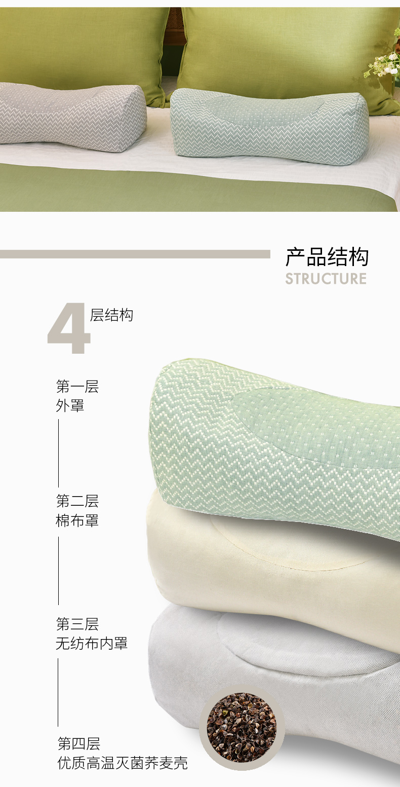 波纹系列护颈枕荞麦壳枕头学生儿童睡眠护颈枕