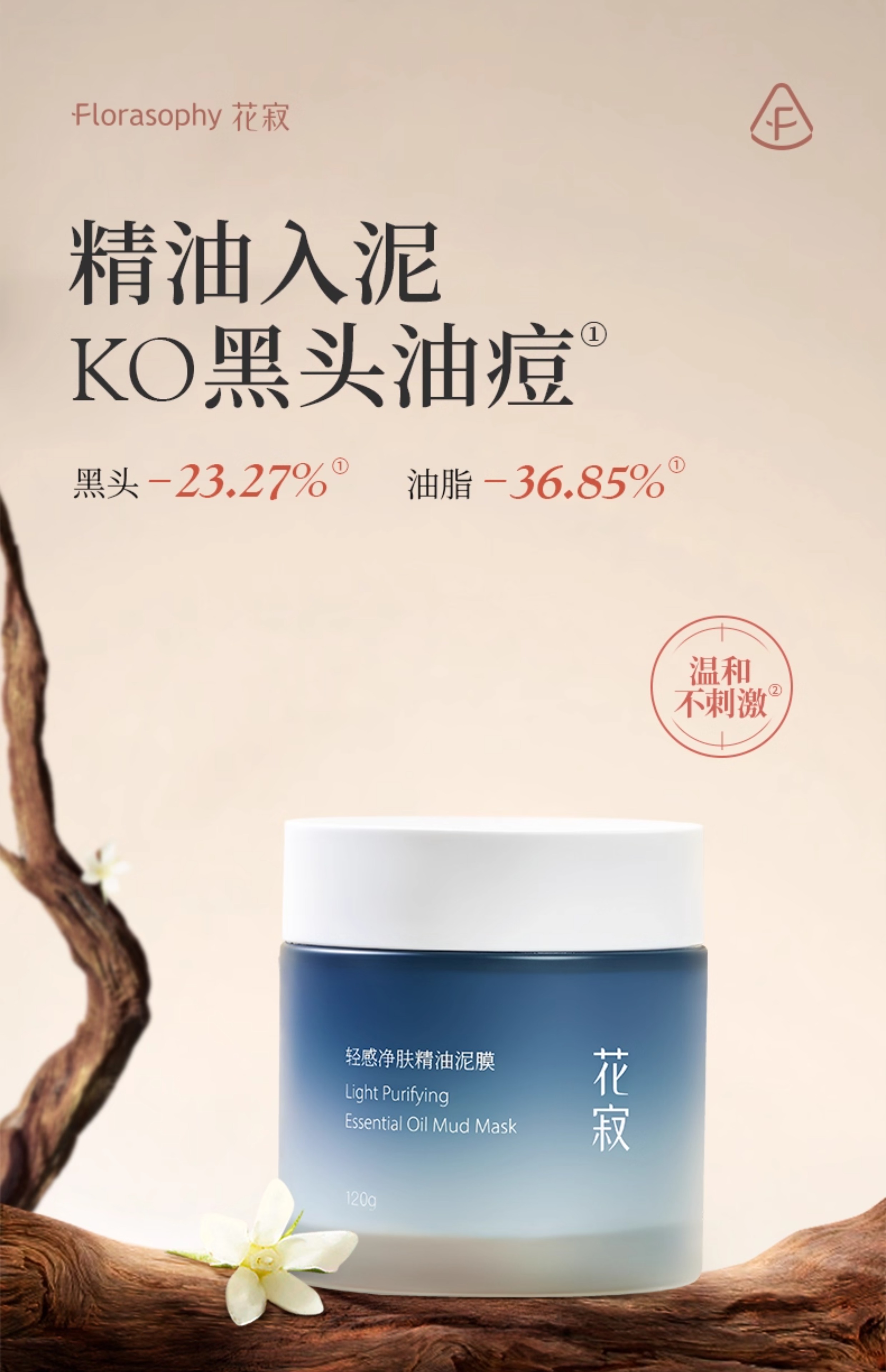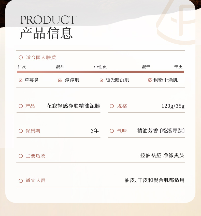 【赠同款泥膜6g*6袋】花寂 轻感净肤精油泥膜120g/瓶