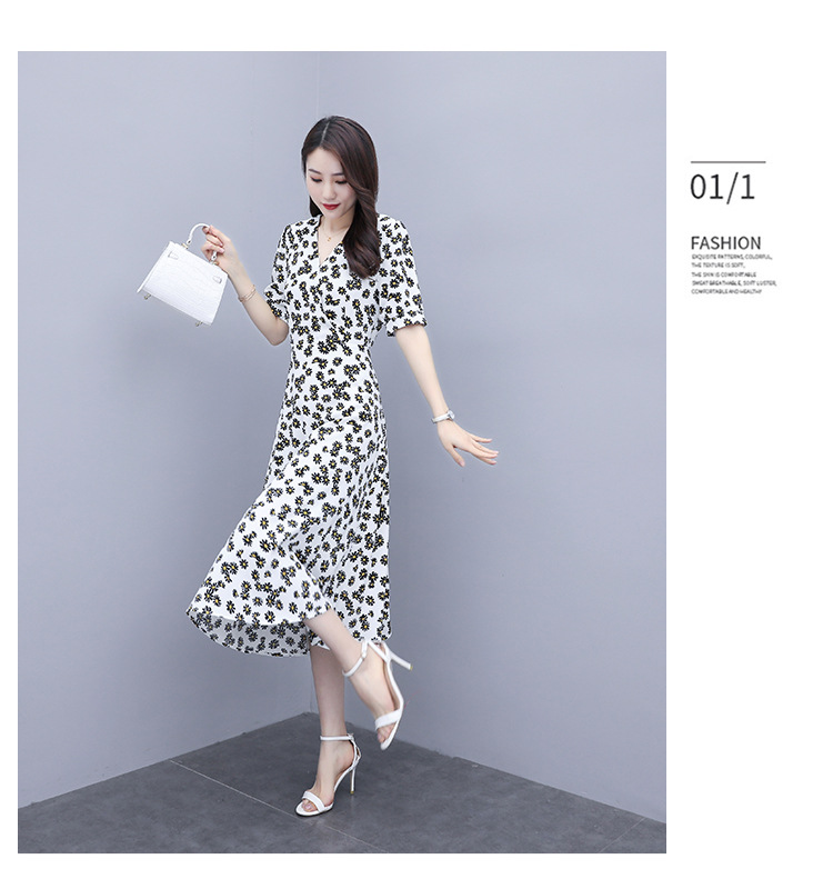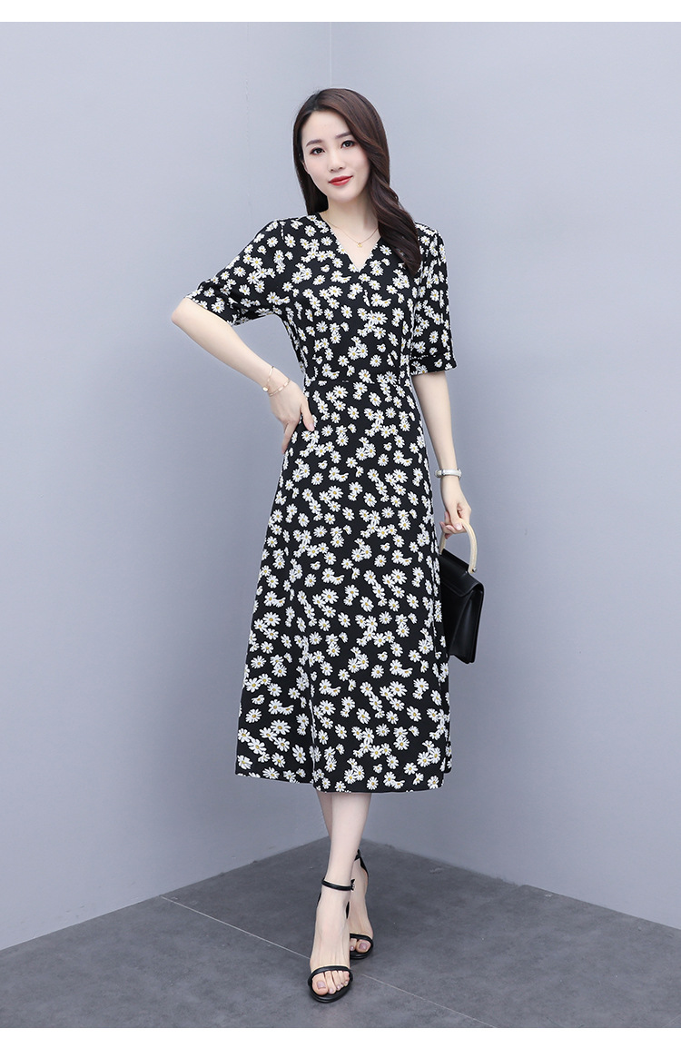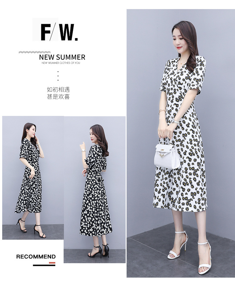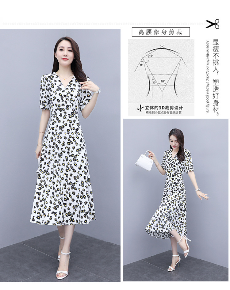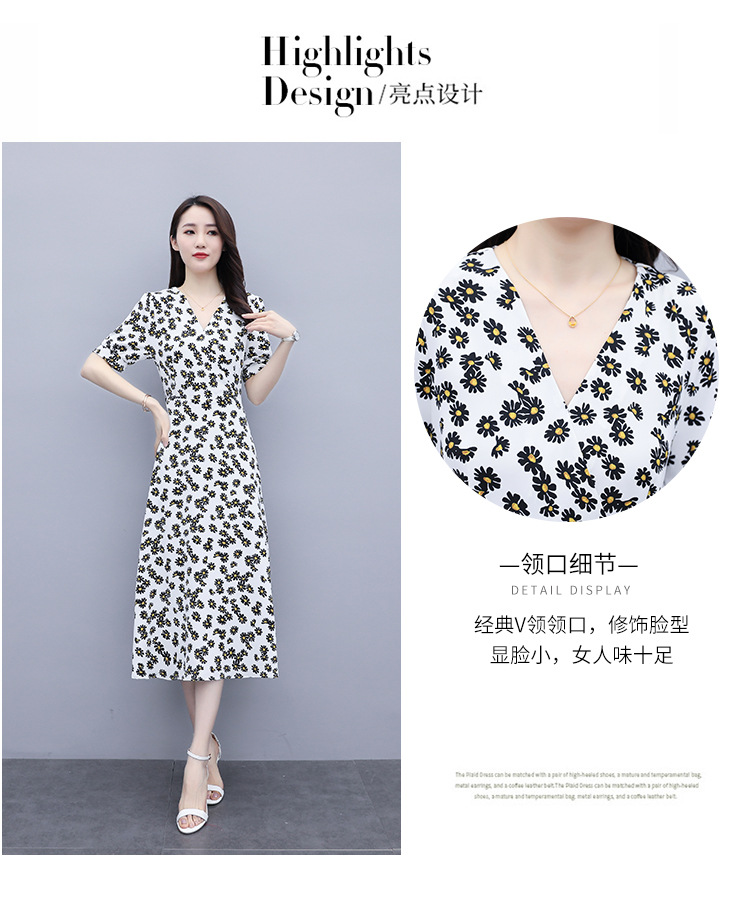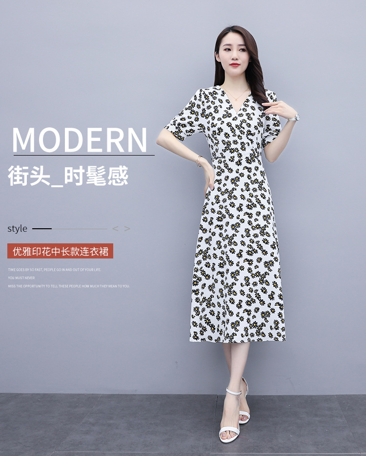 WZNH-WR16869淑女气质女装V领A字裙连衣裙