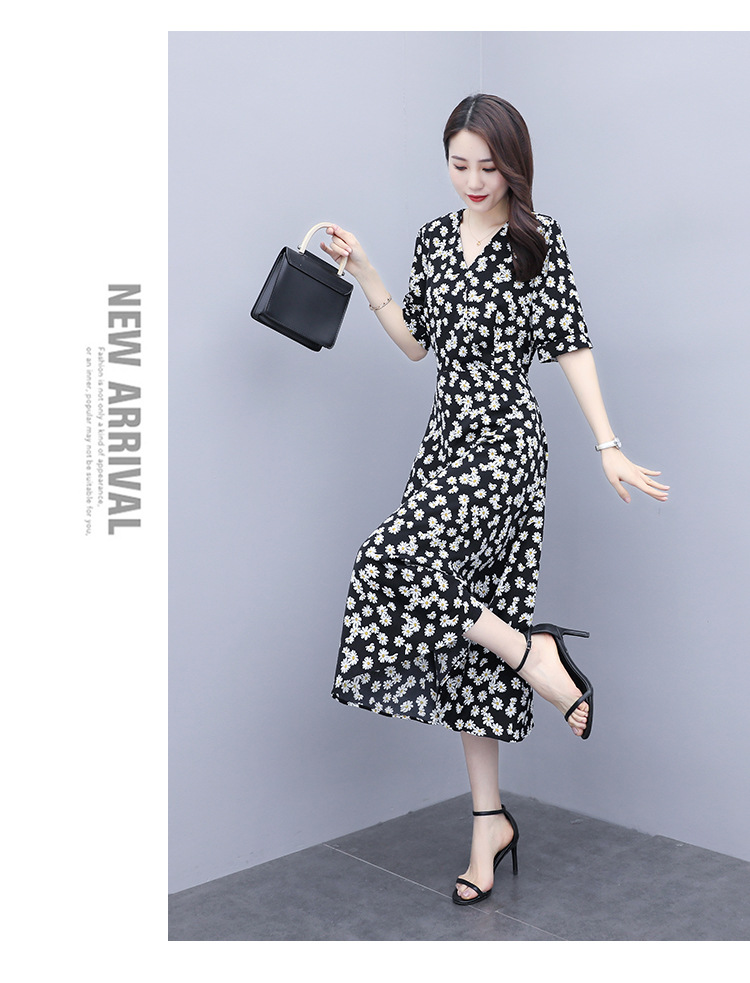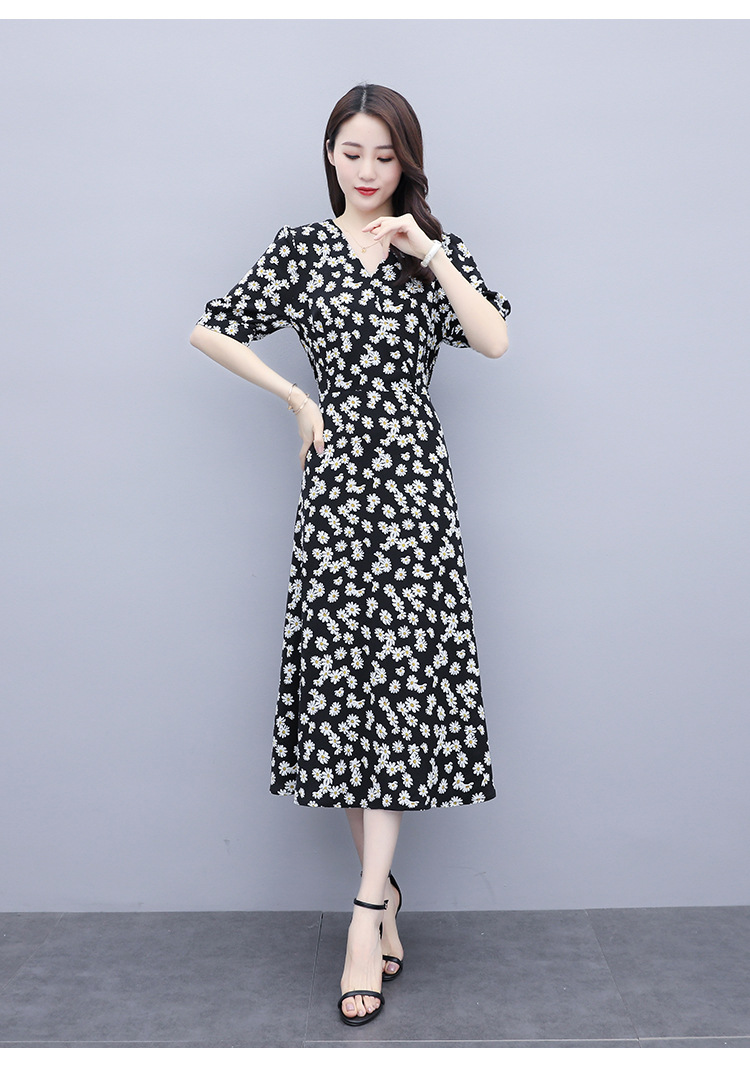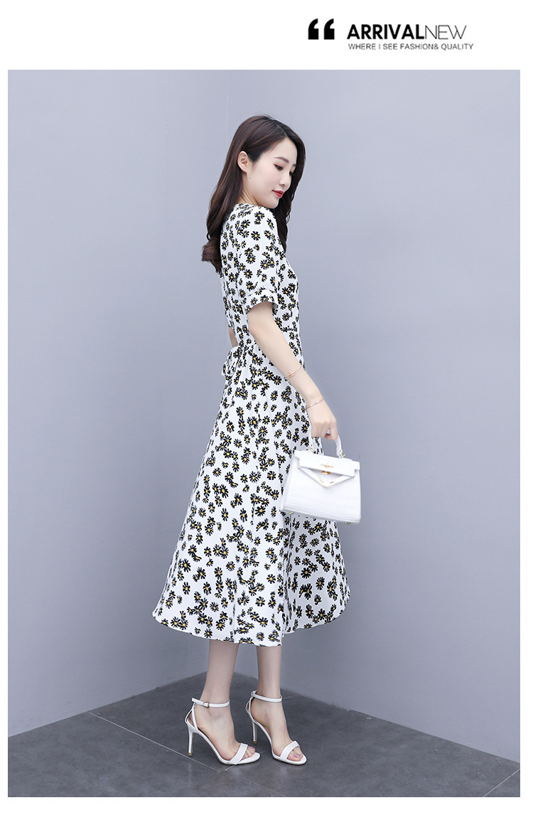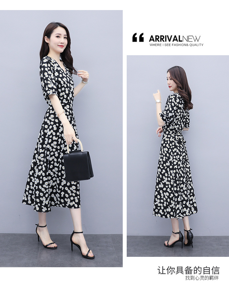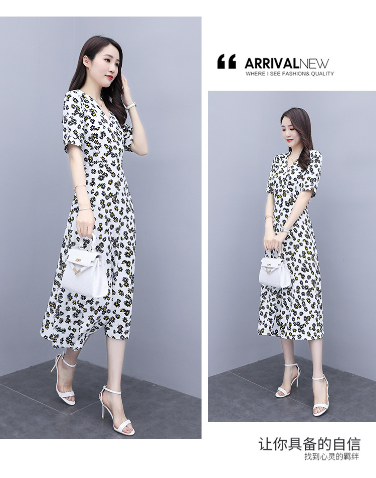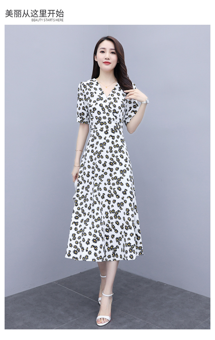 WZNH-WR16869淑女气质女装V领A字裙连衣裙