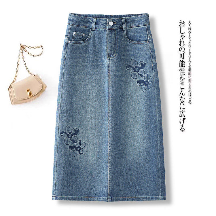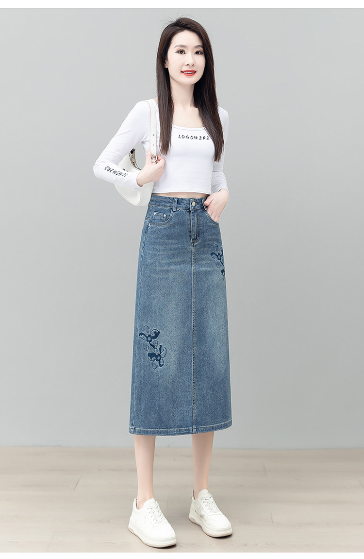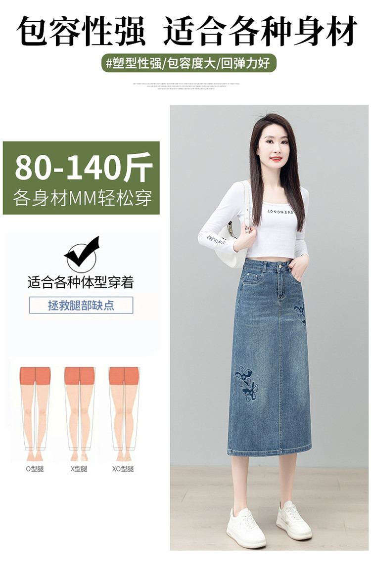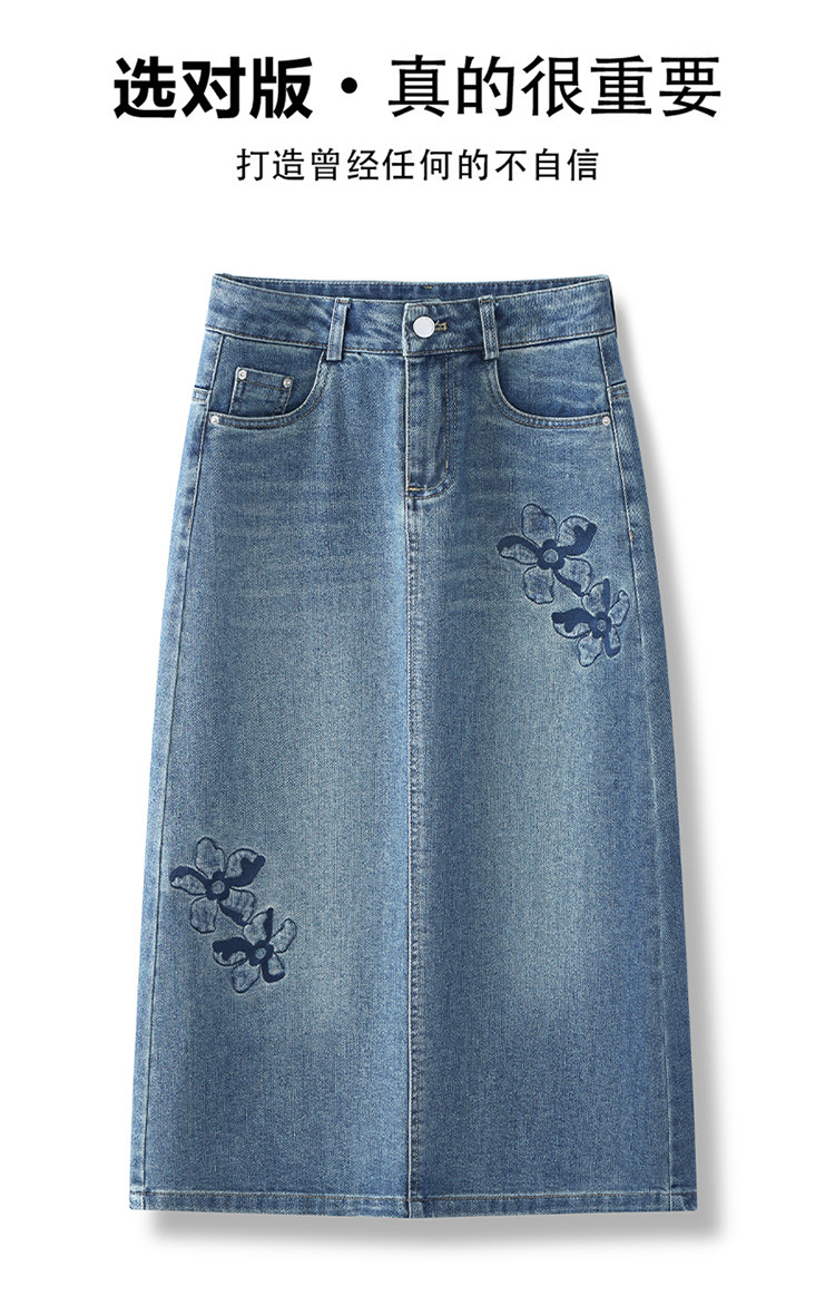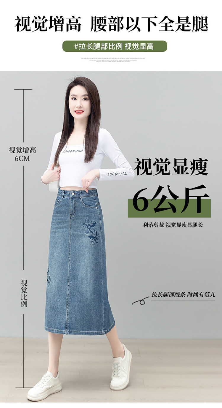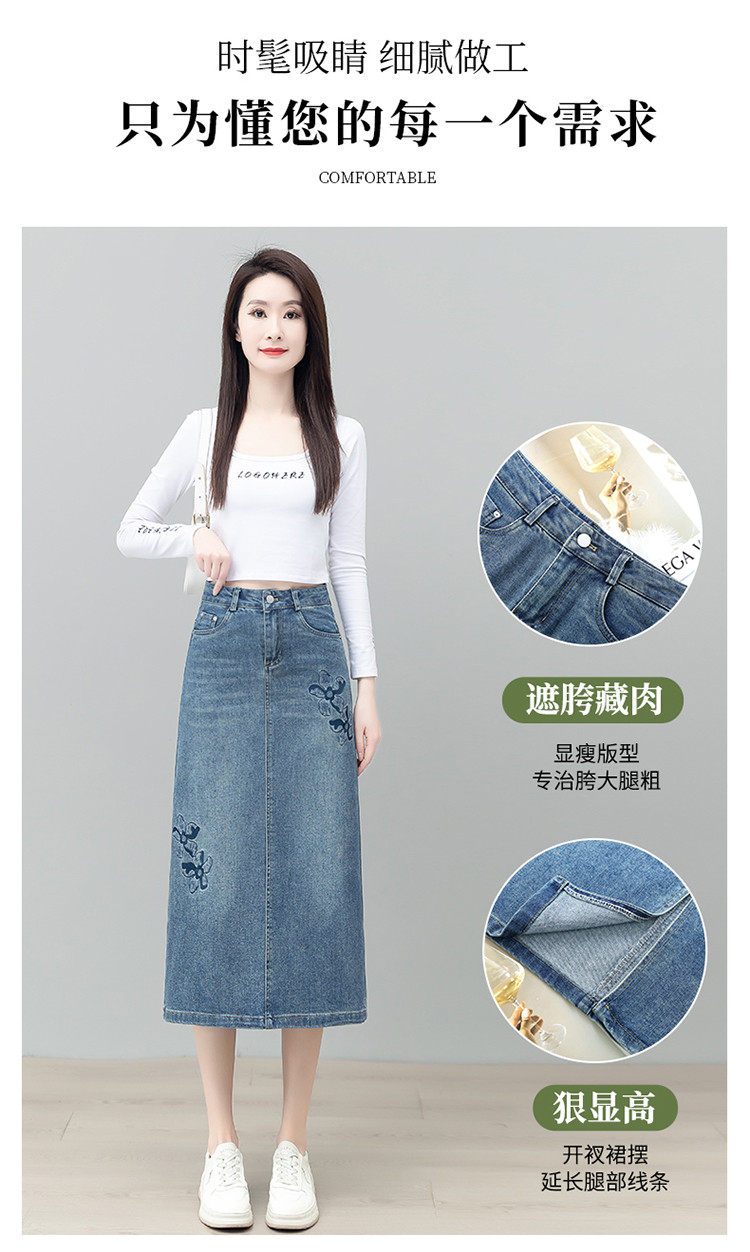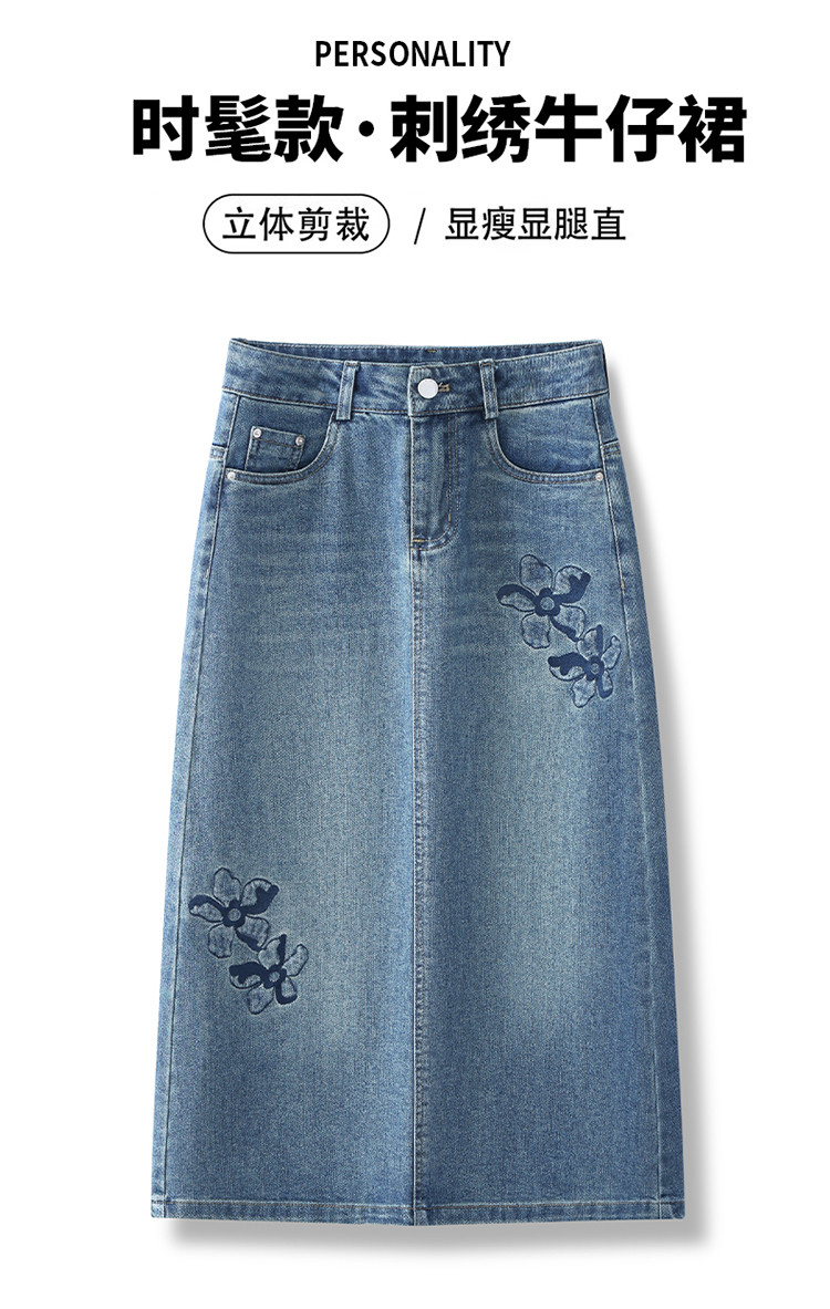 PY-2025年新款高腰显瘦中长裙一步直筒裙刺绣花朵牛仔裙半身裙女SRS&WM8937