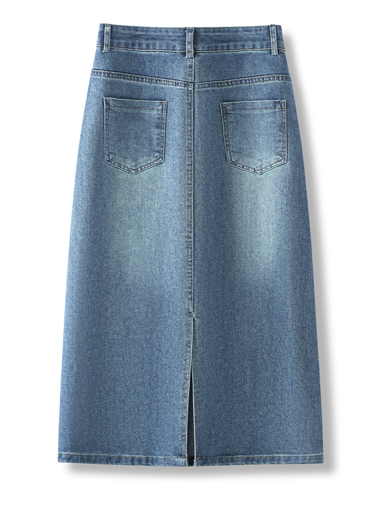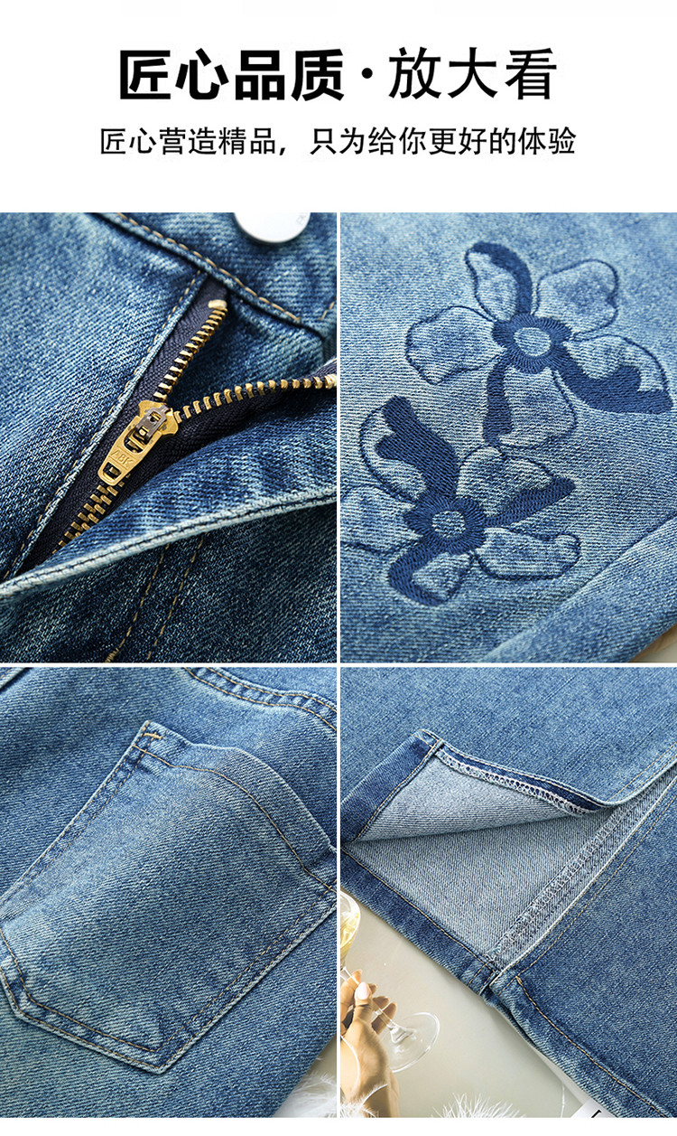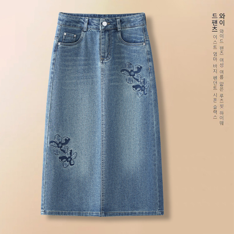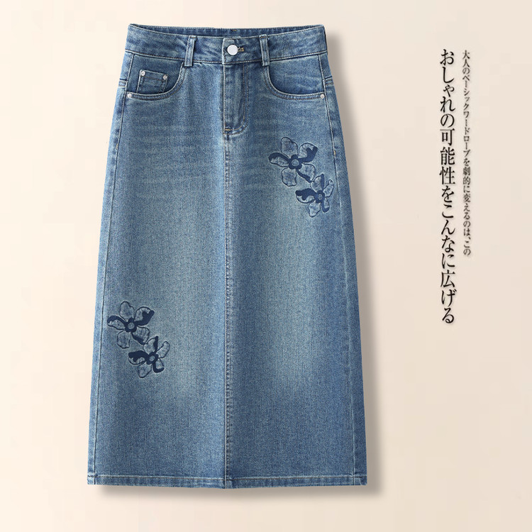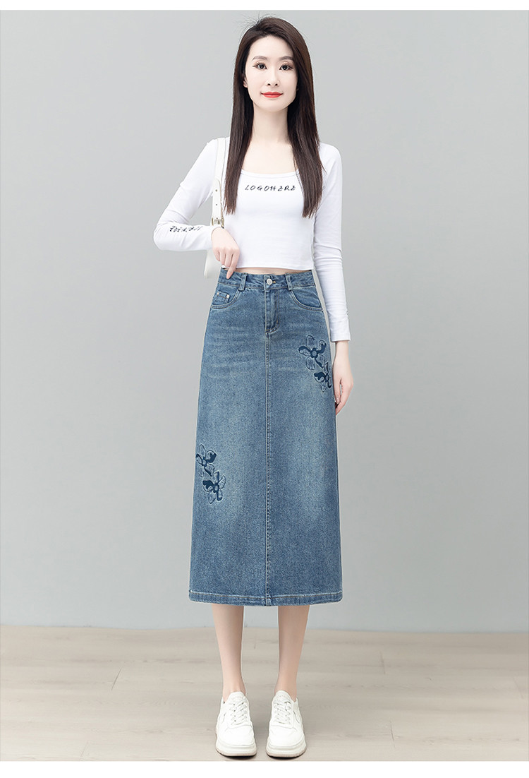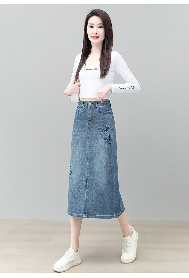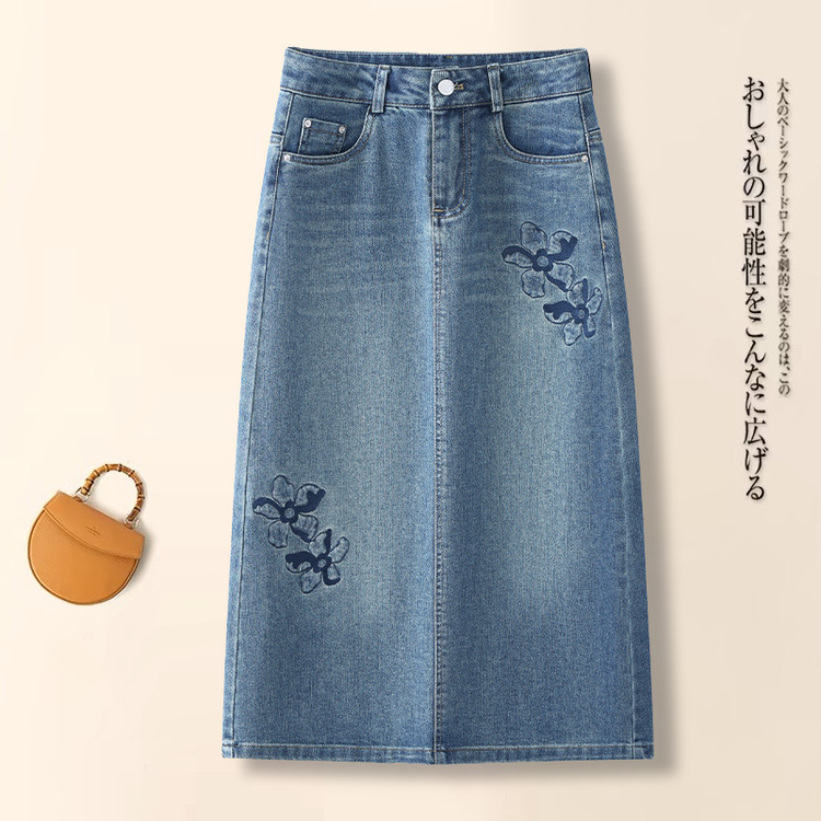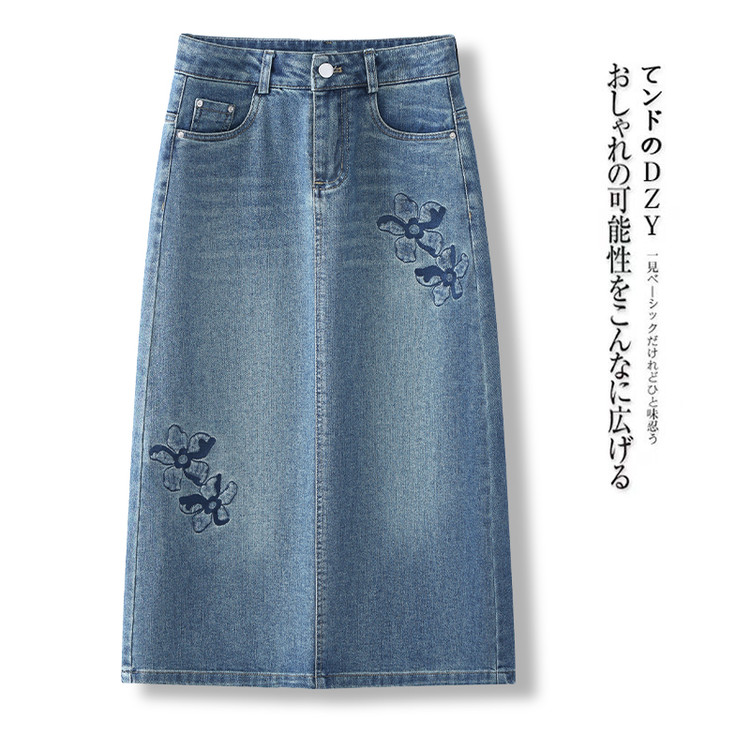 PY-2025年新款高腰显瘦中长裙一步直筒裙刺绣花朵牛仔裙半身裙女SRS&WM8937