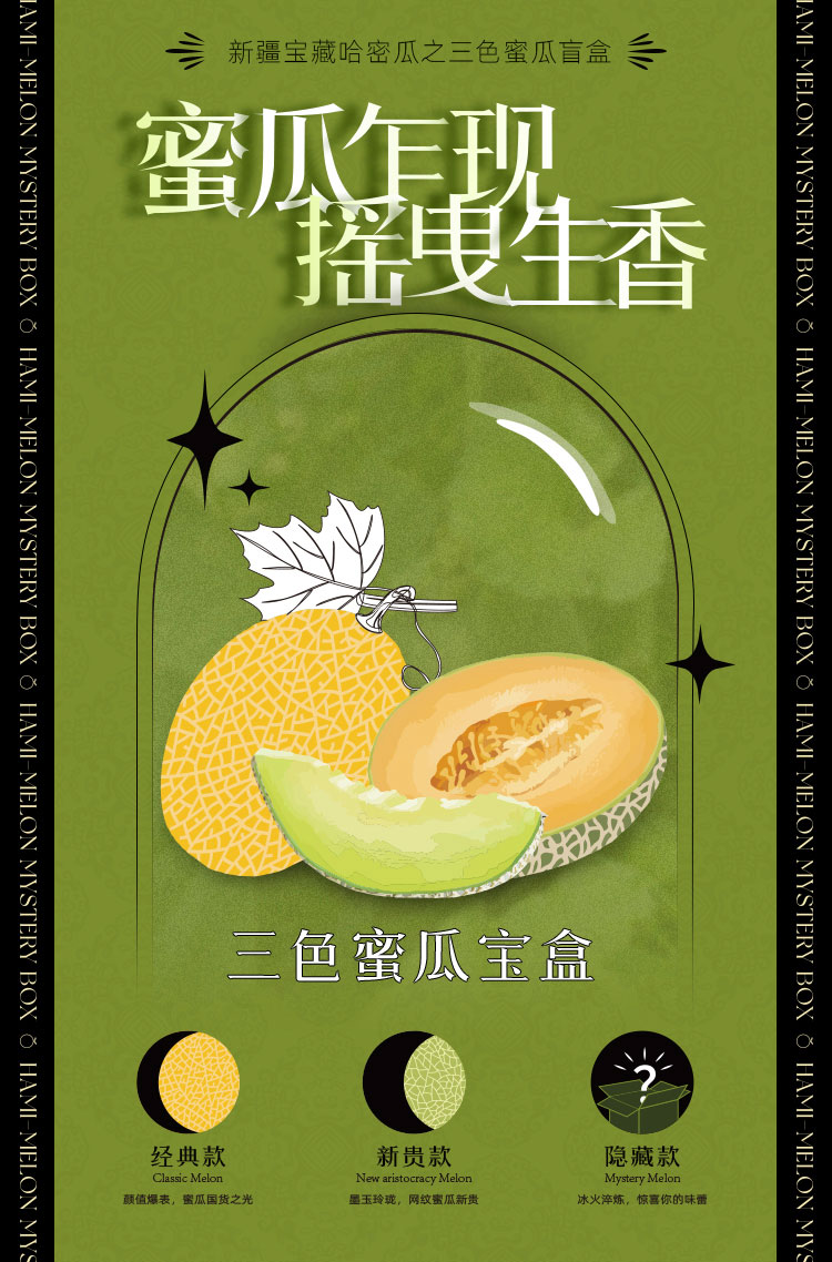 【品名】冰火蜜瓜三色哈密瓜宝盒