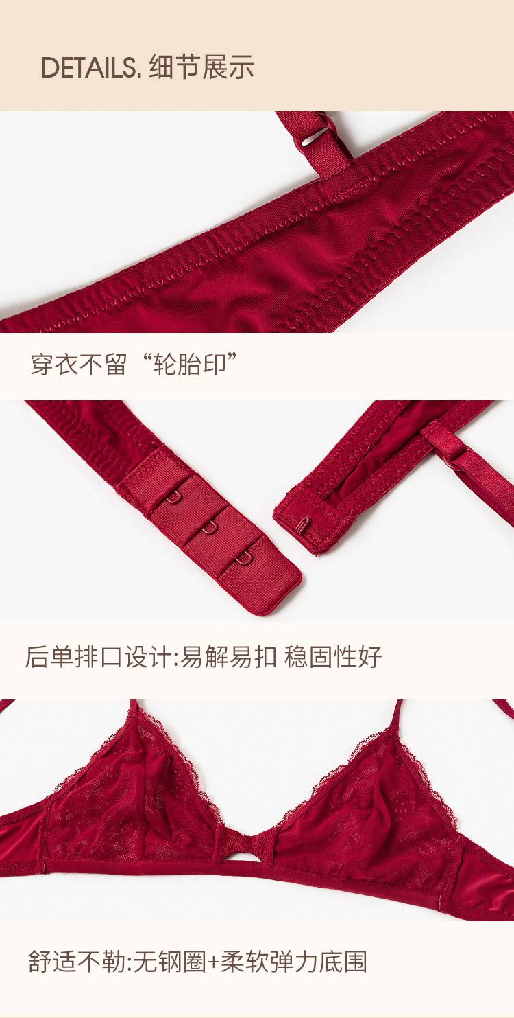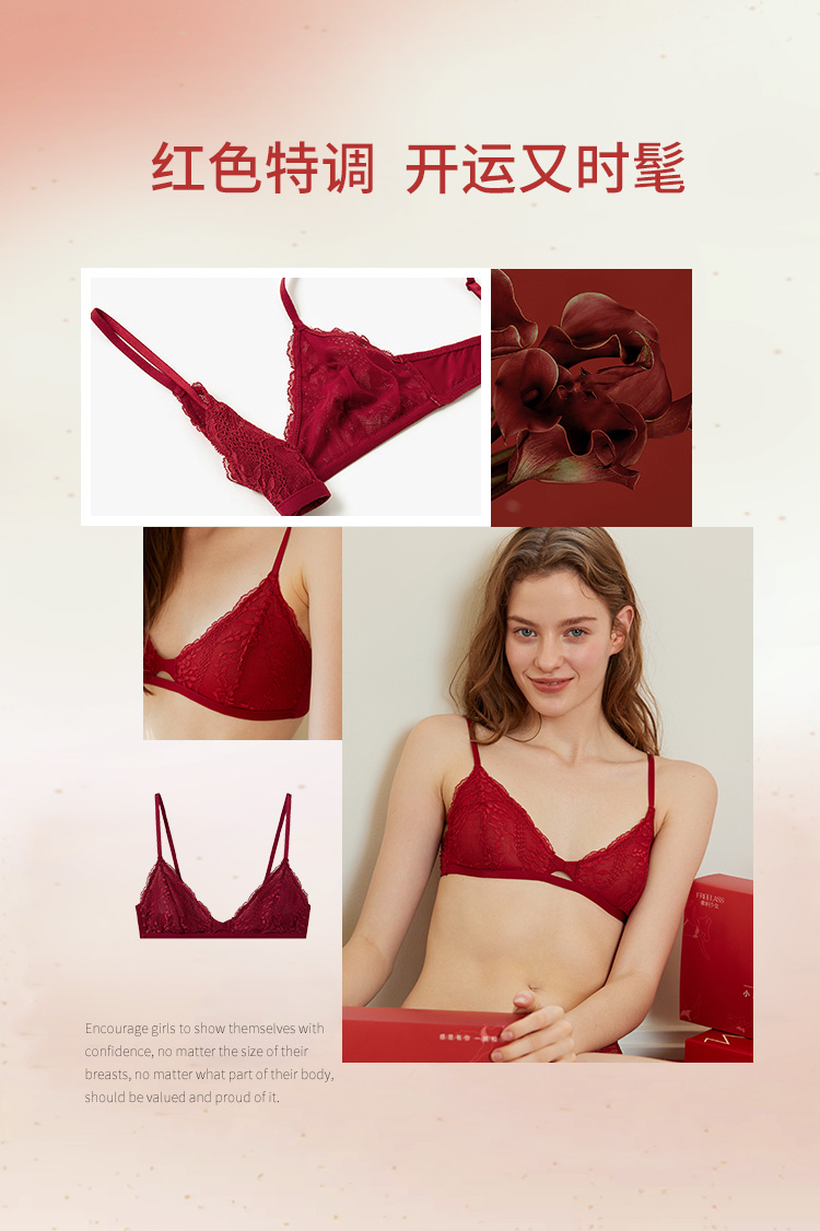 弗利少女红色法式蕾丝内衣女本命年结婚胸罩无钢圈小胸文胸