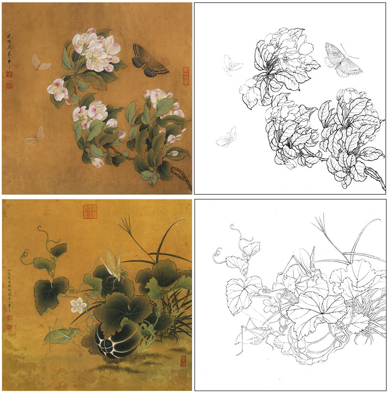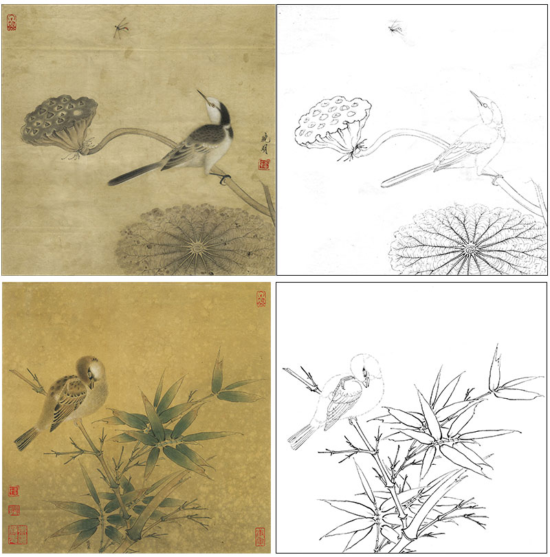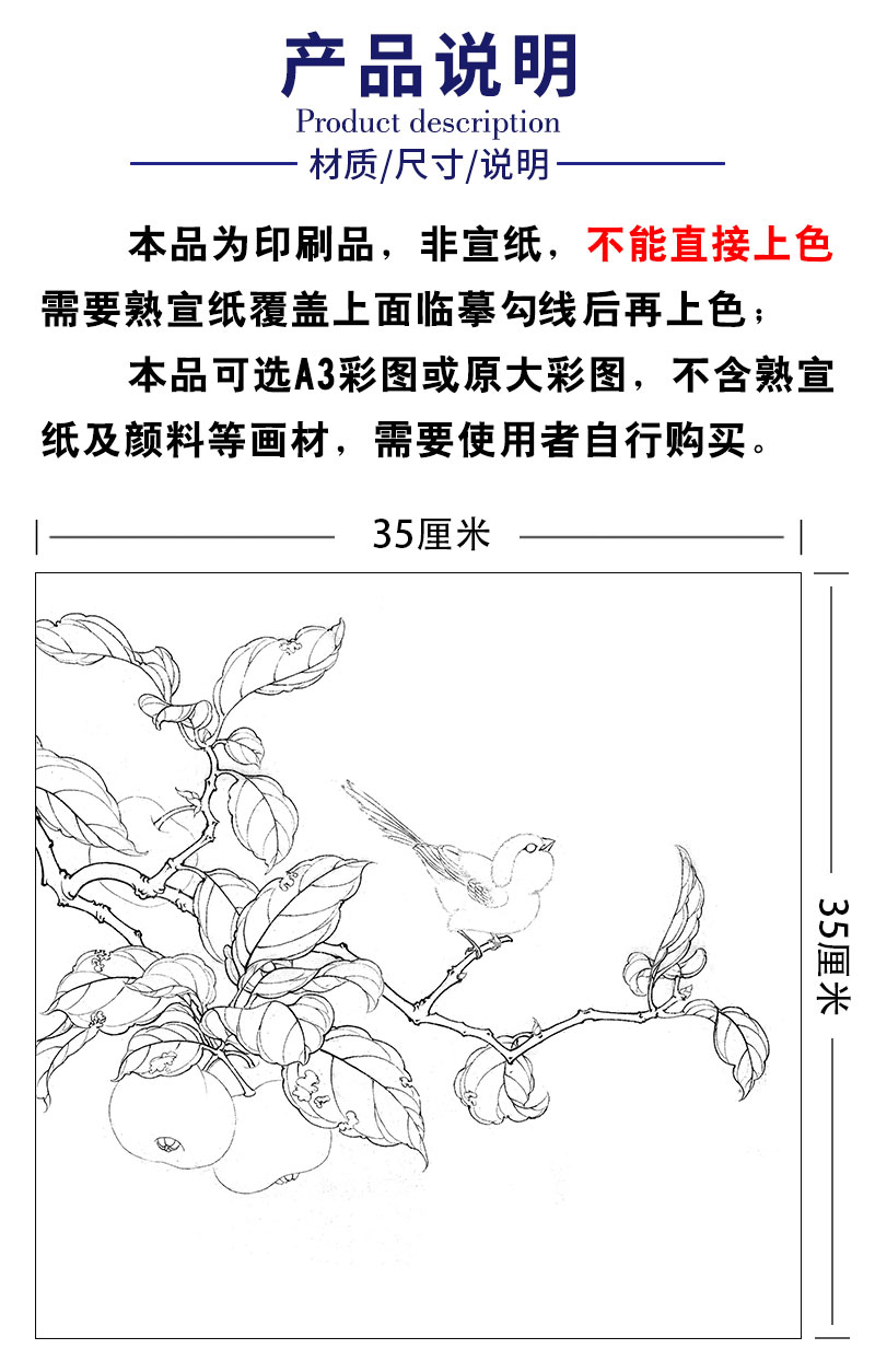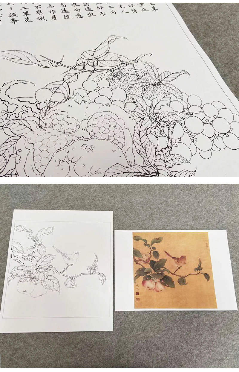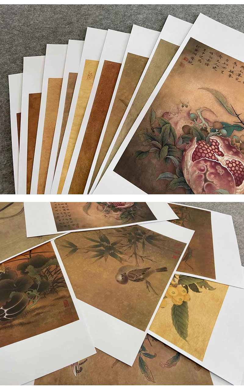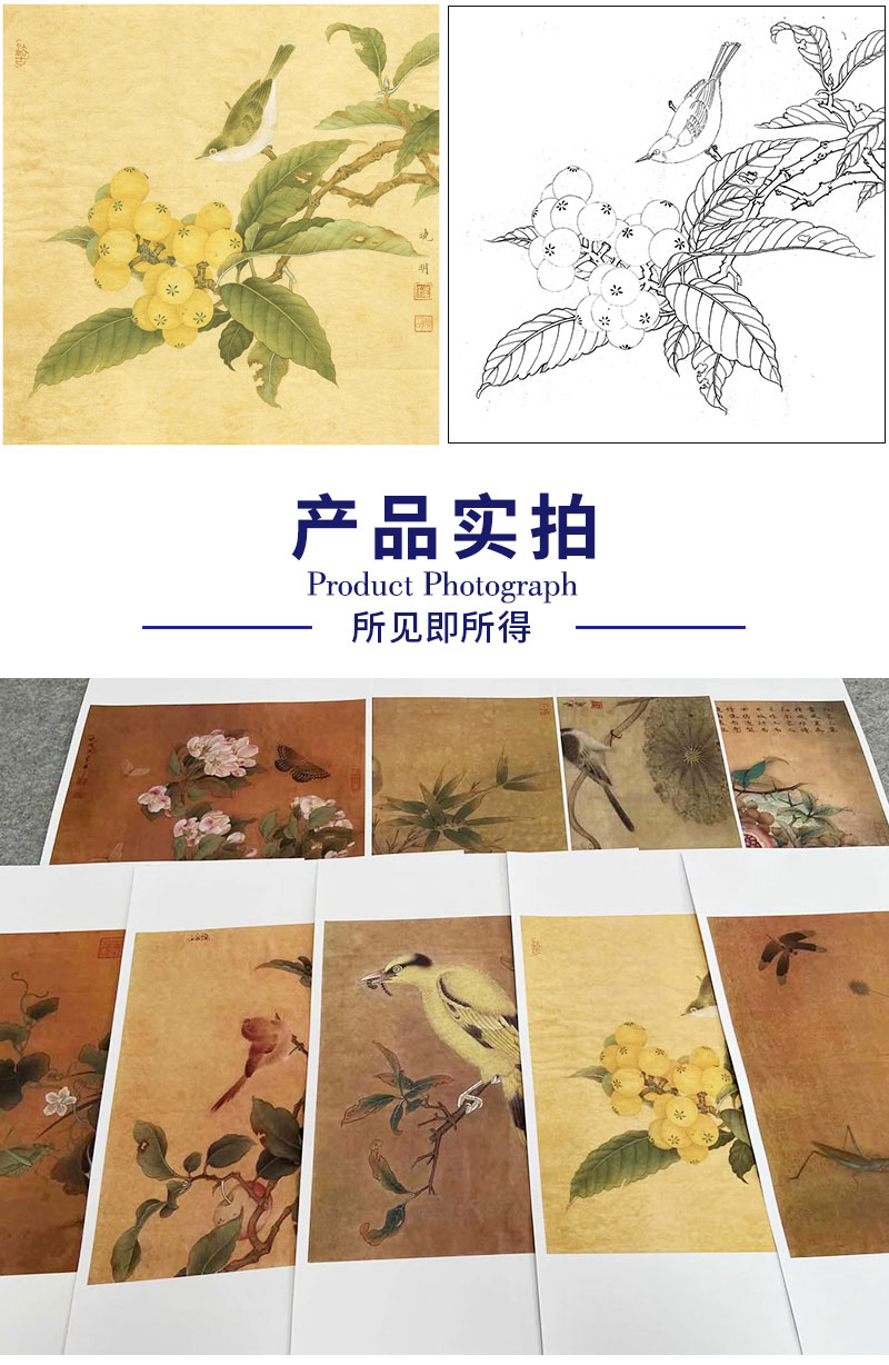 李晓明工笔花鸟画白描底稿翠鸟石榴斗方小品一套九幅册页初学者尺寸35×35厘米TW09