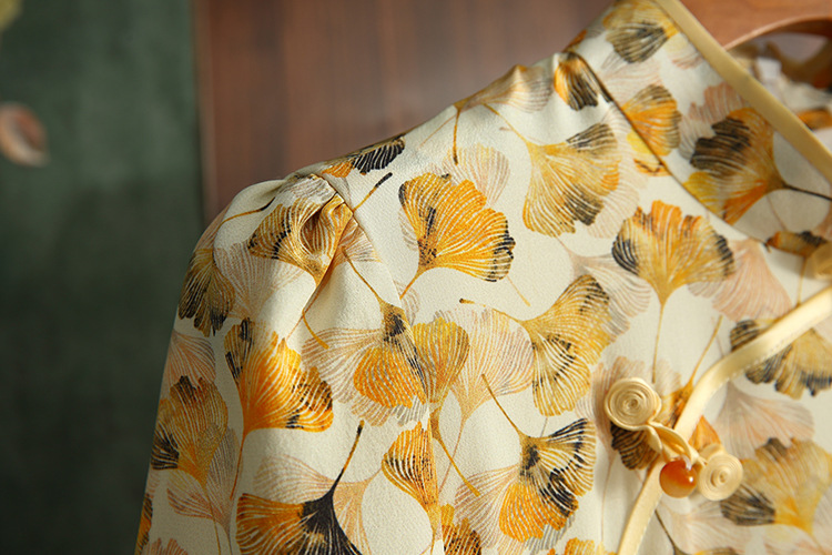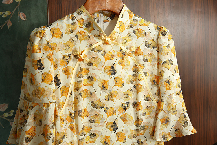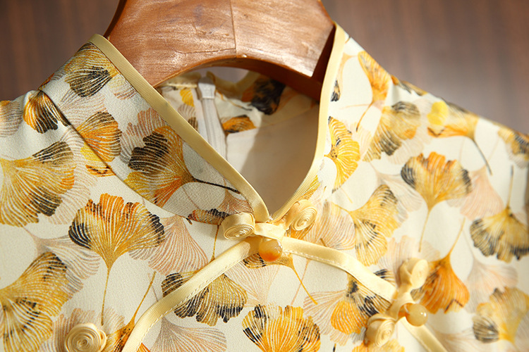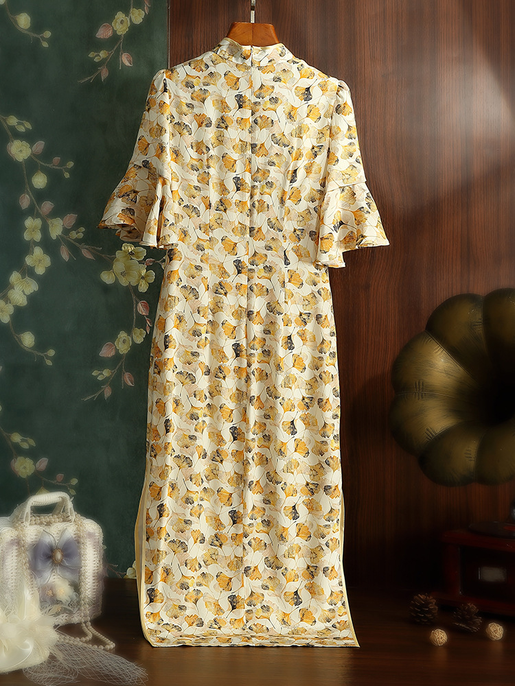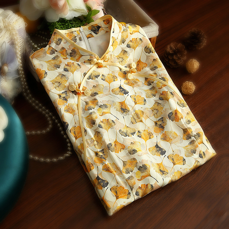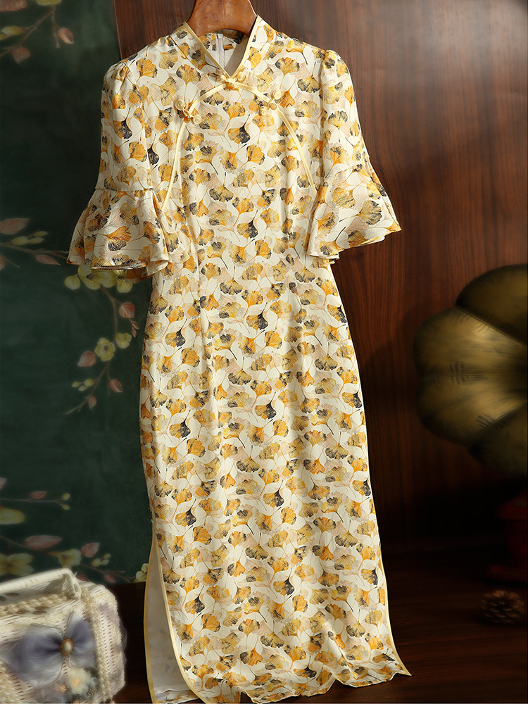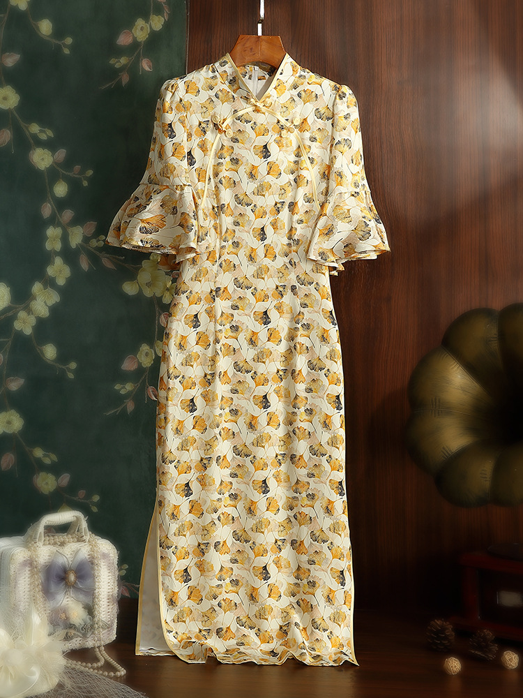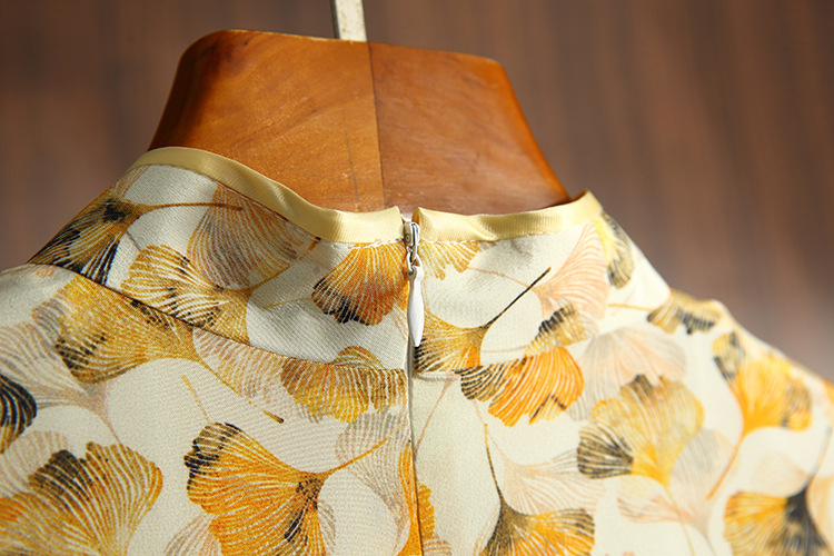 JC 3683真丝印花改良加大码修身优雅旗袍连衣裙