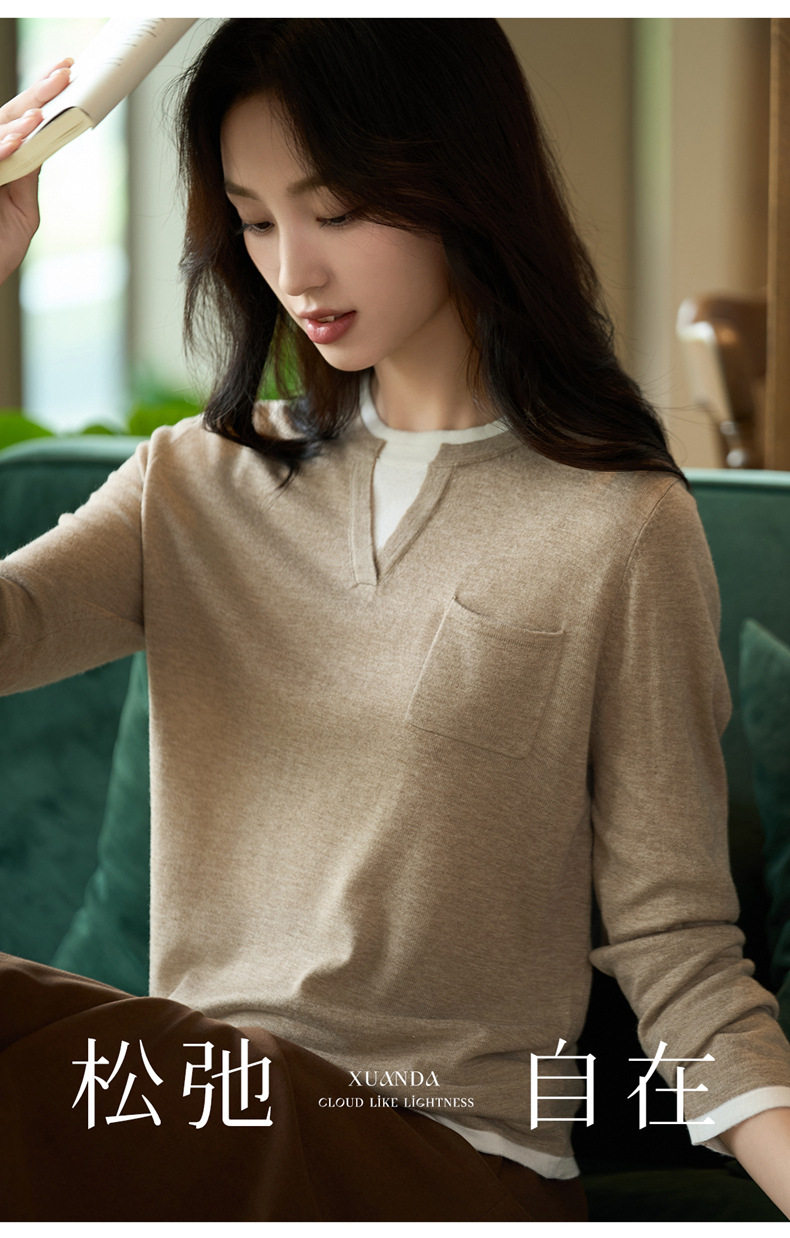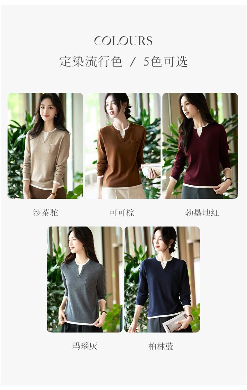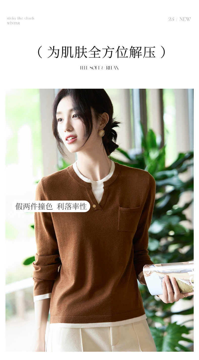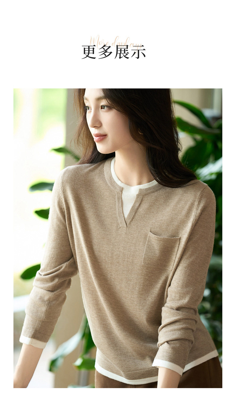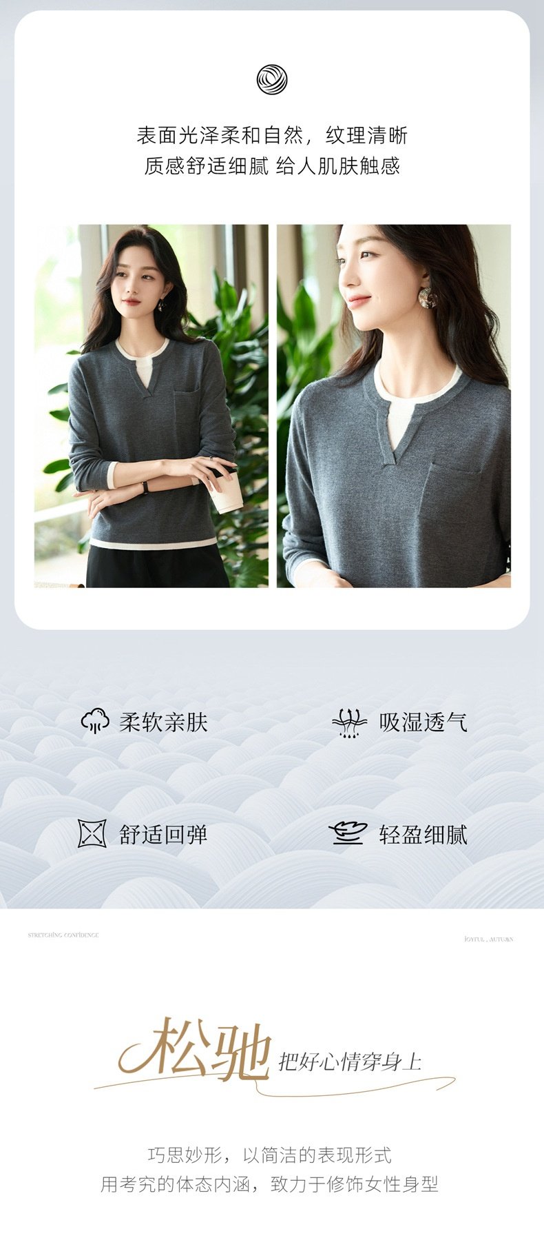 「自」全新升级【铂金会员183/天猫239/差价56】(13256)洛诗琳精纺羊毛撞色针织衫上衣2026春季假两件百搭打底上衣