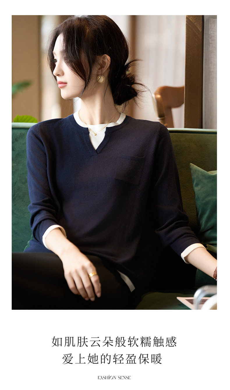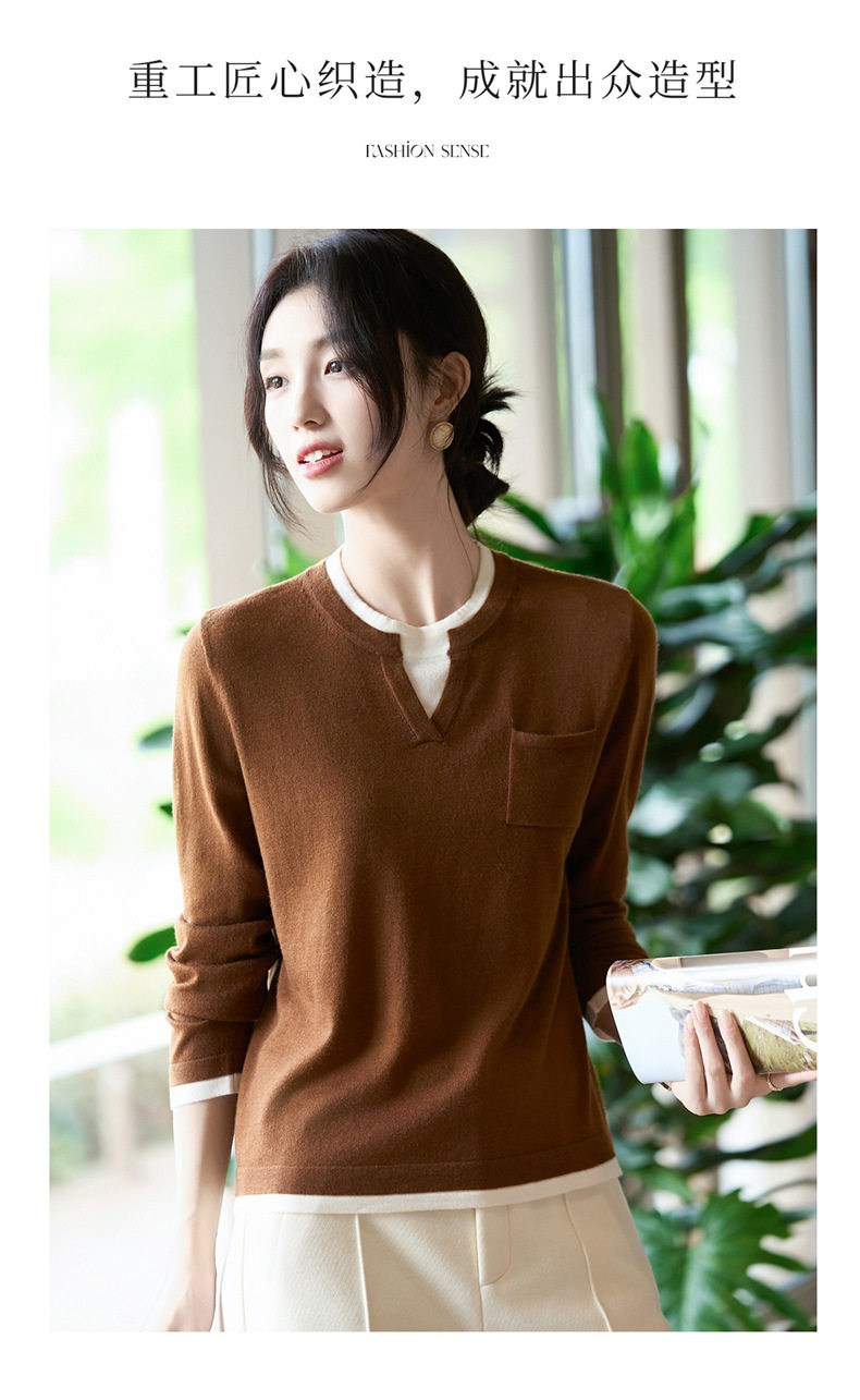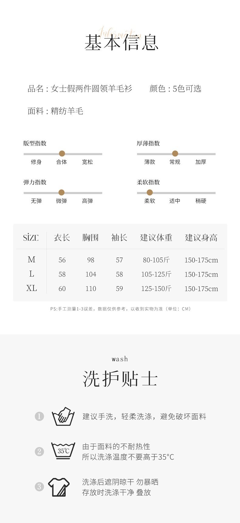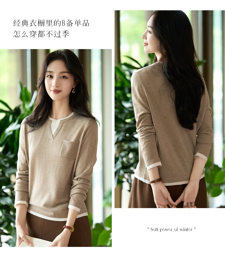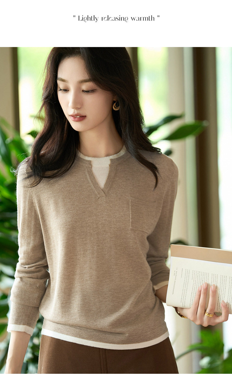 「自」全新升级【铂金会员183/天猫239/差价56】(13256)洛诗琳精纺羊毛撞色针织衫上衣2026春季假两件百搭打底上衣