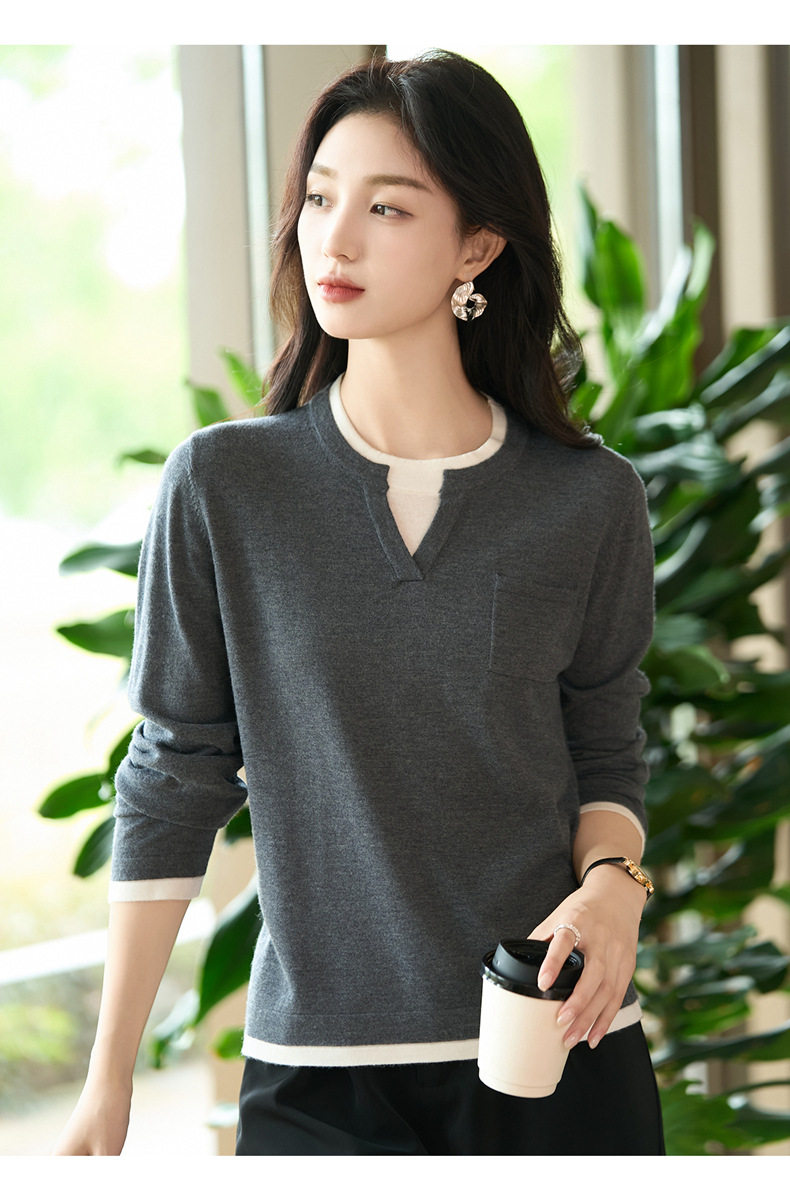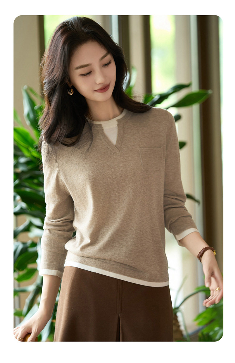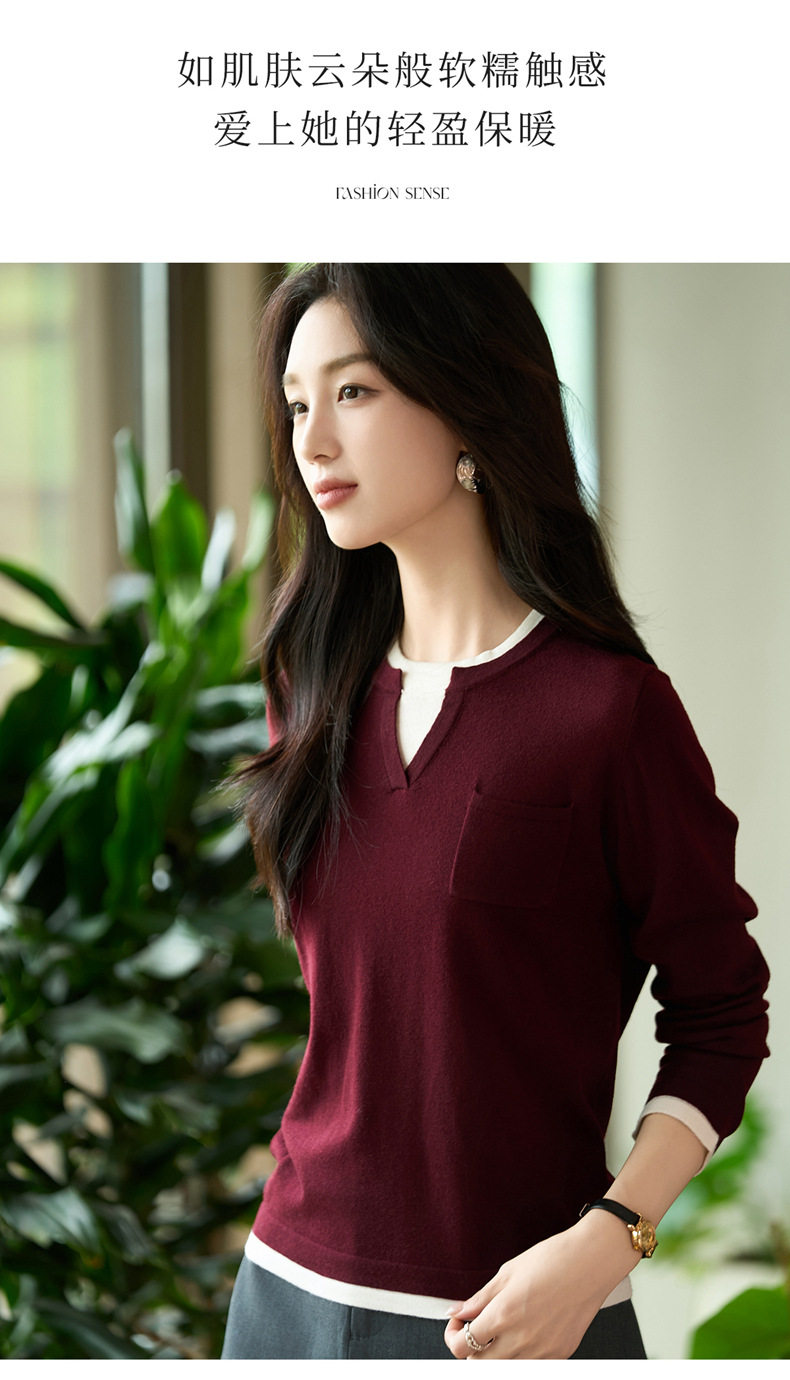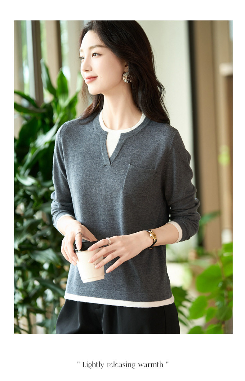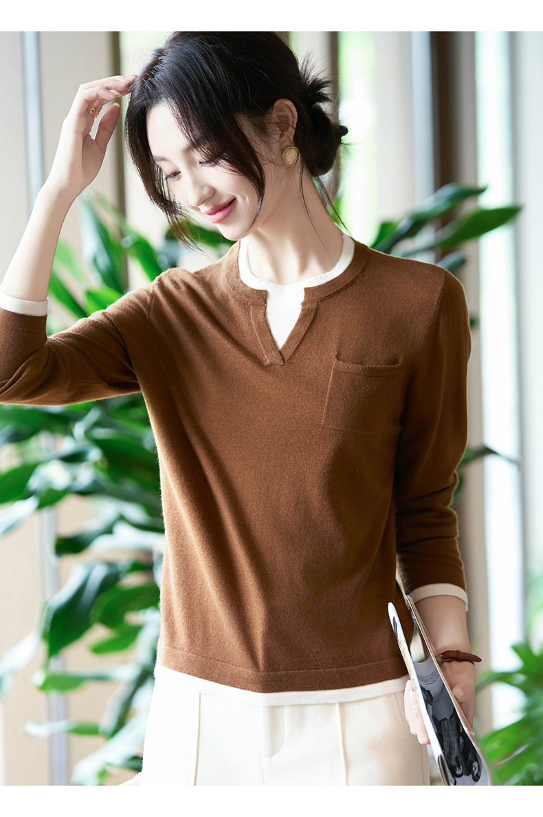 「自」全新升级【铂金会员183/天猫239/差价56】(13256)洛诗琳精纺羊毛撞色针织衫上衣2026春季假两件百搭打底上衣
