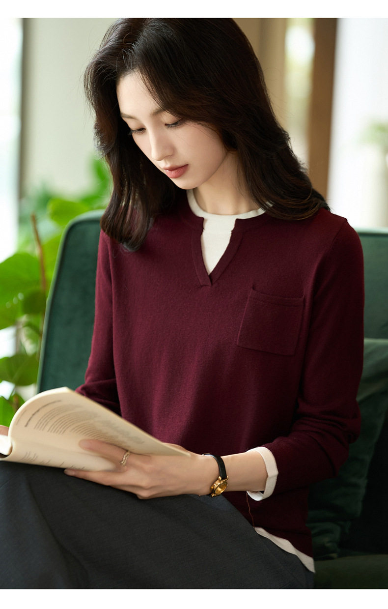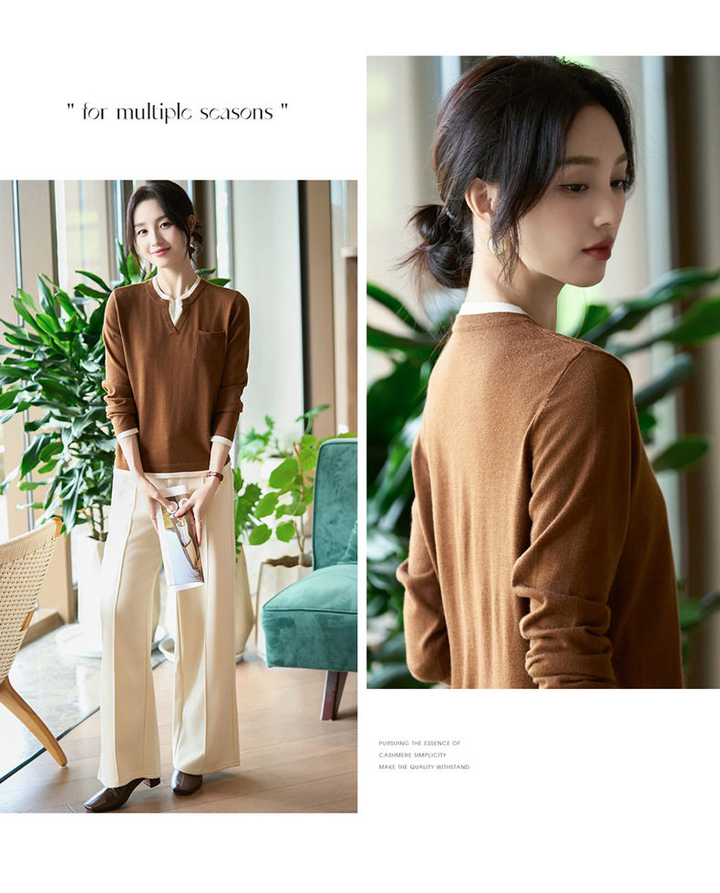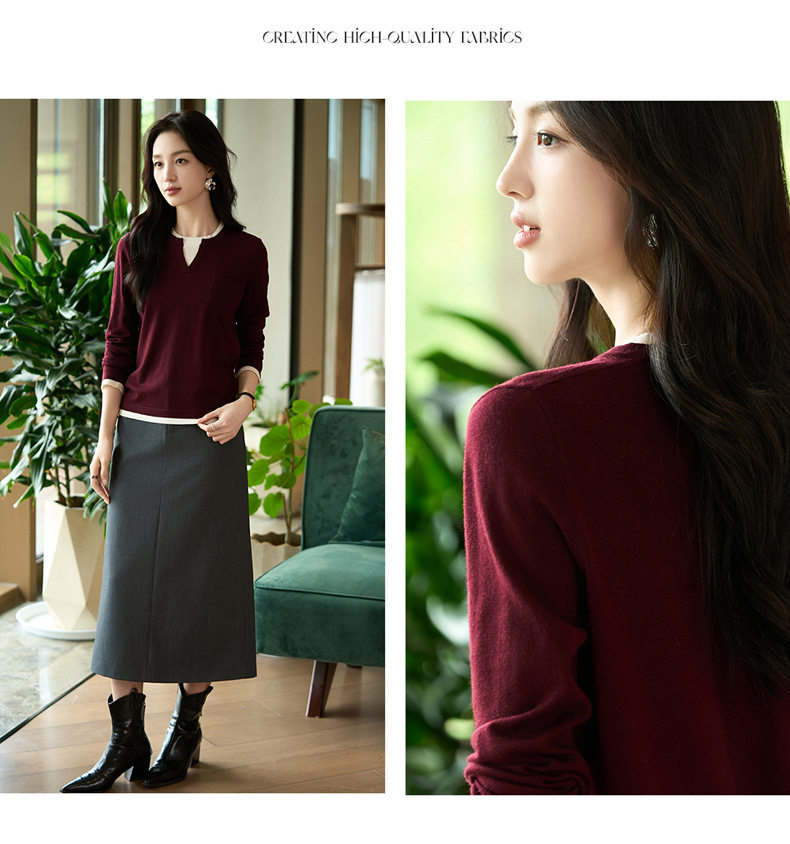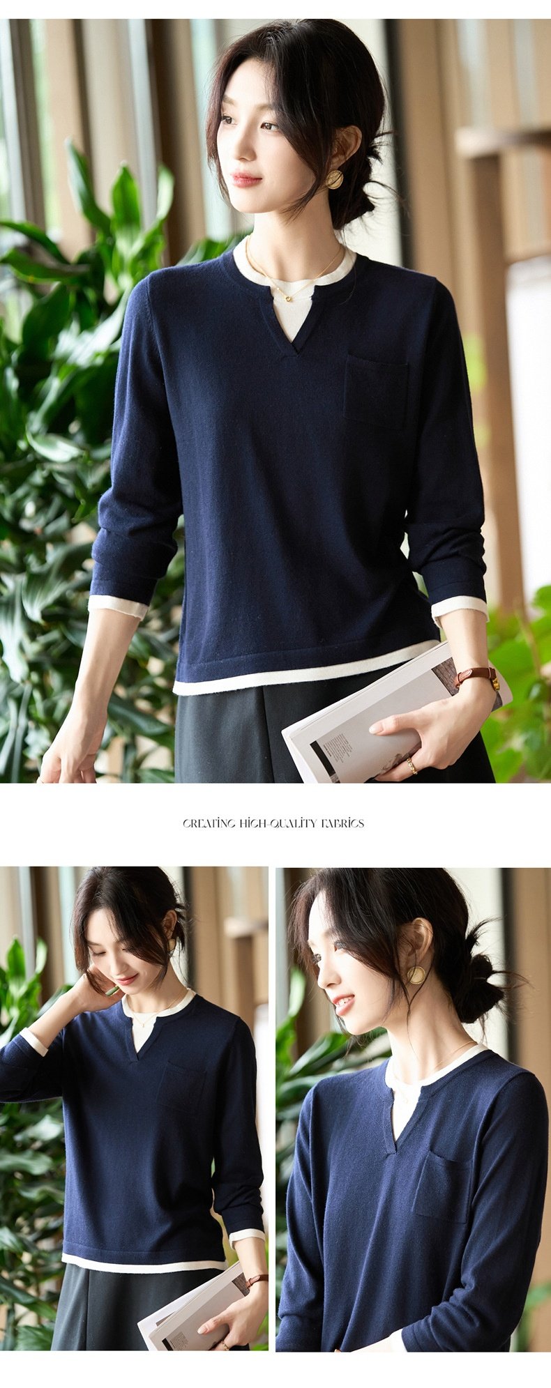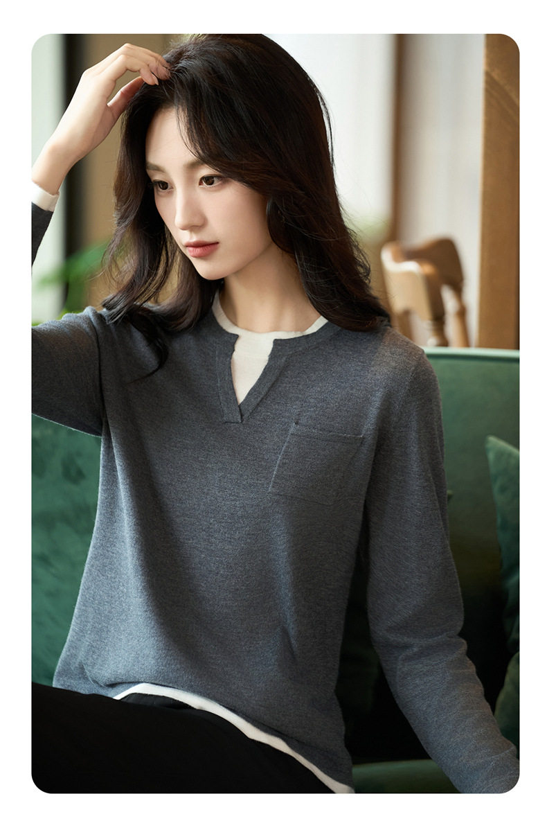 「自」全新升级【铂金会员183/天猫239/差价56】(13256)洛诗琳精纺羊毛撞色针织衫上衣2026春季假两件百搭打底上衣