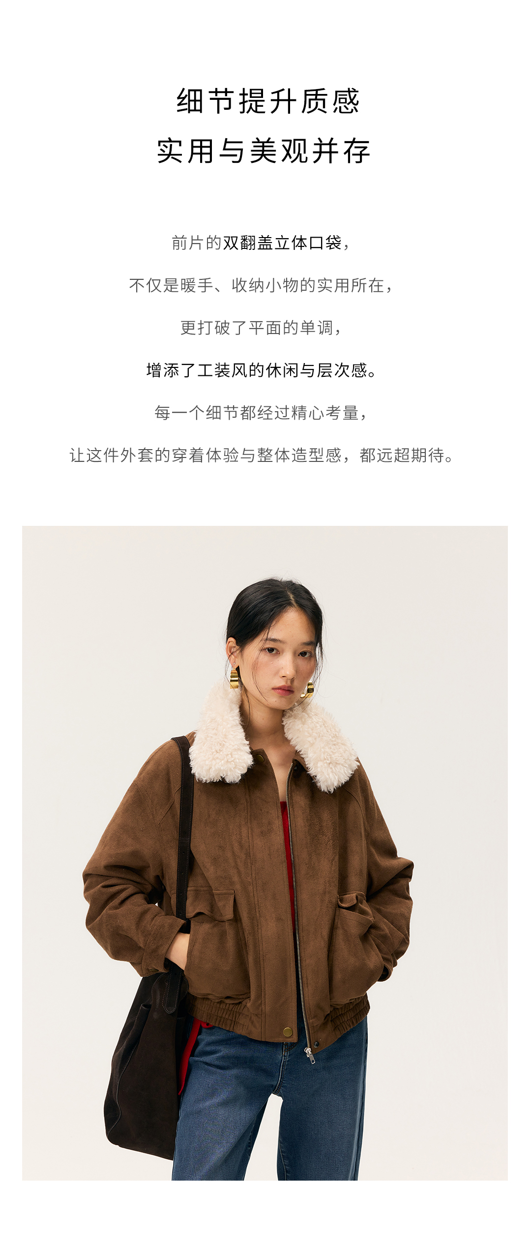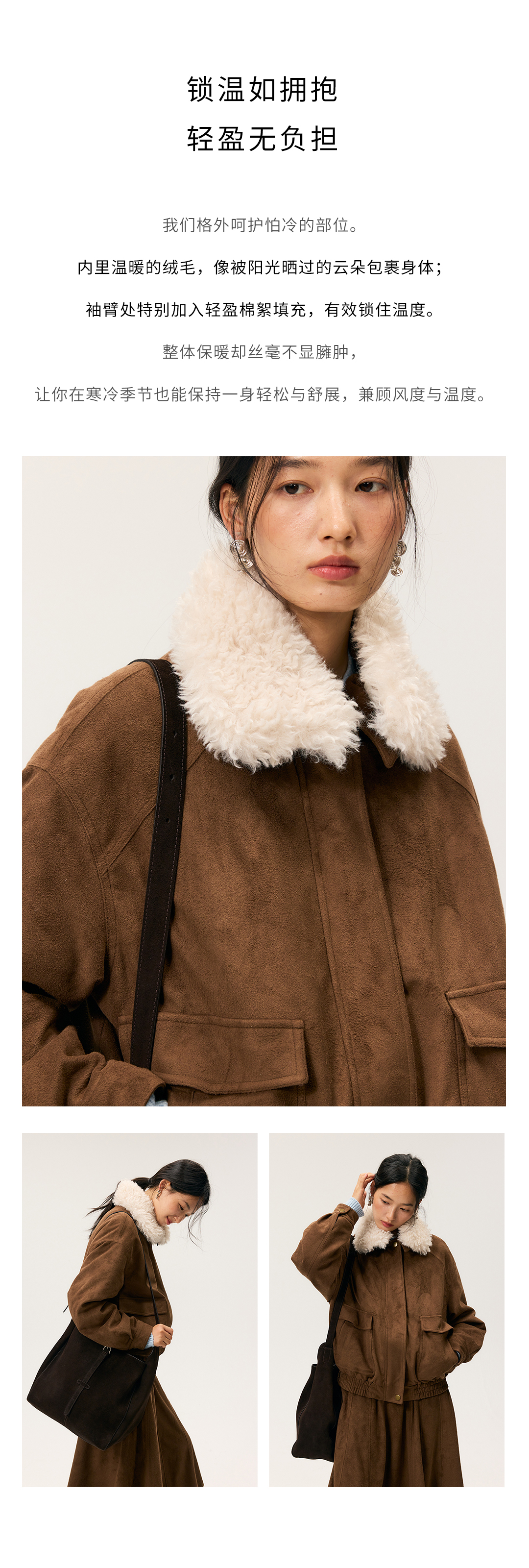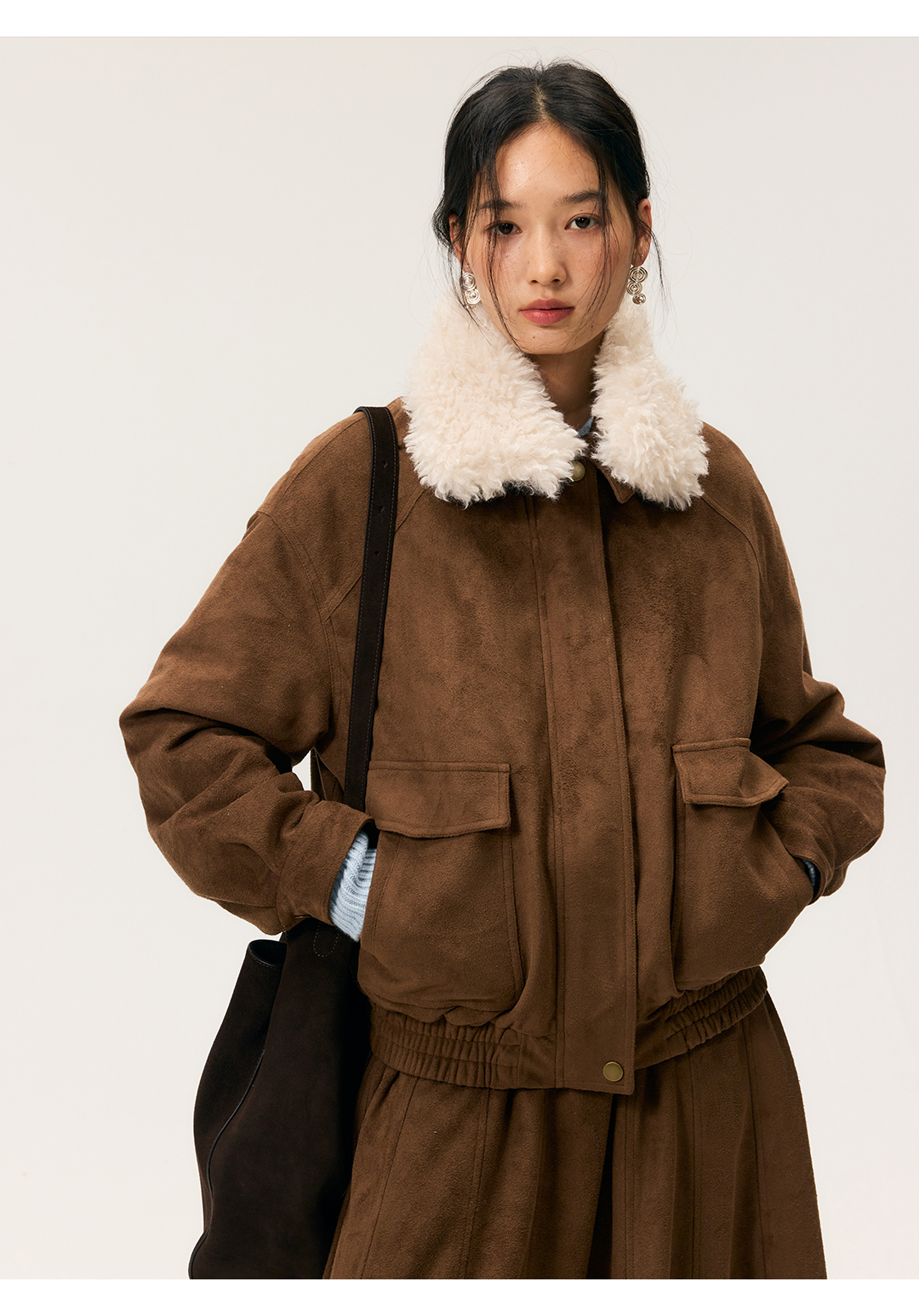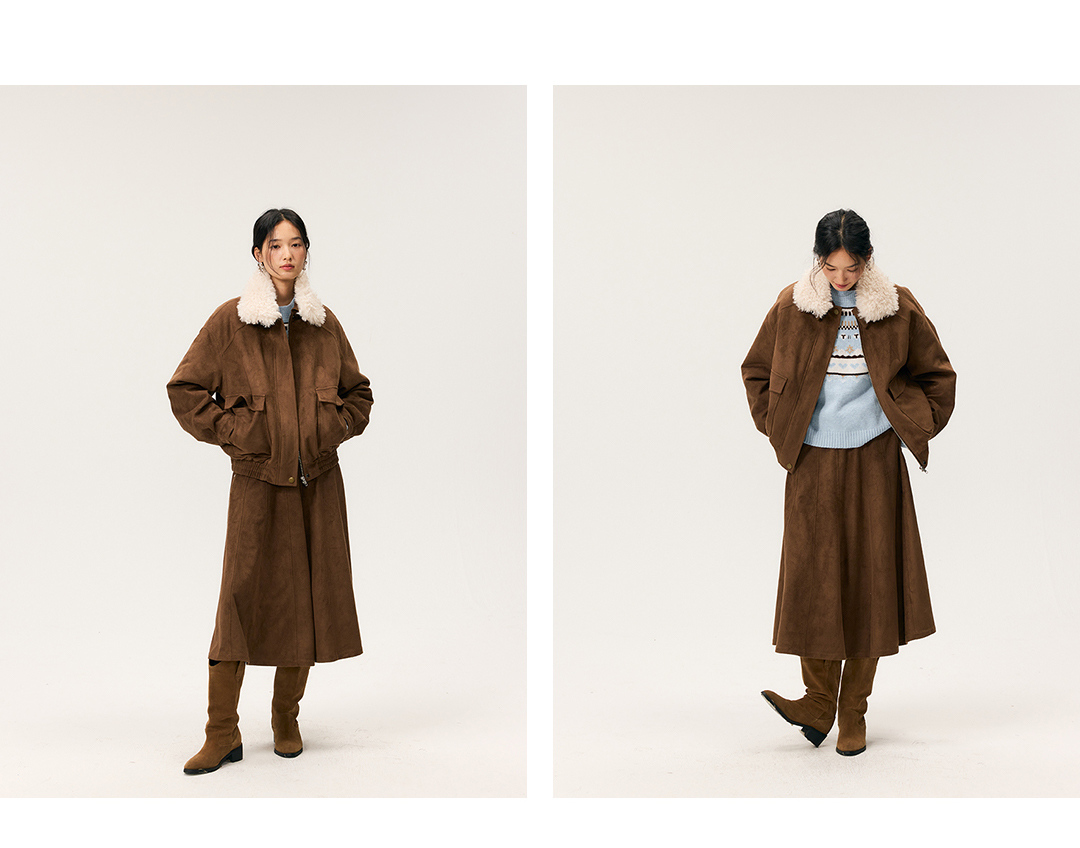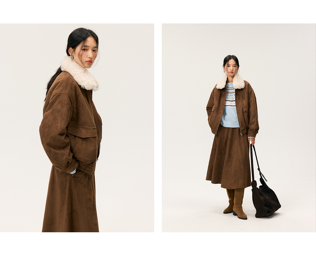 HeyDress毛领仿麂皮绒飞行夹克棉服