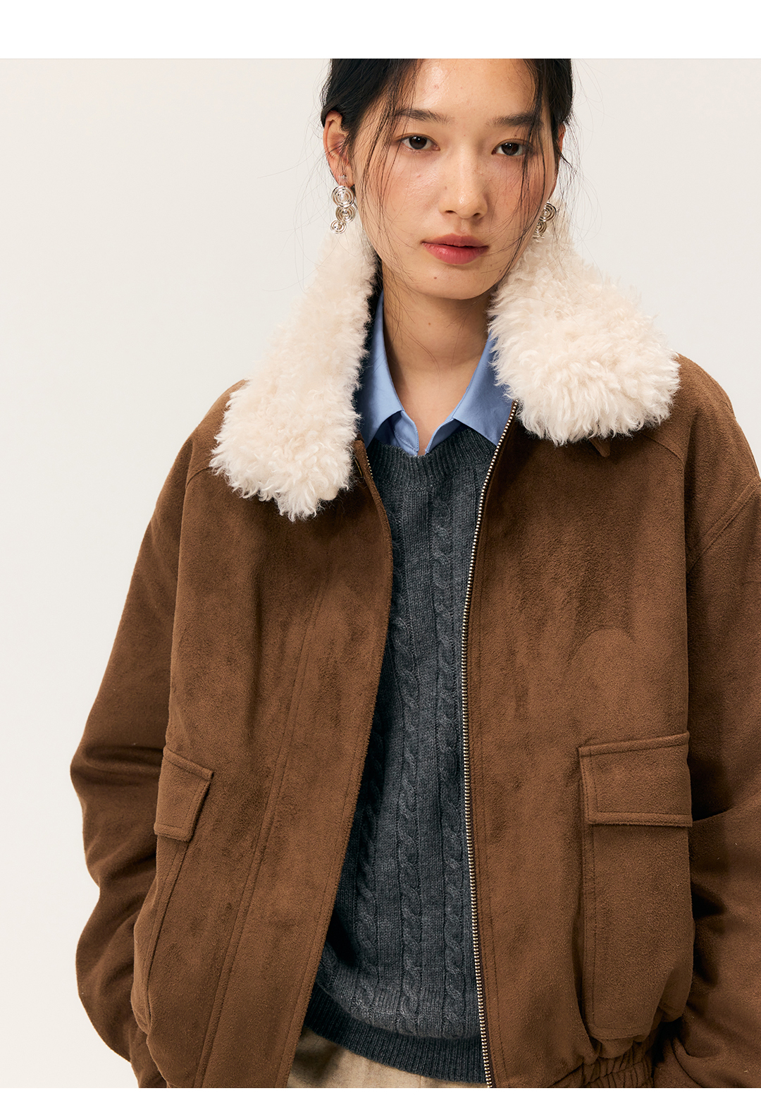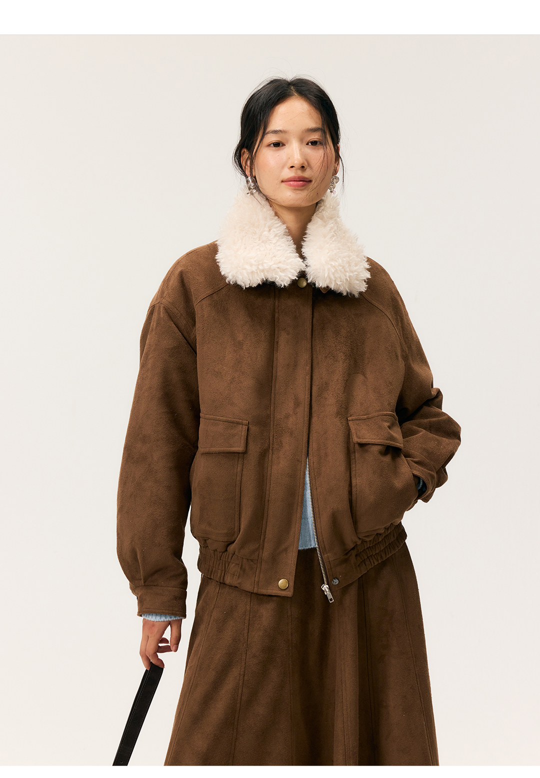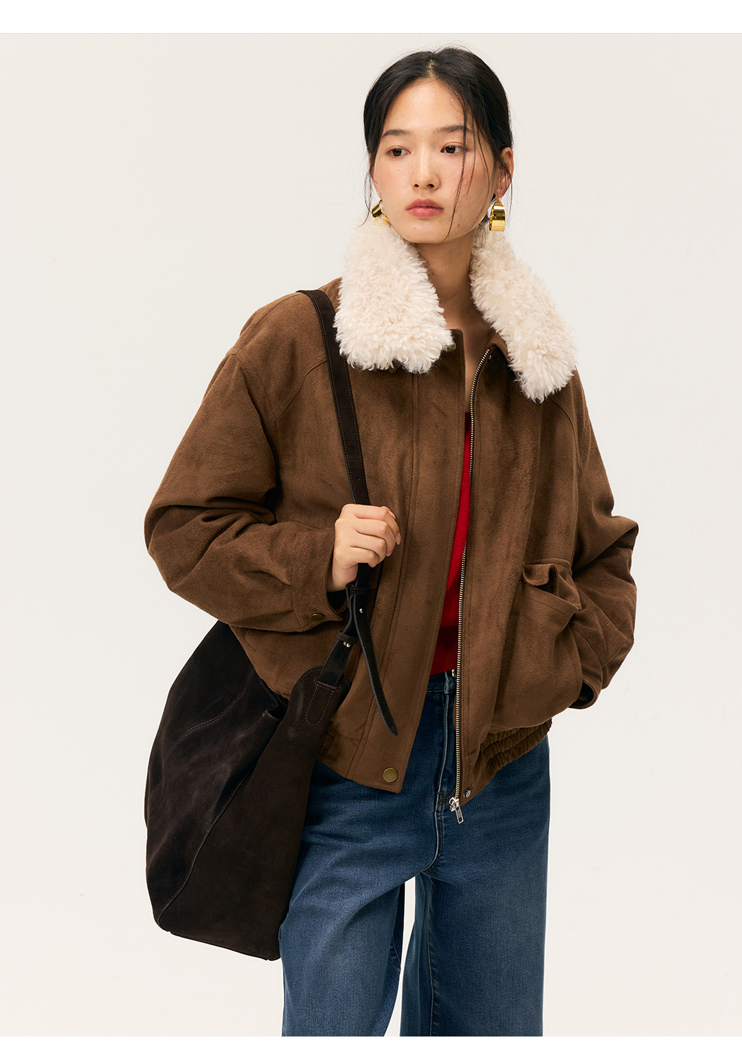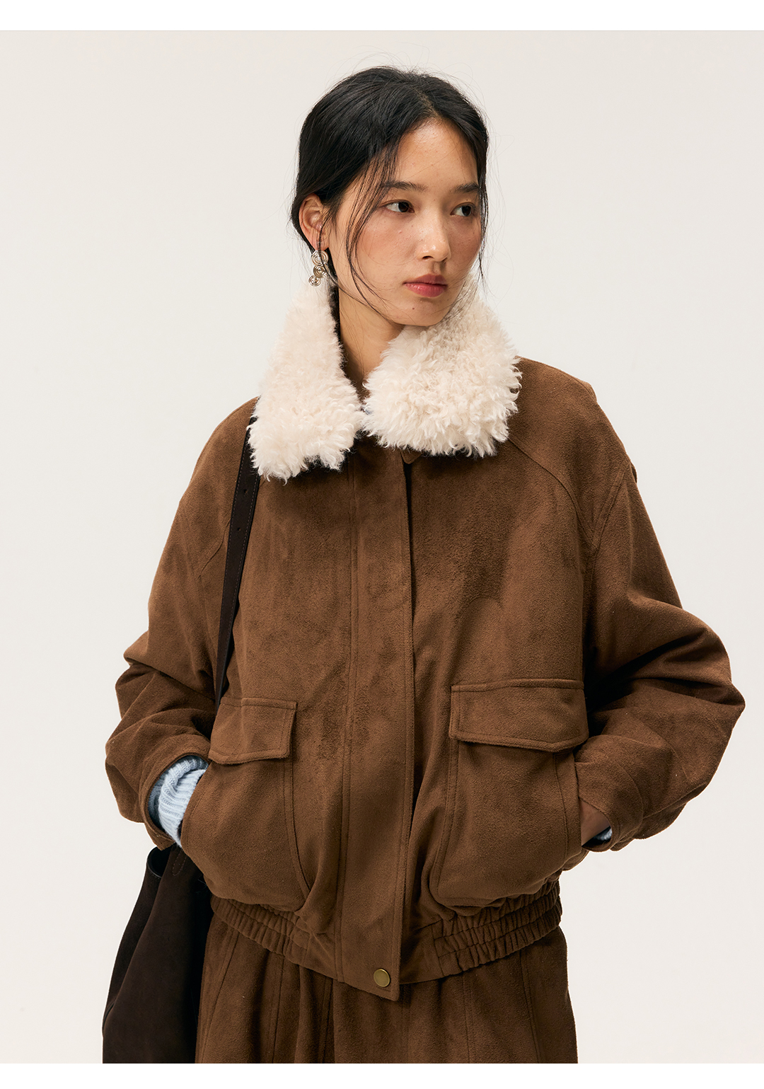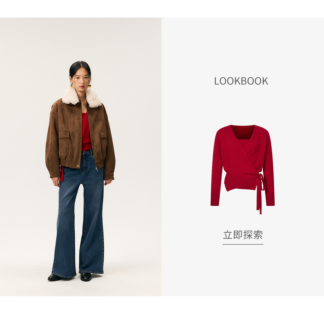 HeyDress毛领仿麂皮绒飞行夹克棉服