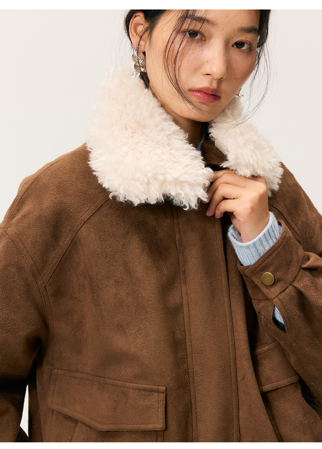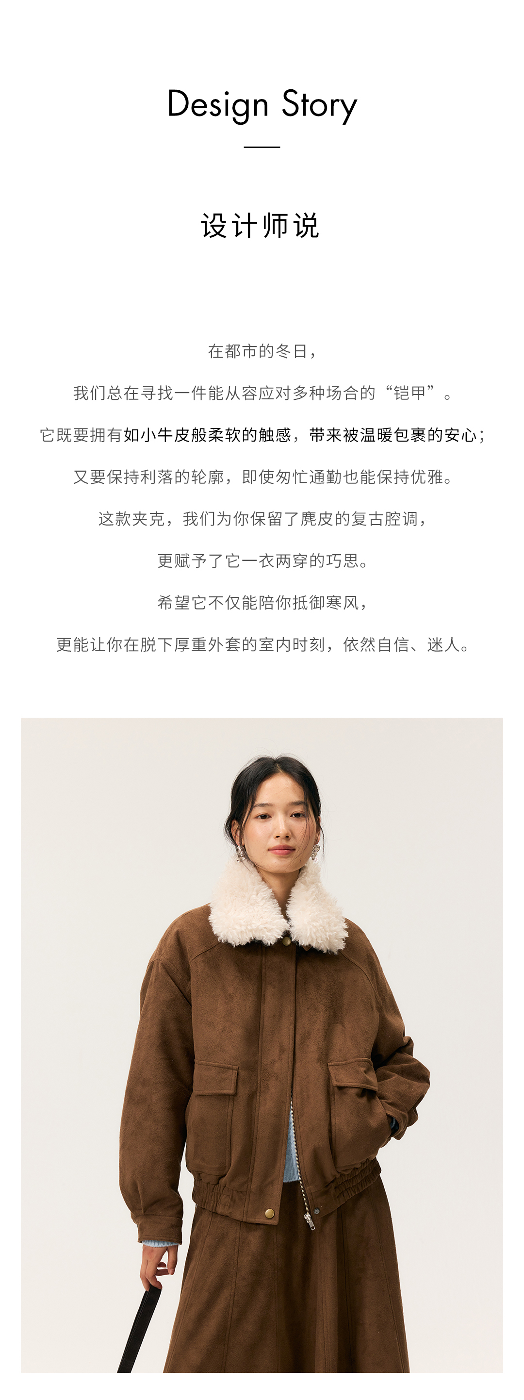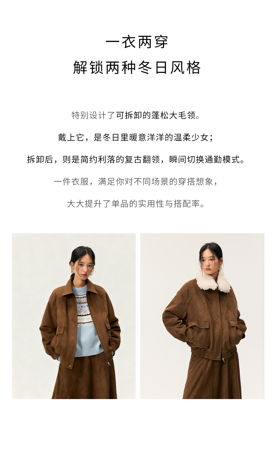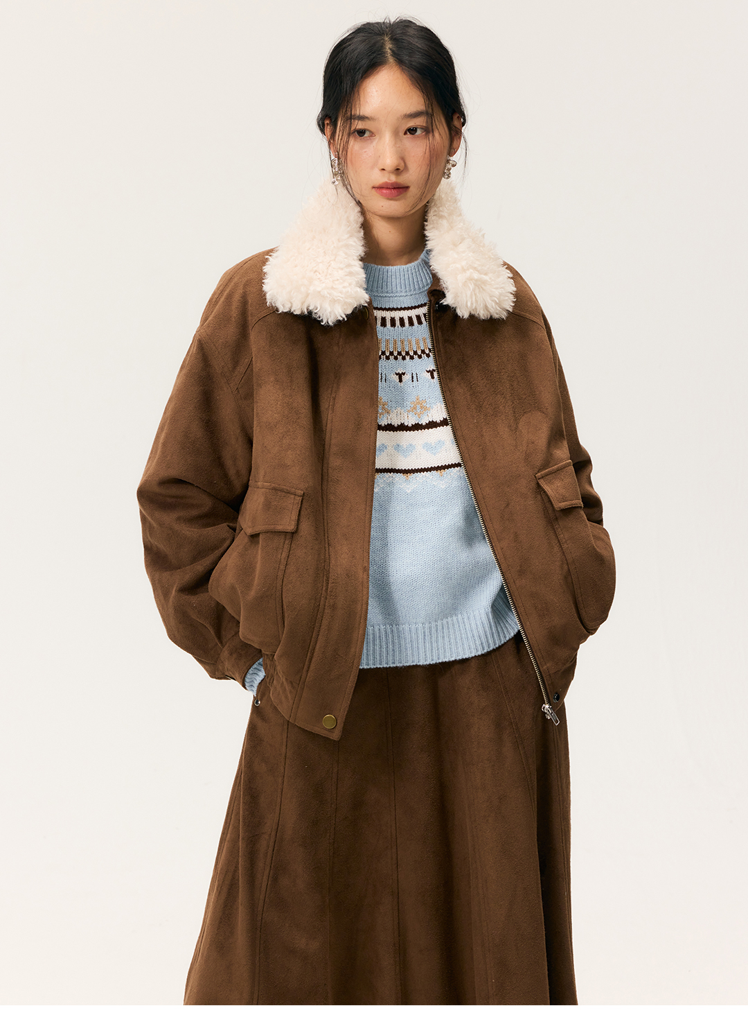 HeyDress毛领仿麂皮绒飞行夹克棉服