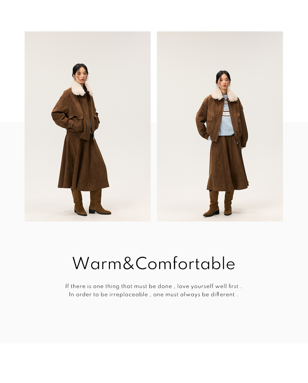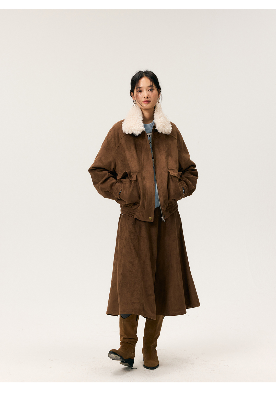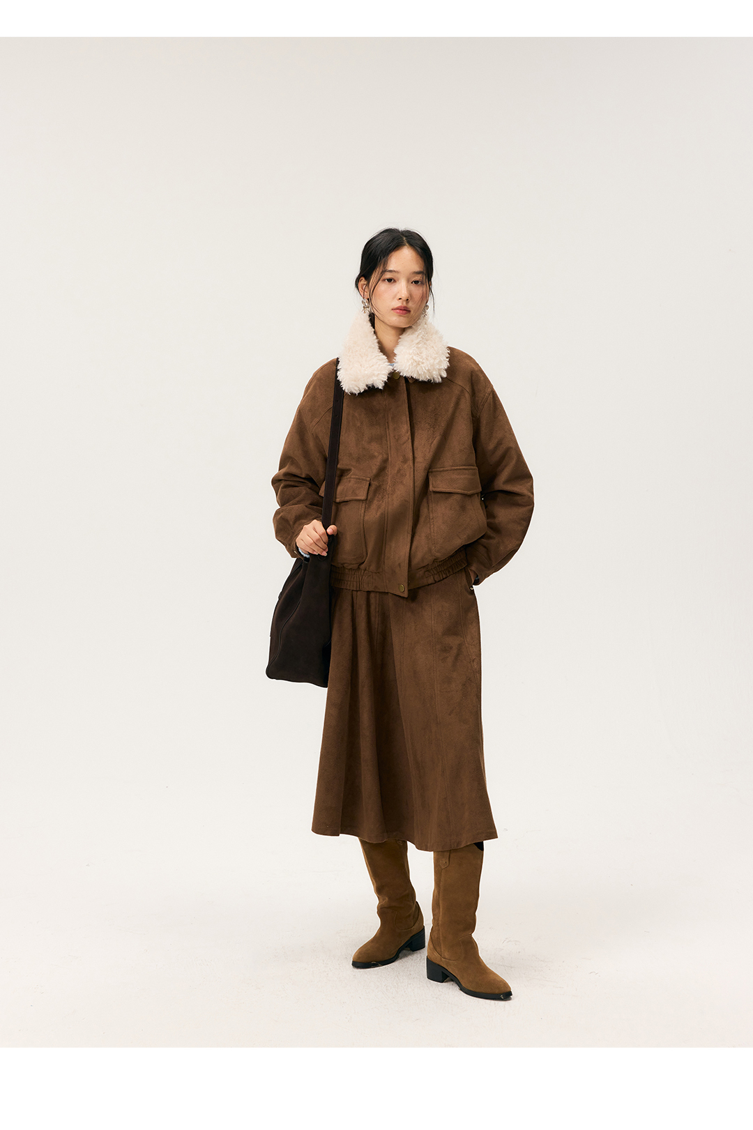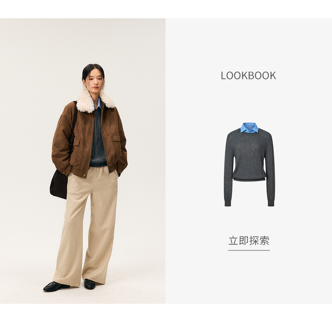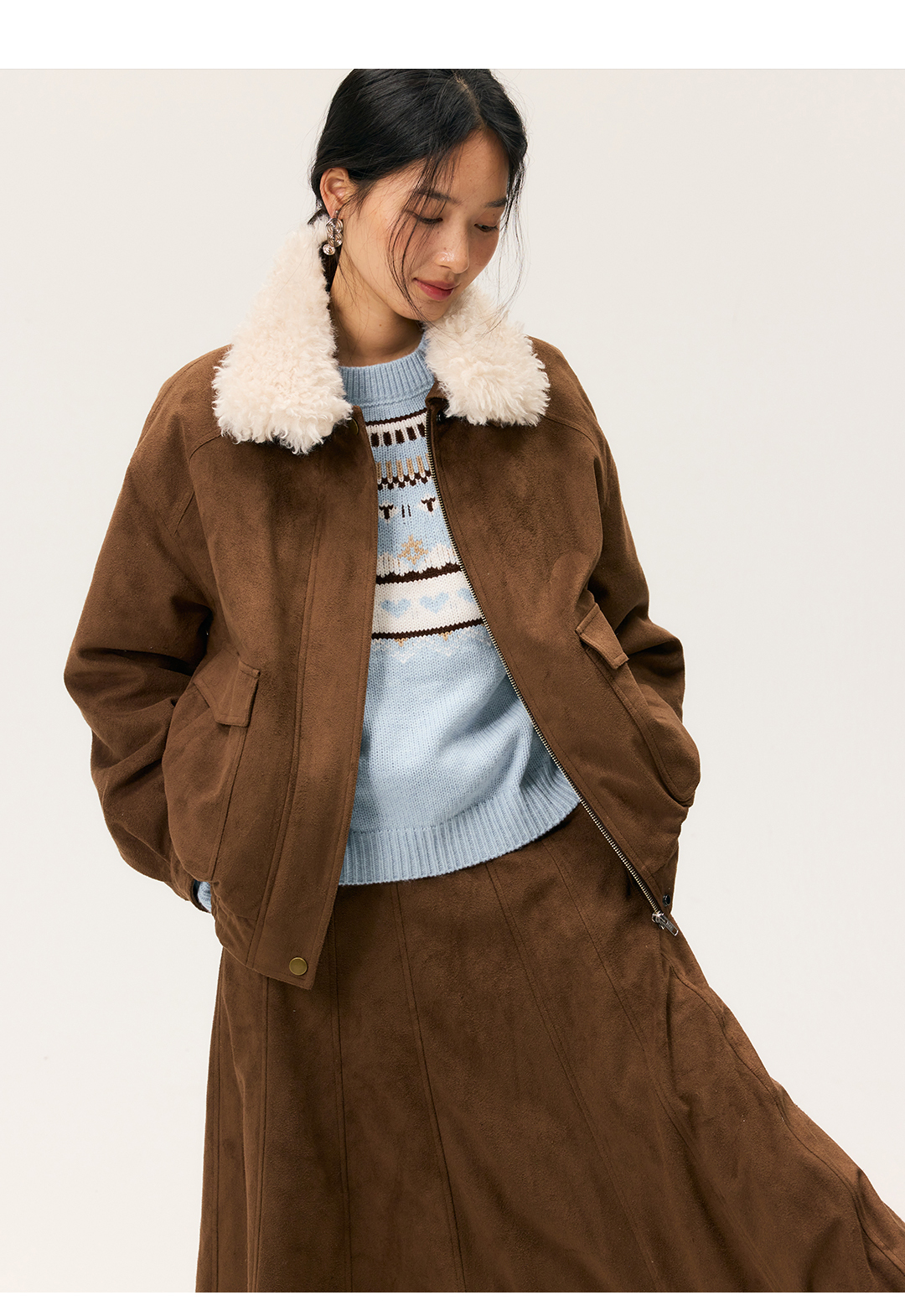 HeyDress毛领仿麂皮绒飞行夹克棉服