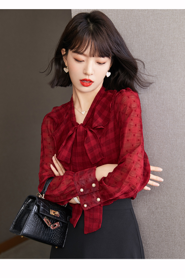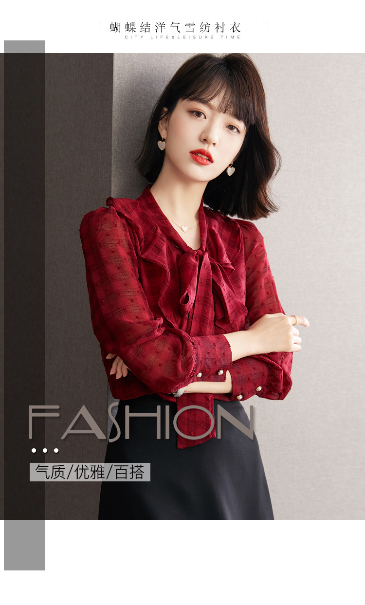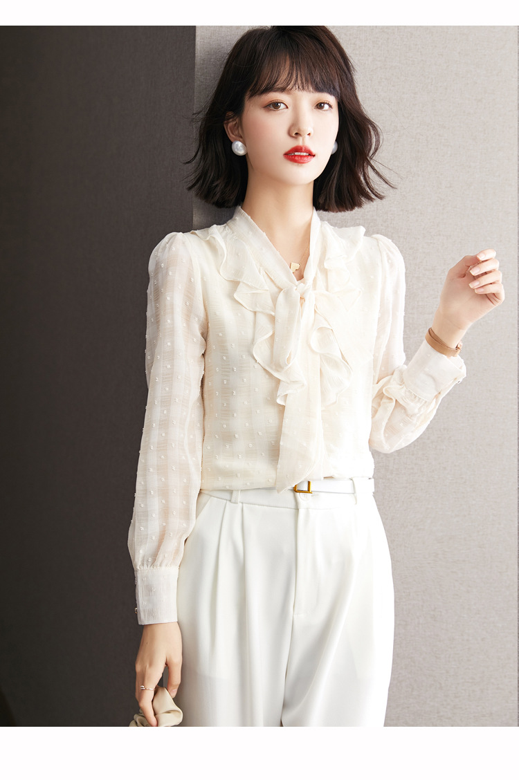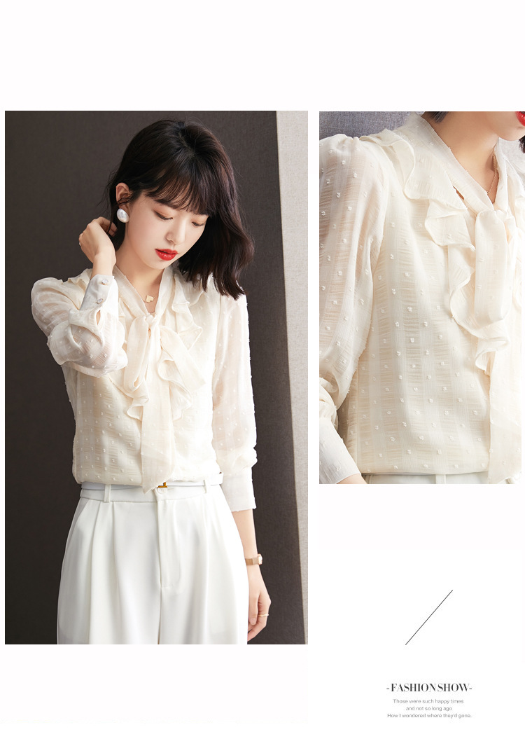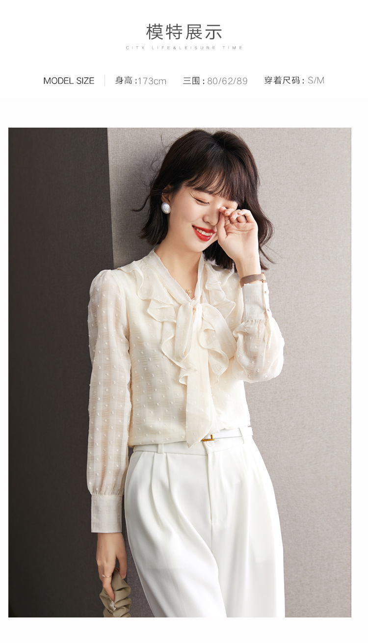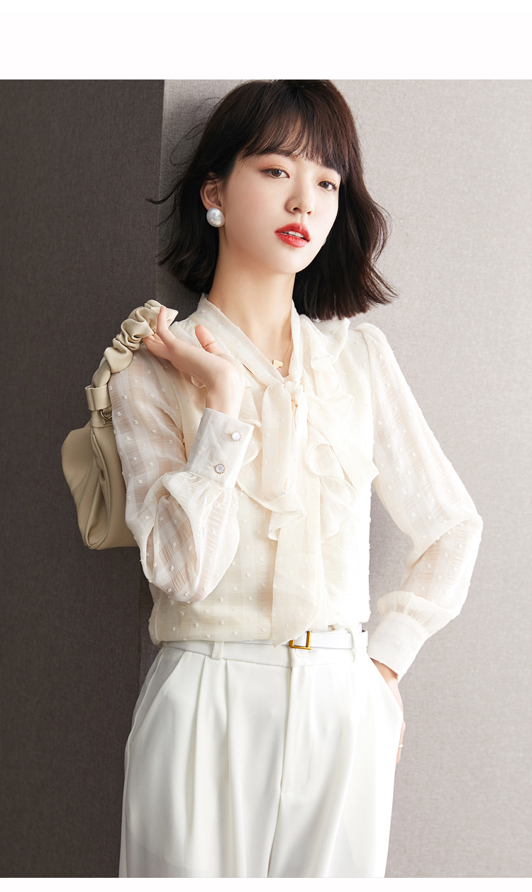 KQL-638T6615秋雪纺衬衫女装新款潮长袖上衣设计感系带小众衬衣