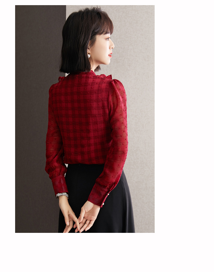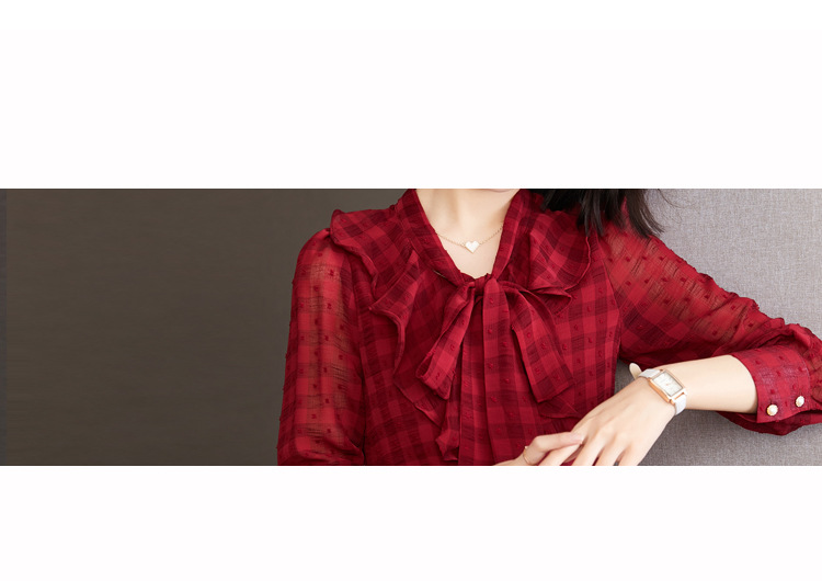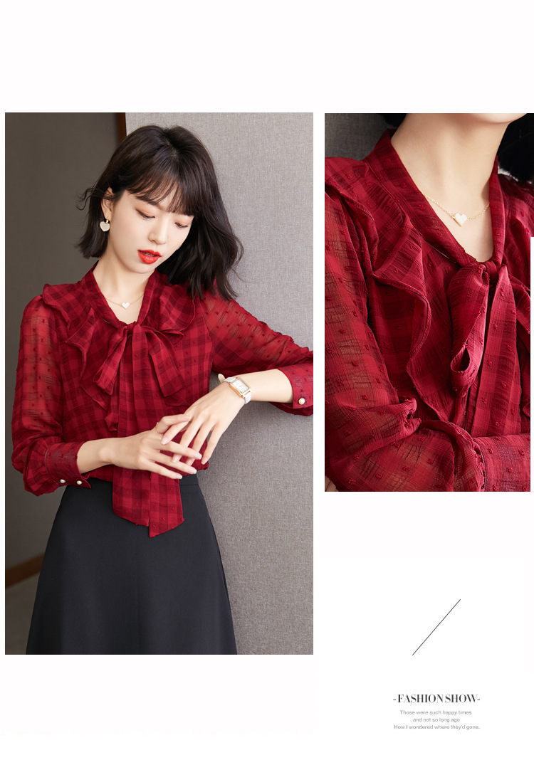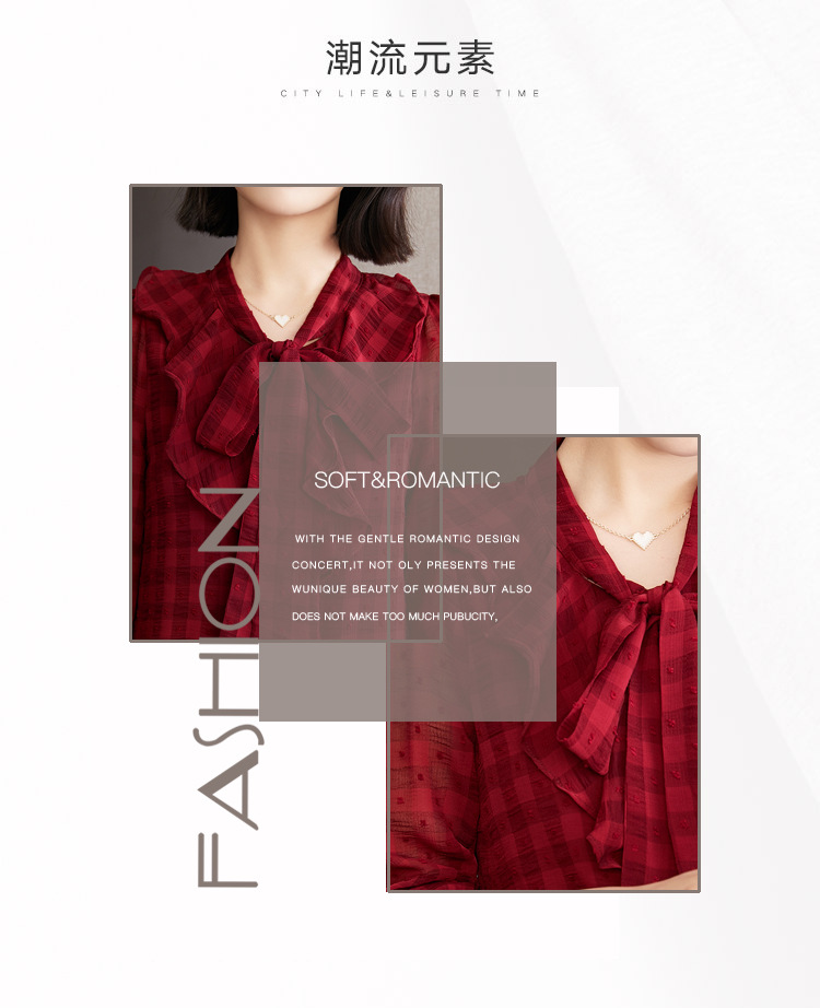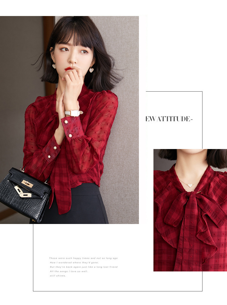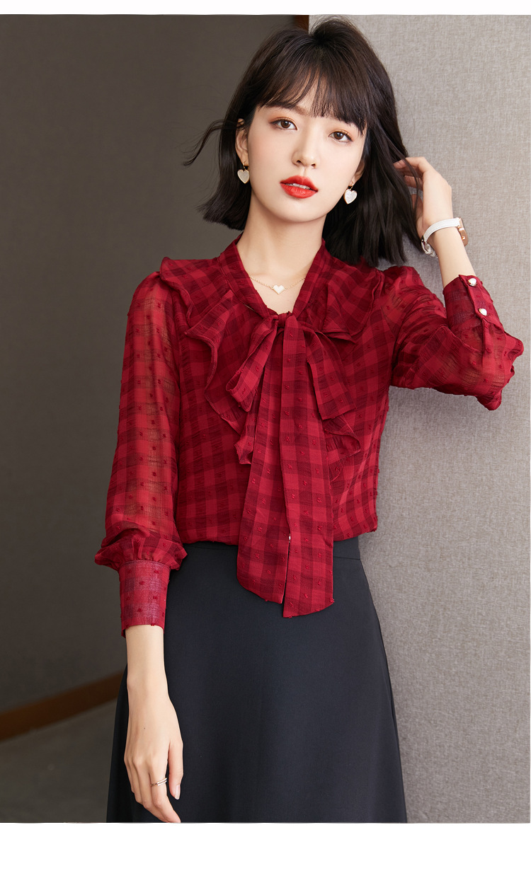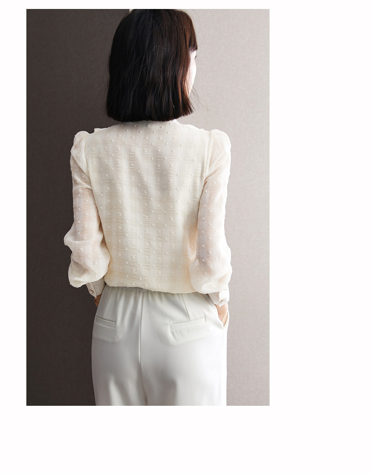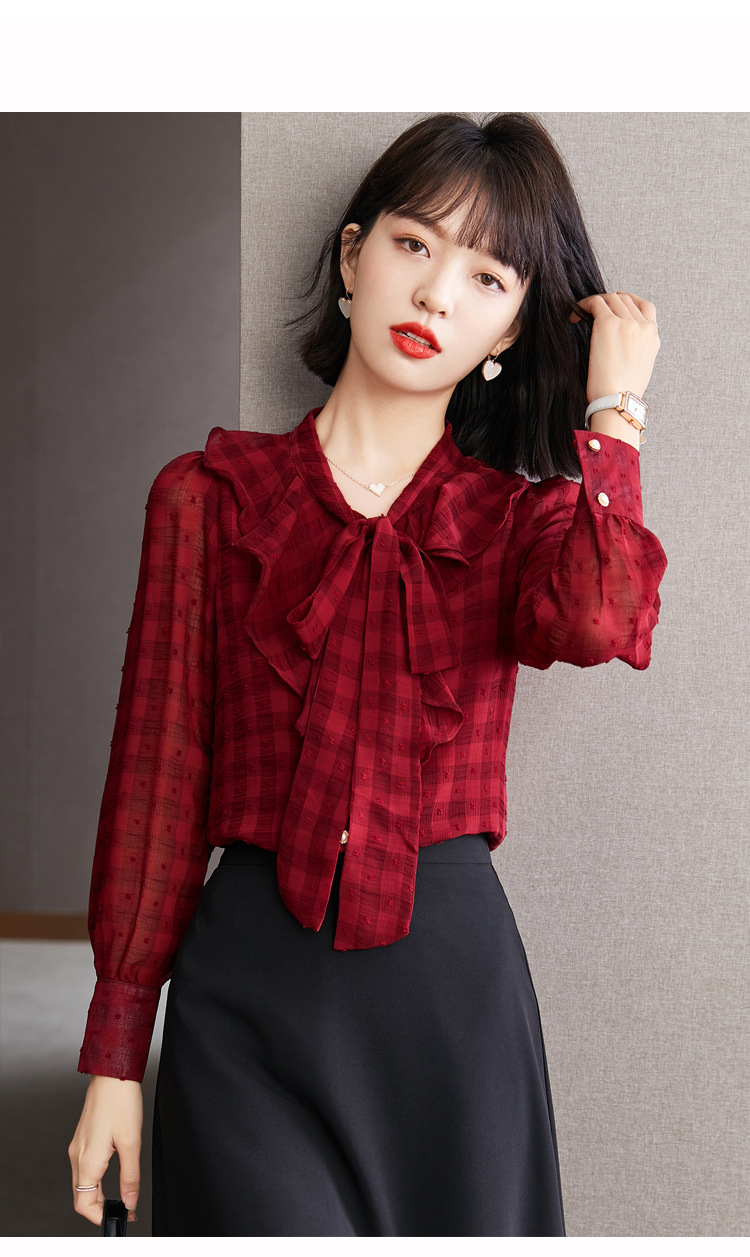 KQL-638T6615秋雪纺衬衫女装新款潮长袖上衣设计感系带小众衬衣