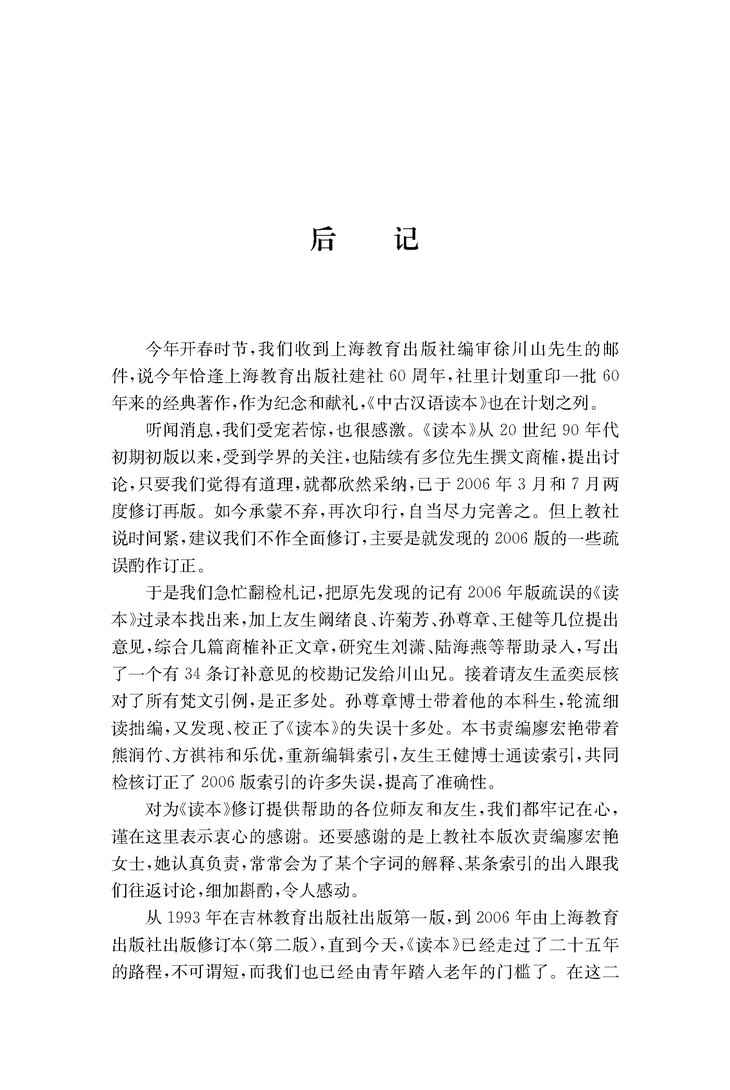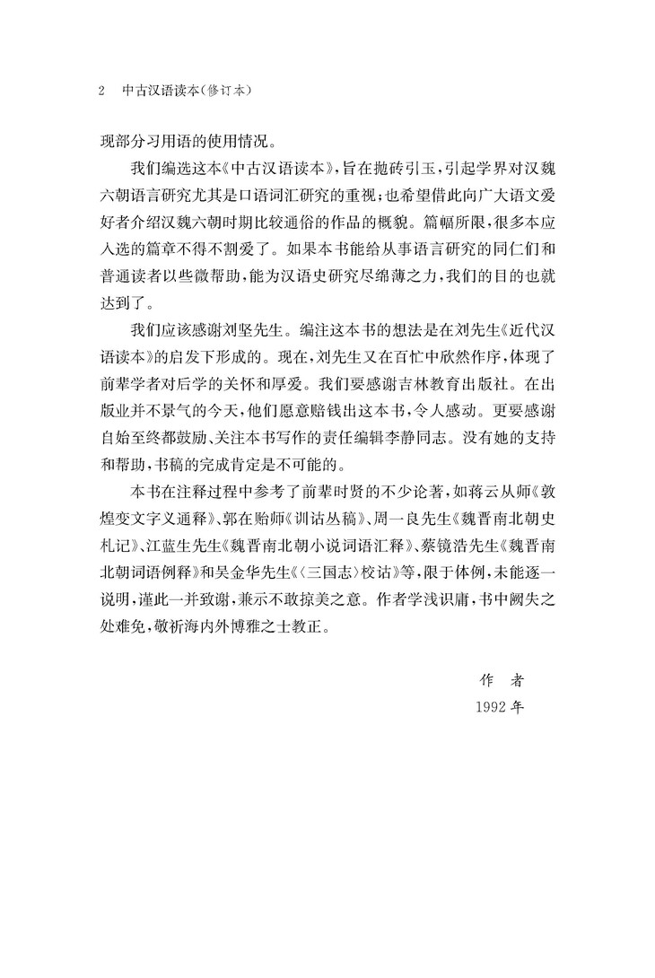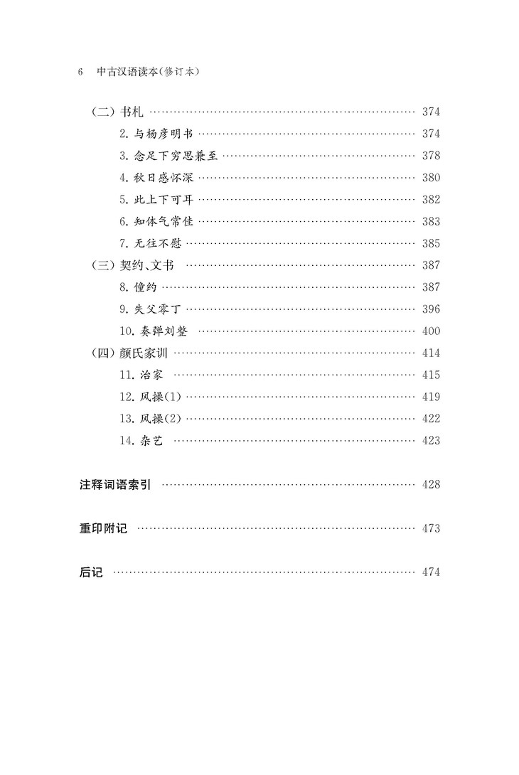 在汉语史上,中古汉语是指东汉魏晋南北朝时期。这是古代汉语向近代汉语发展的过渡时期,无论是语法,词汇还是语音,都发生了一些显著变化,是汉语史研究的重要阶段。这个时期的早期白话文献十分丰富,《中古汉语读本》选取了这一时期的重要文献80余篇,内容涉及佛经、史书、诗歌、杂著、书信、契约等,仔细阅读这些文献,对研究这一时期的语法词汇演变十分重要,同时也能为研究这一时期的社会、政治、经济、文化、宗教情况提供重要的帮助。