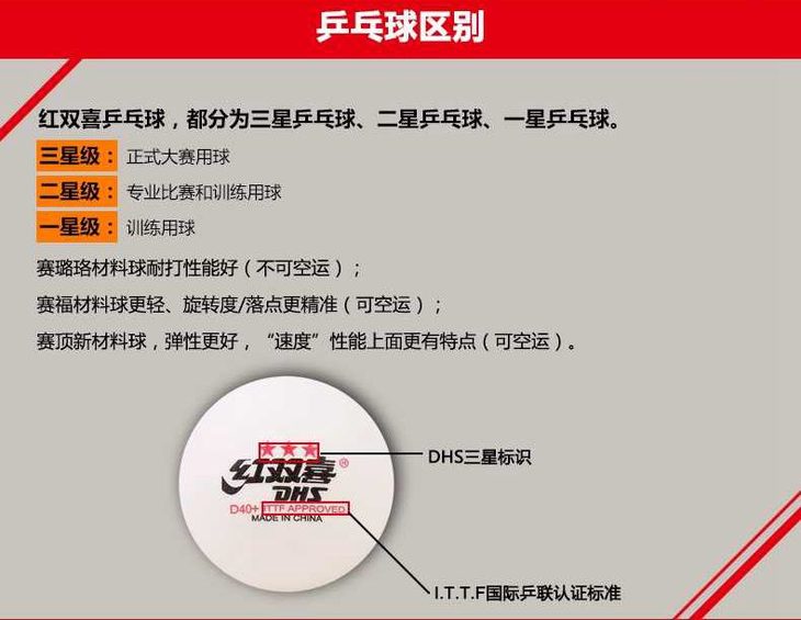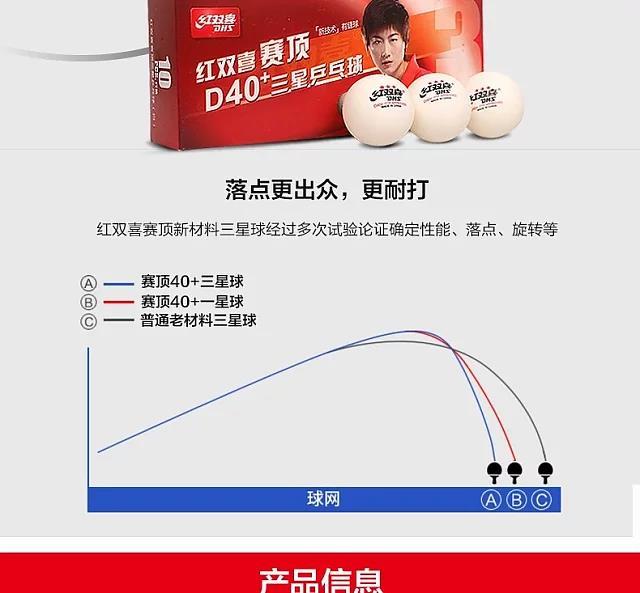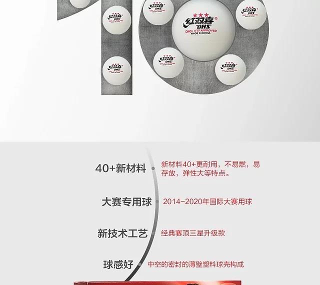 DHS红双喜 赛顶三星一星D40+ 大赛专用新材料有缝乒乓球比赛球