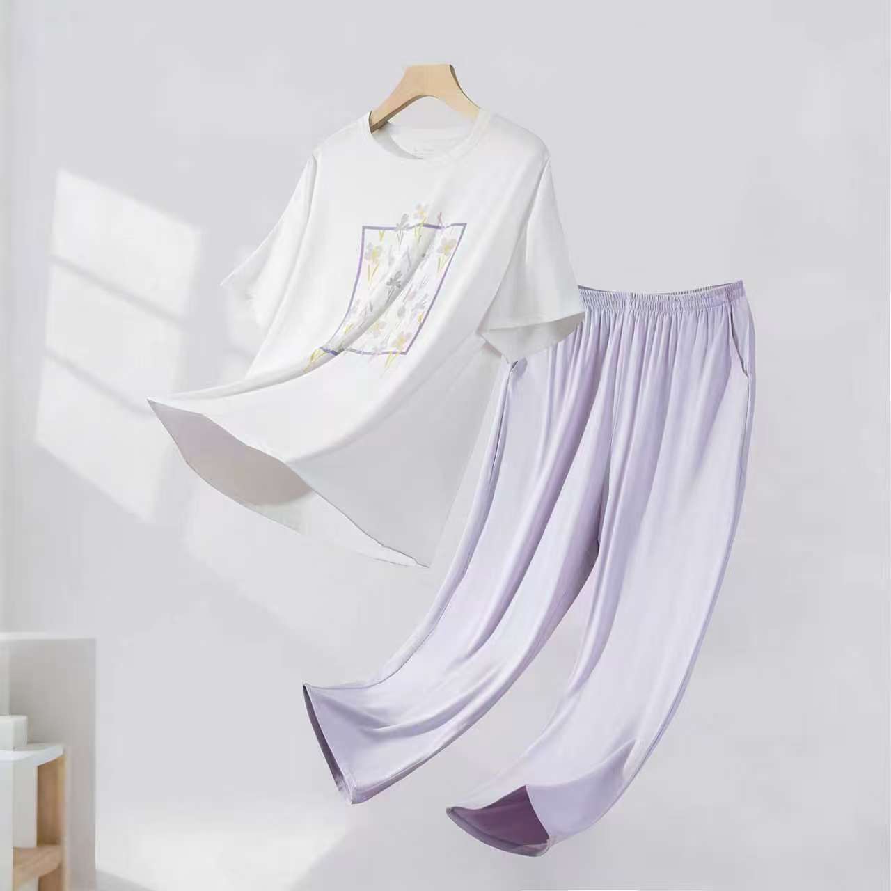 【品名】LS竹纤维女士时尚清新半袖八分裤休闲套2711