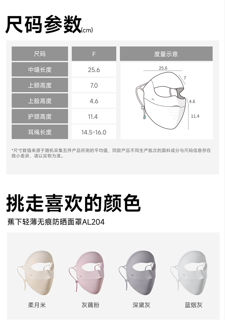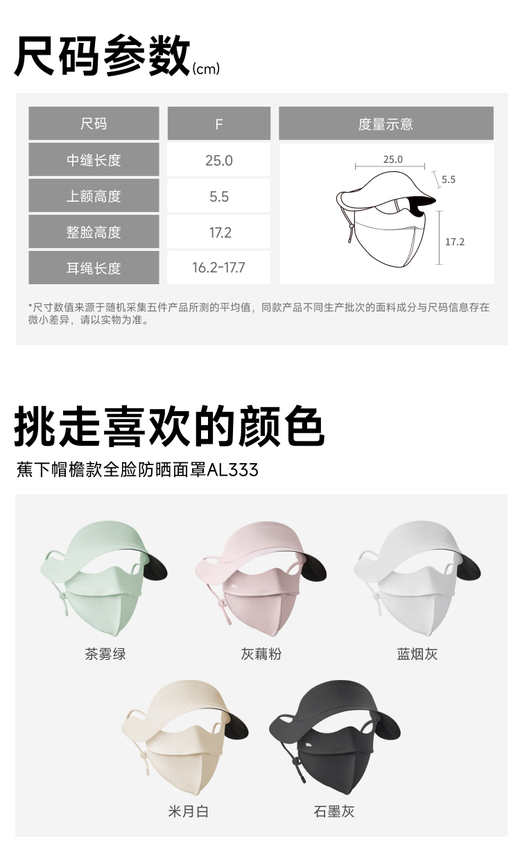 轻薄无痕防晒面罩AL204帽檐全脸面罩AL333帽檐护颈面罩AL341