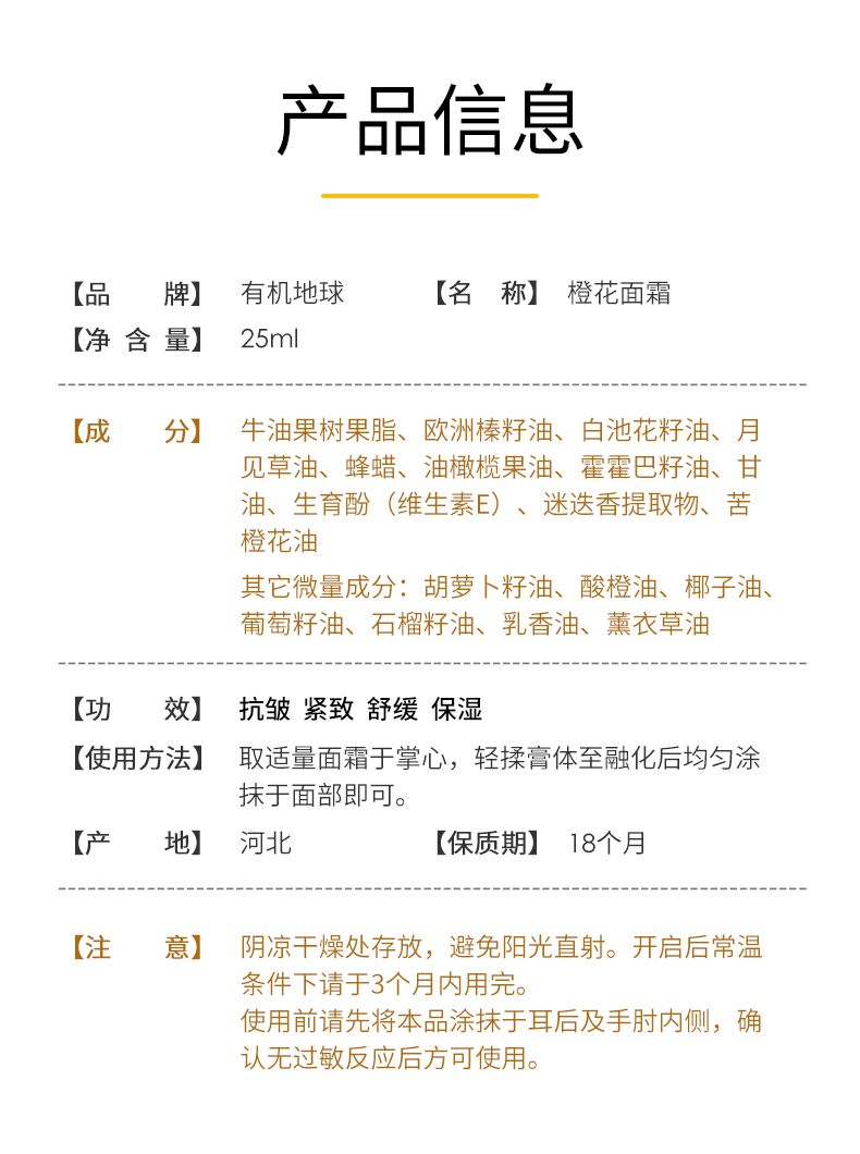 橙花面霜 | 25ml/瓶 紧致抗皱 含蜂蜡 有机地球(成分不含水,质地成膏状,建议搭配有机地球精华油或纯露调和均匀后,再涂抹至面部)