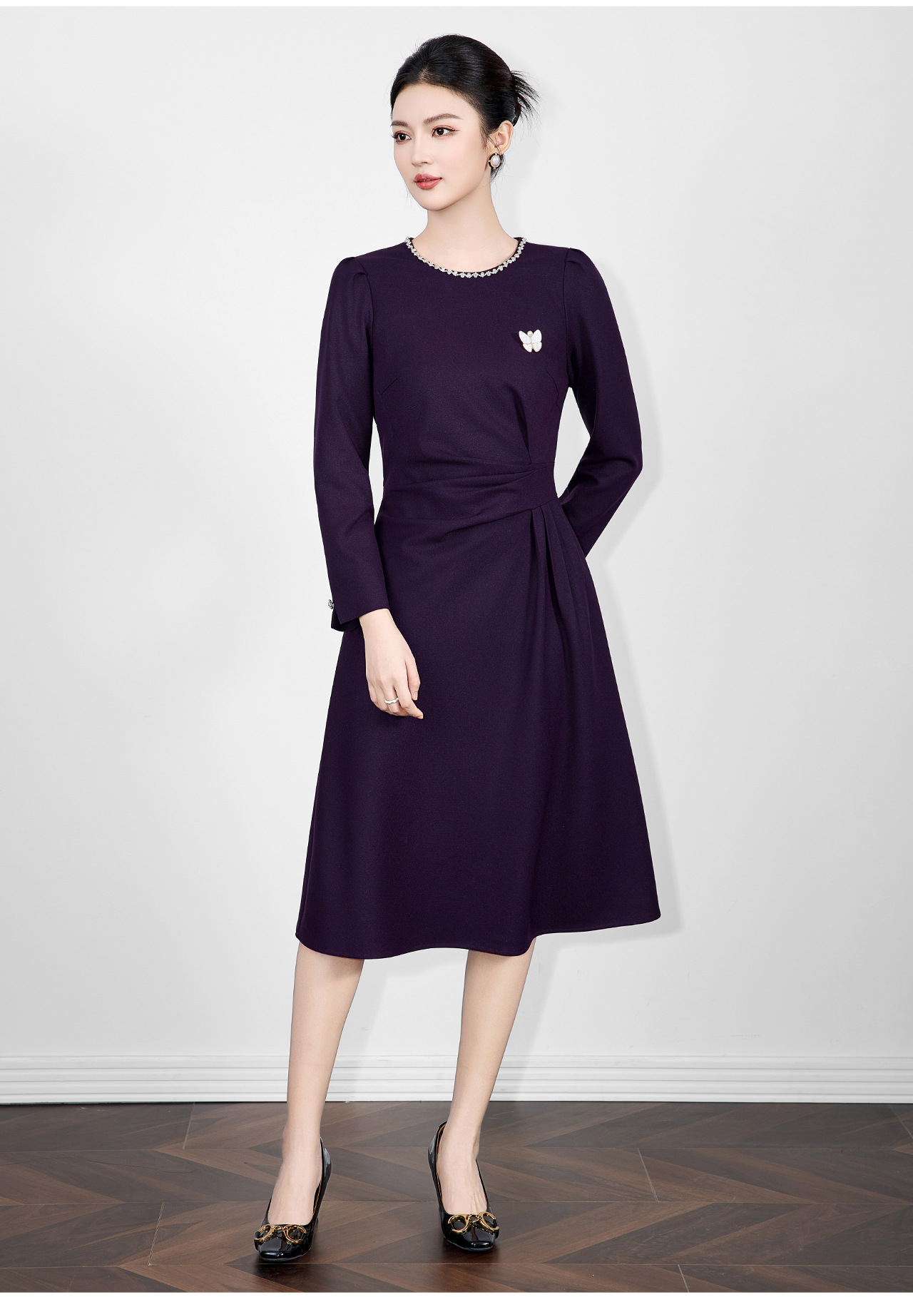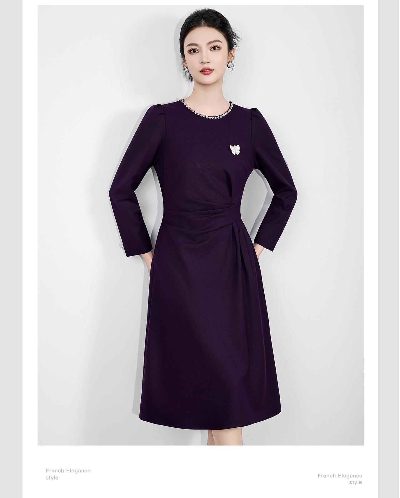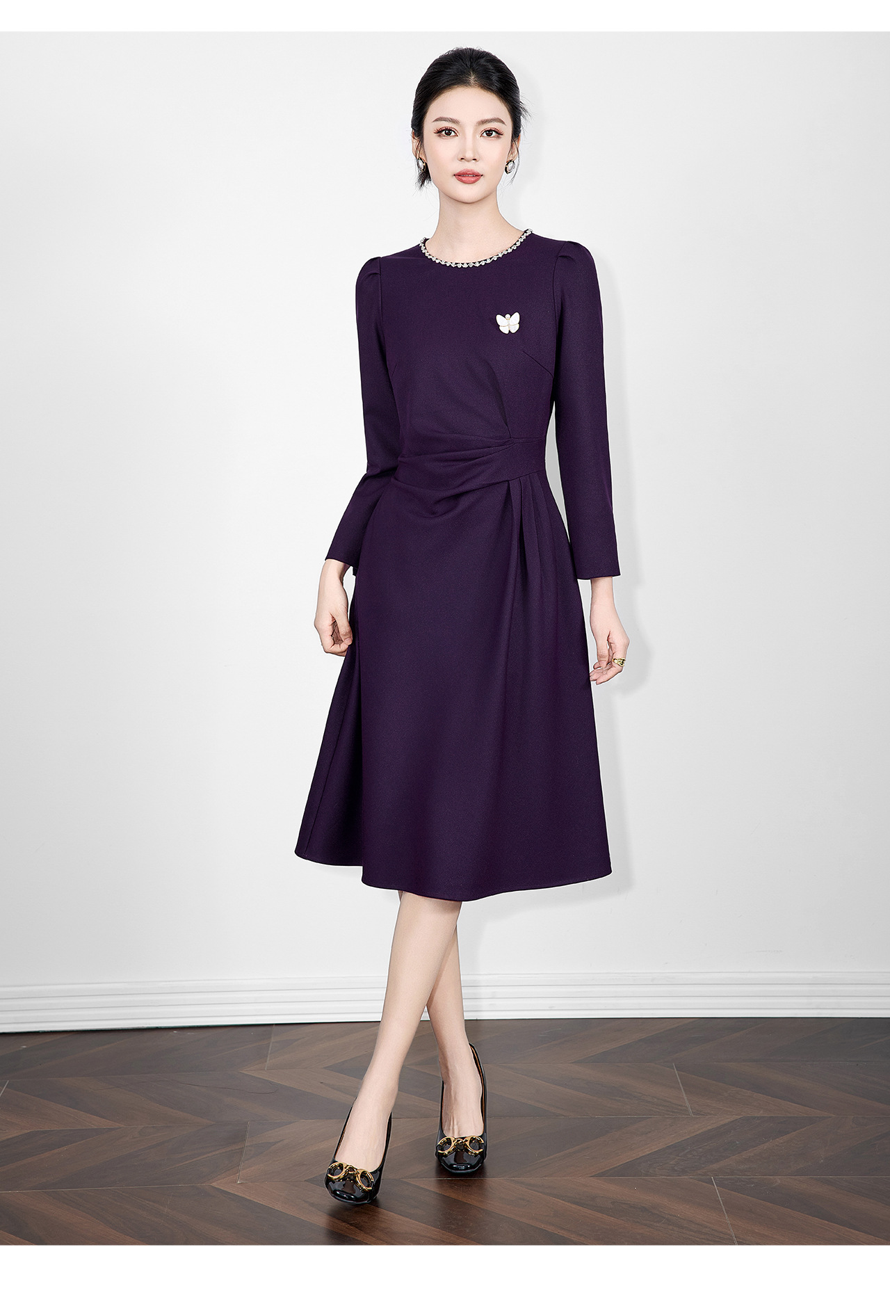 「高货wl」全新升级【铂金会员330/天猫449/差价119】(03059)洛诗琳气质通勤钉珠连衣裙2025秋冬新款褶皱修身收腰A字裙