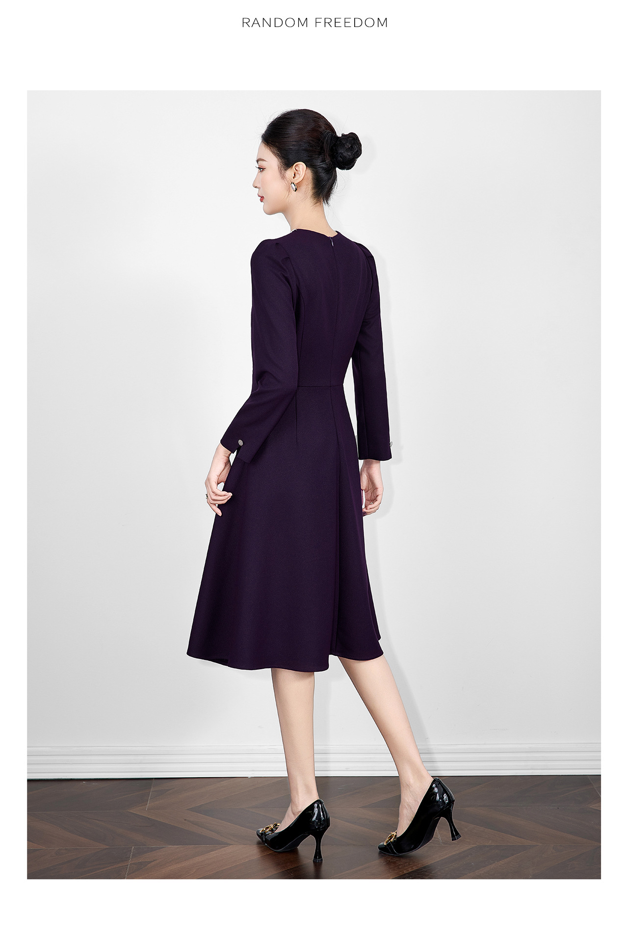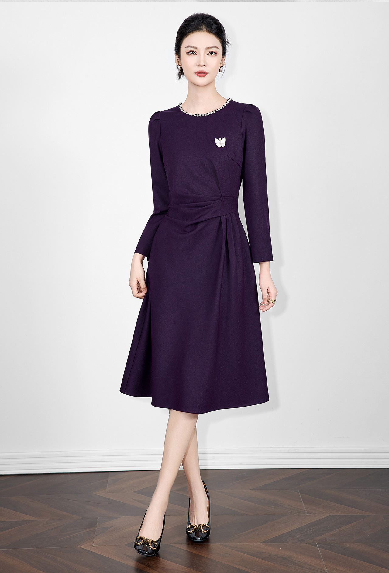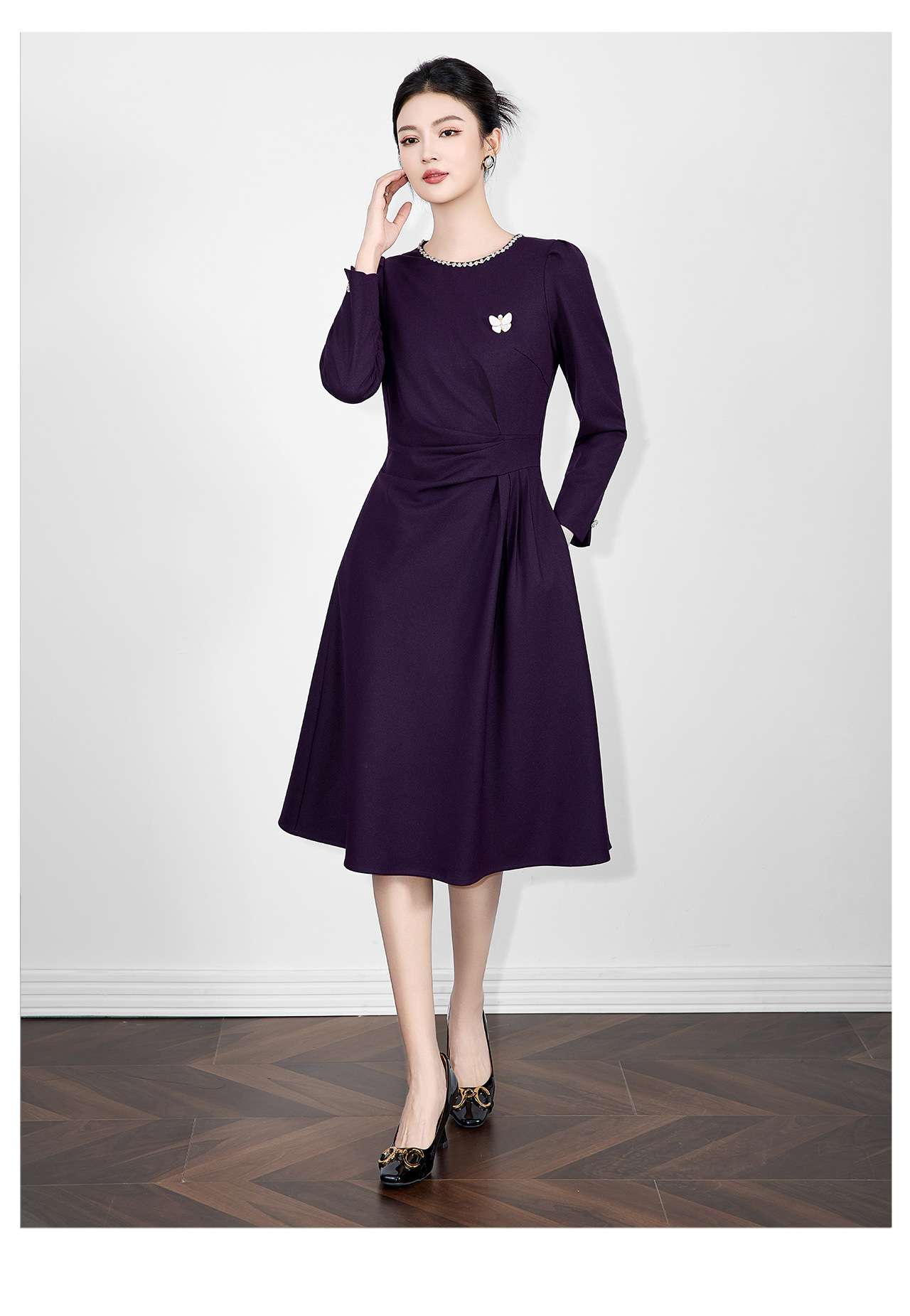 「高货wl」全新升级【铂金会员330/天猫449/差价119】(03059)洛诗琳气质通勤钉珠连衣裙2025秋冬新款褶皱修身收腰A字裙
