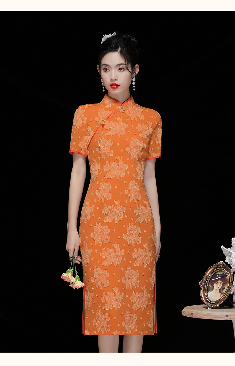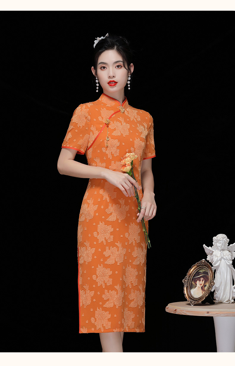 OY230156 中国风女装夏季2023年新款复古气质优雅旗袍连衣裙