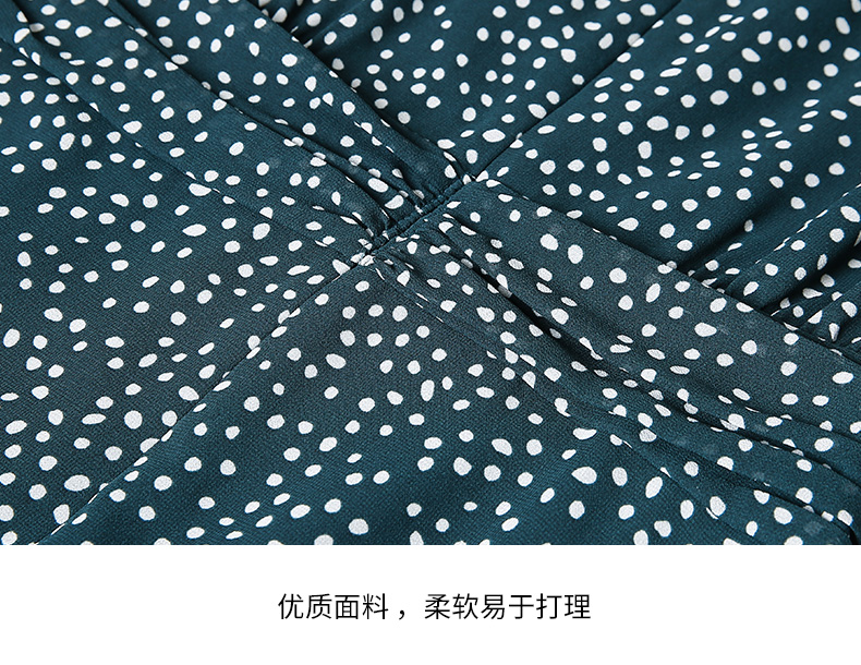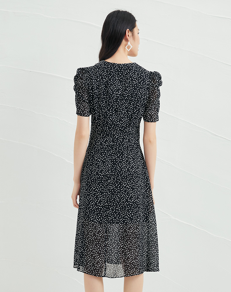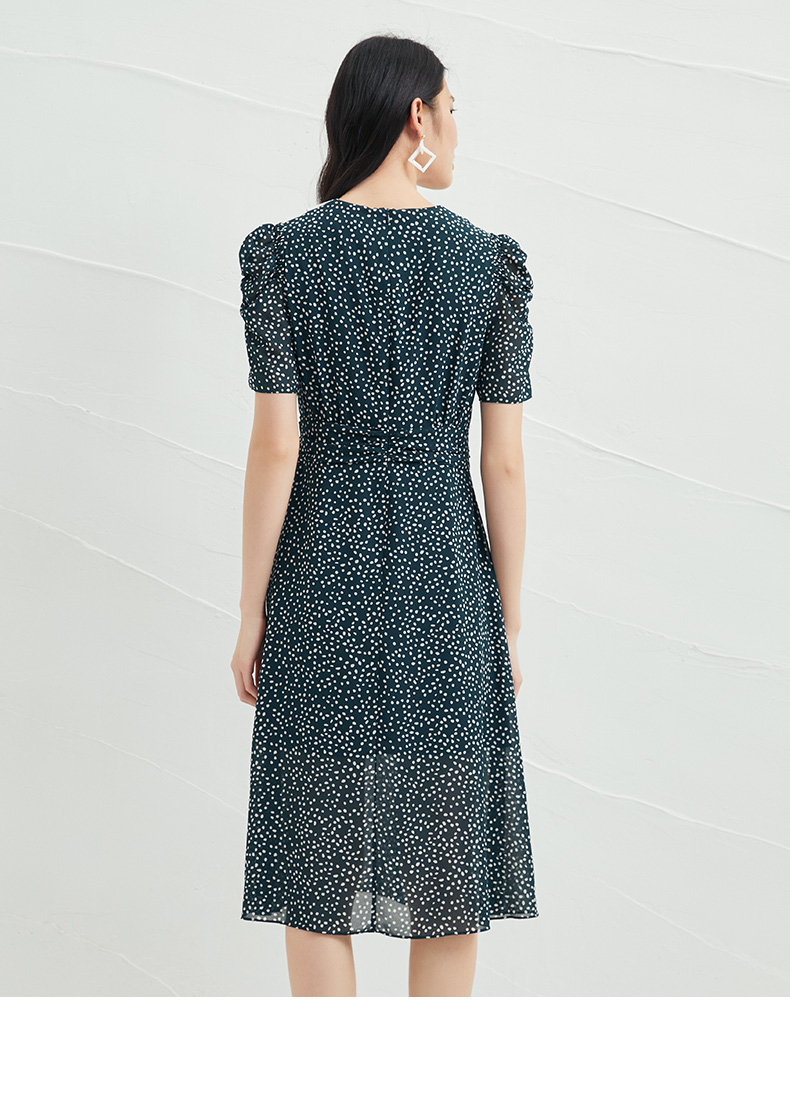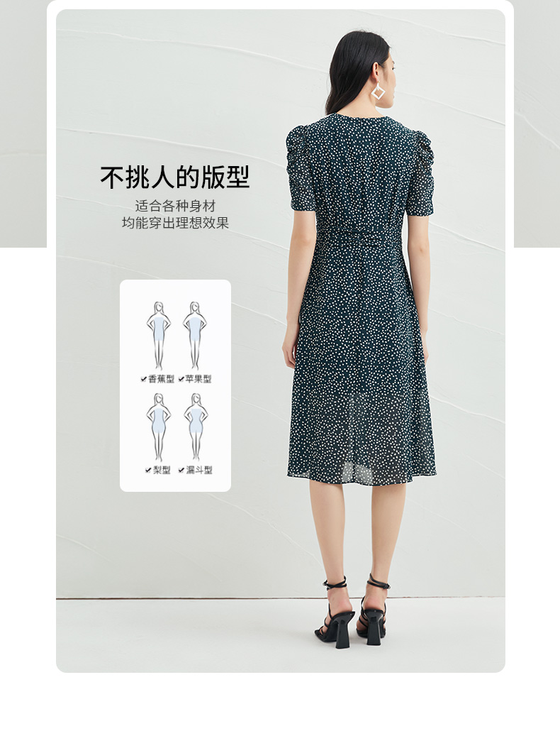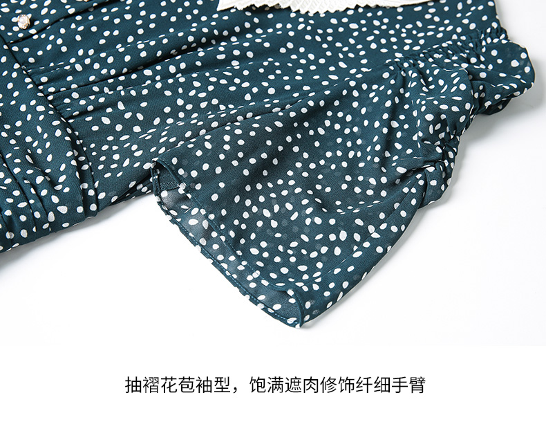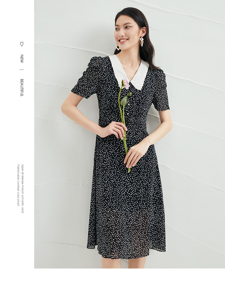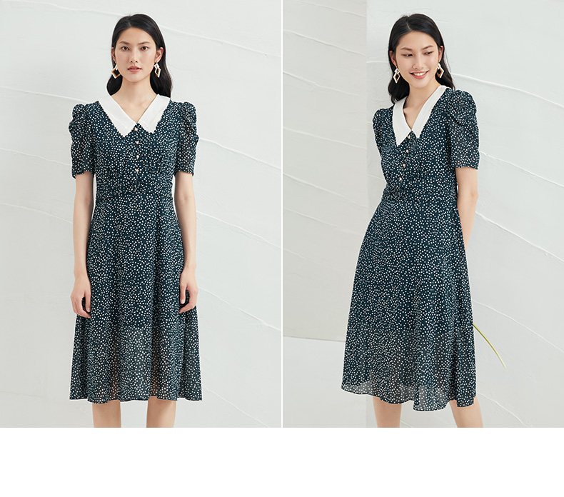 EITIE爱特爱夏季新款娃娃领波点中长款收腰泡泡袖连衣裙6607325