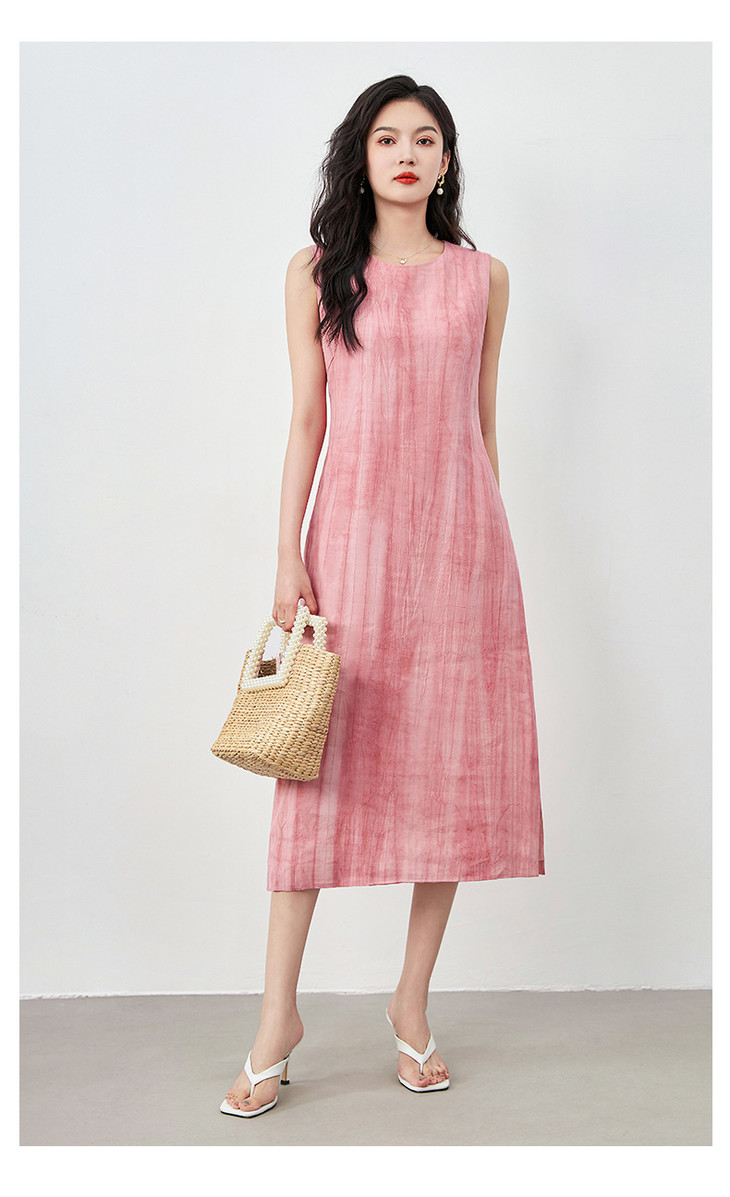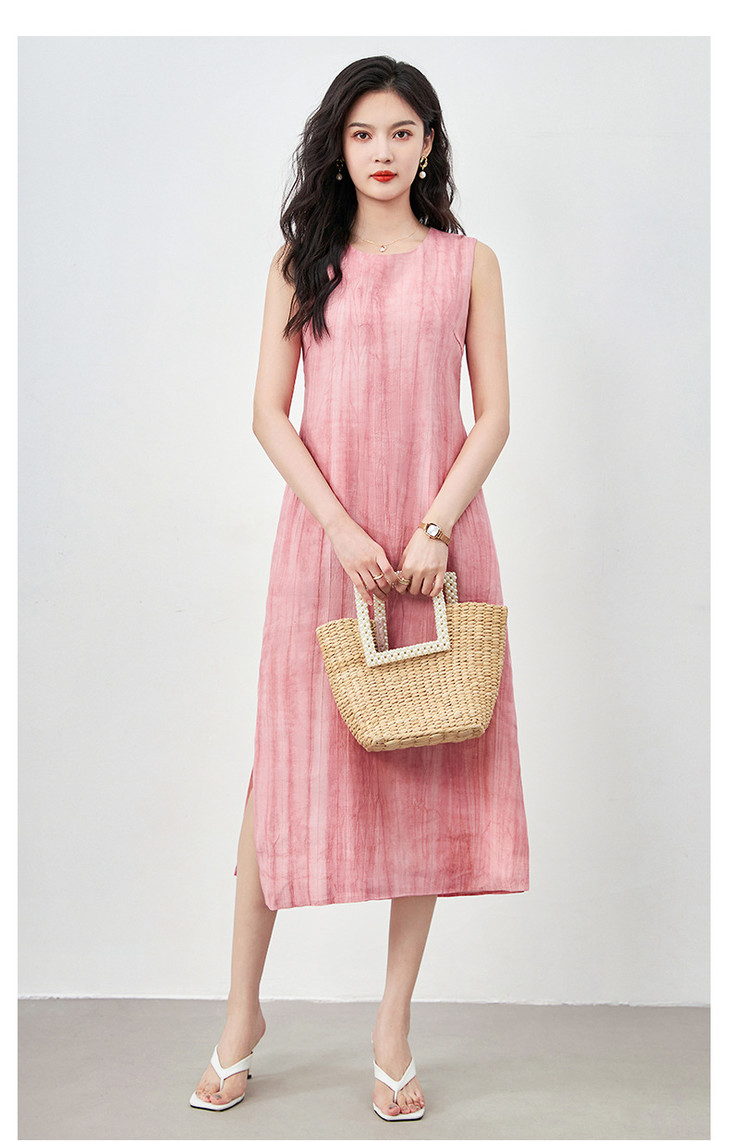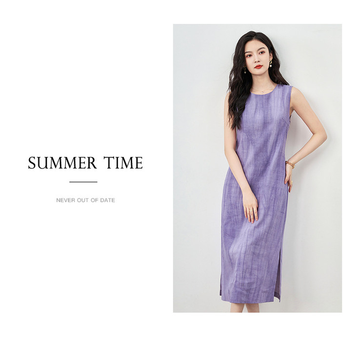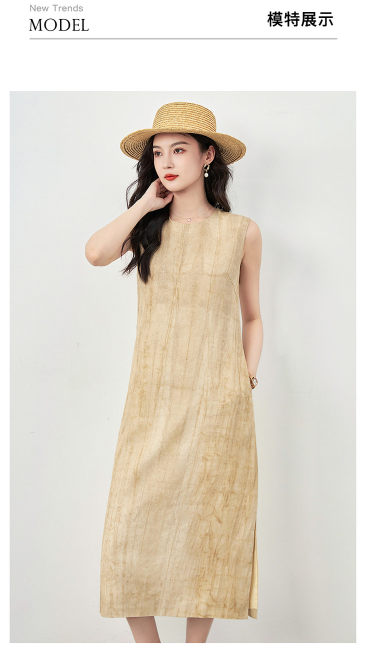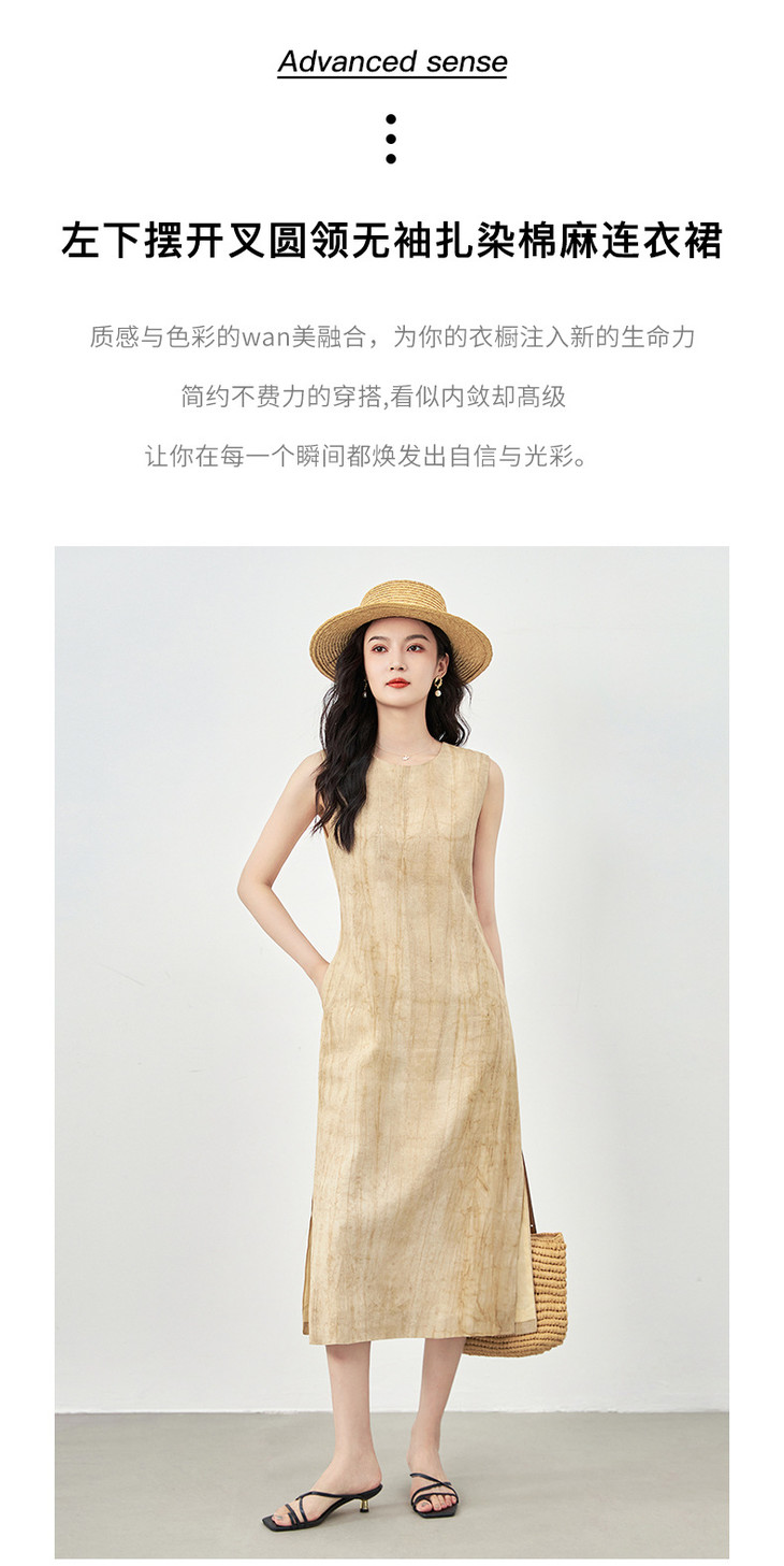 扎染棉麻简约大气,今年流行老钱风法式无袖连衣裙WLZD2421109