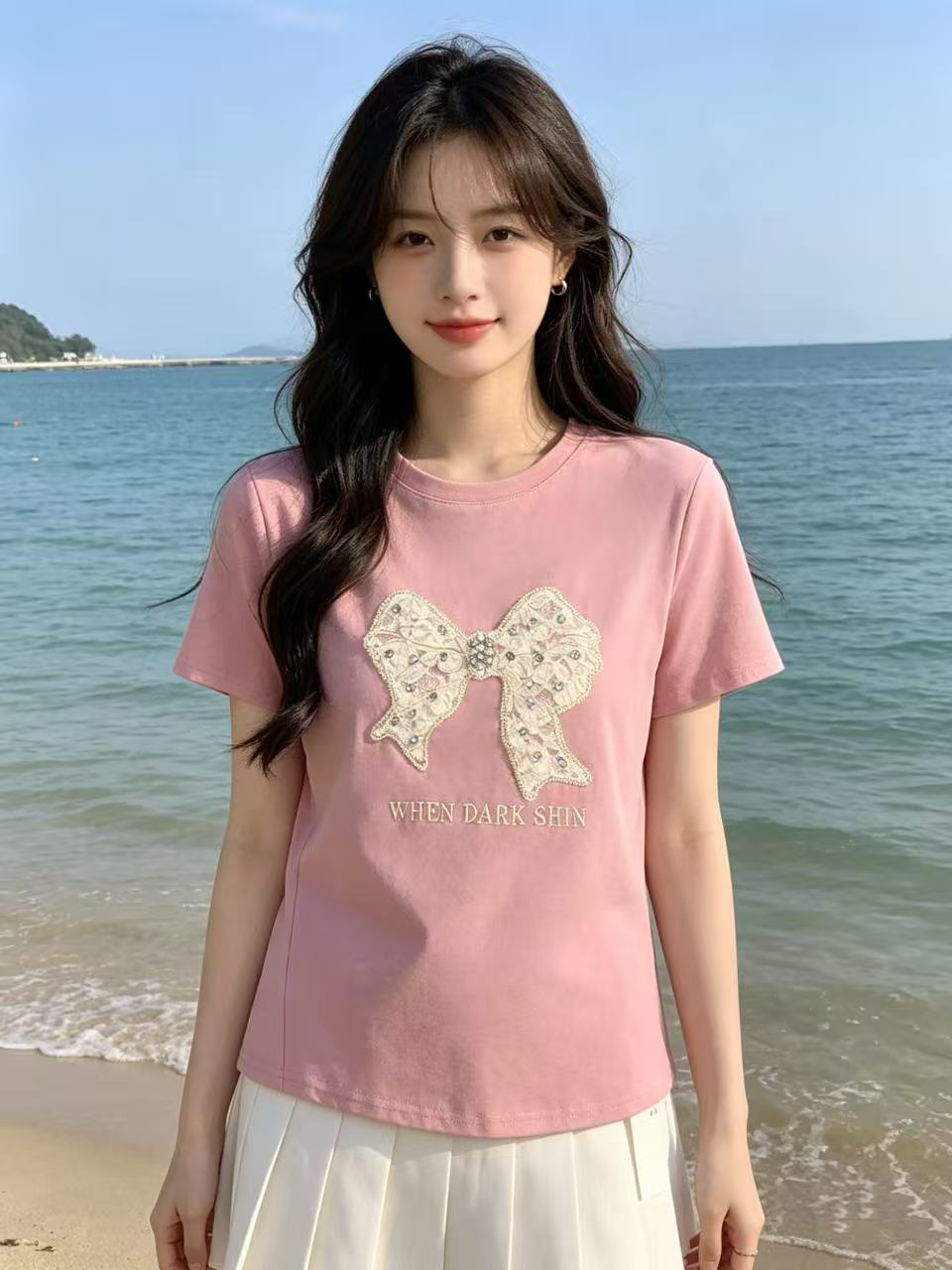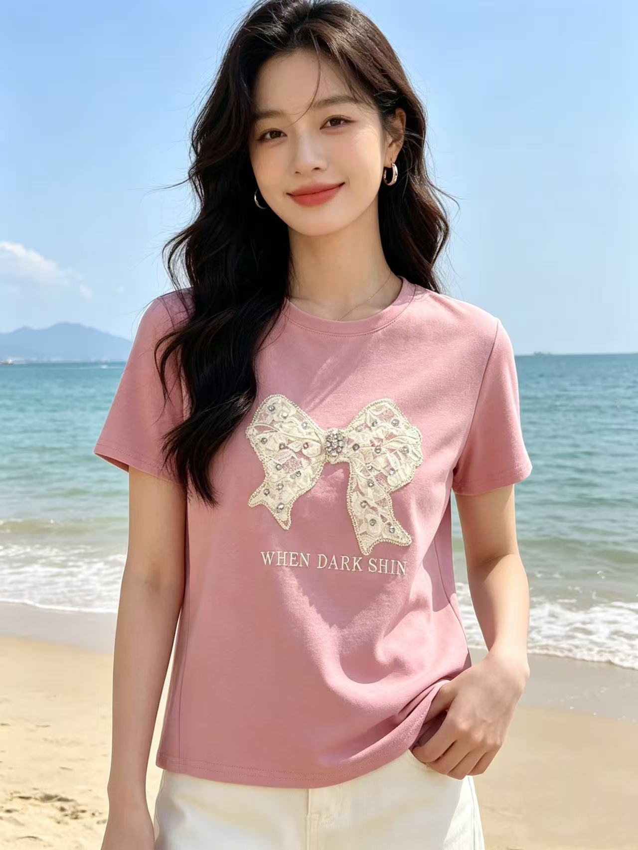 重工/工艺T【自营】柳钉钻➕立体花朵蝴蝶!0231韩系设计感95棉T恤夏季-喜出