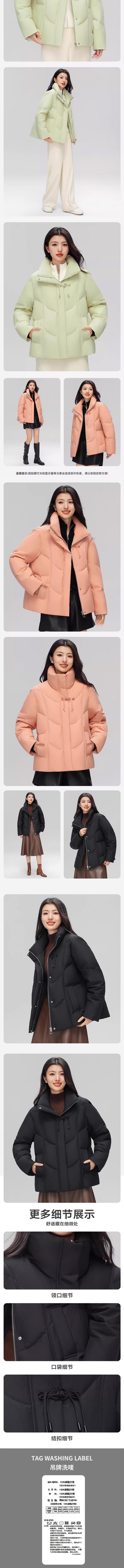丰讯 新中式盘扣羽绒服女短款冬季甜美立领保暖外套 FXYL6880