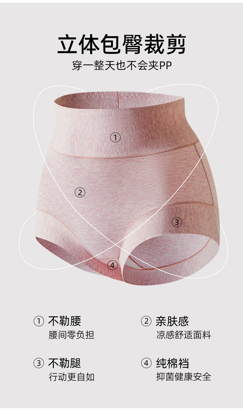 XY-1568【1条】冬季新款60支新疆长绒棉女士平角裤7A级抗菌裆部全包臀高腰收腹女