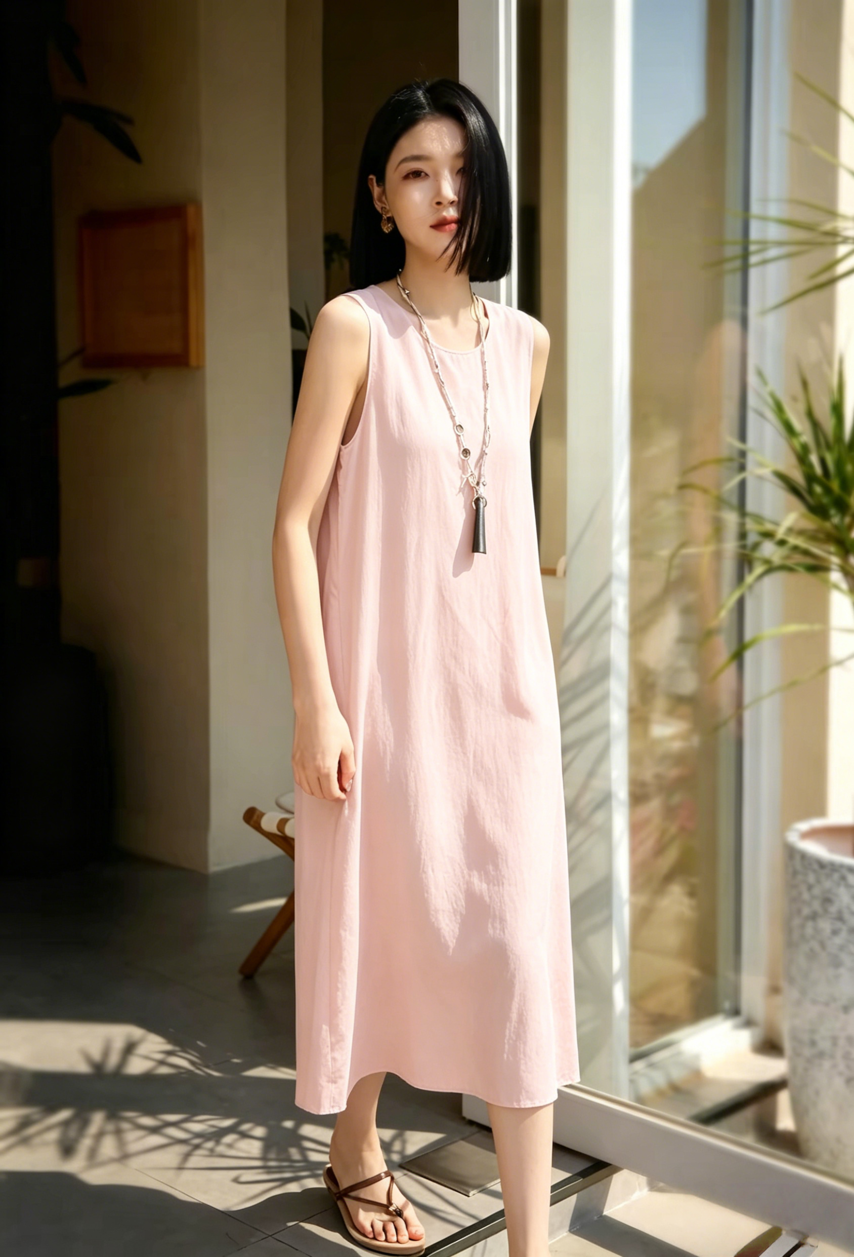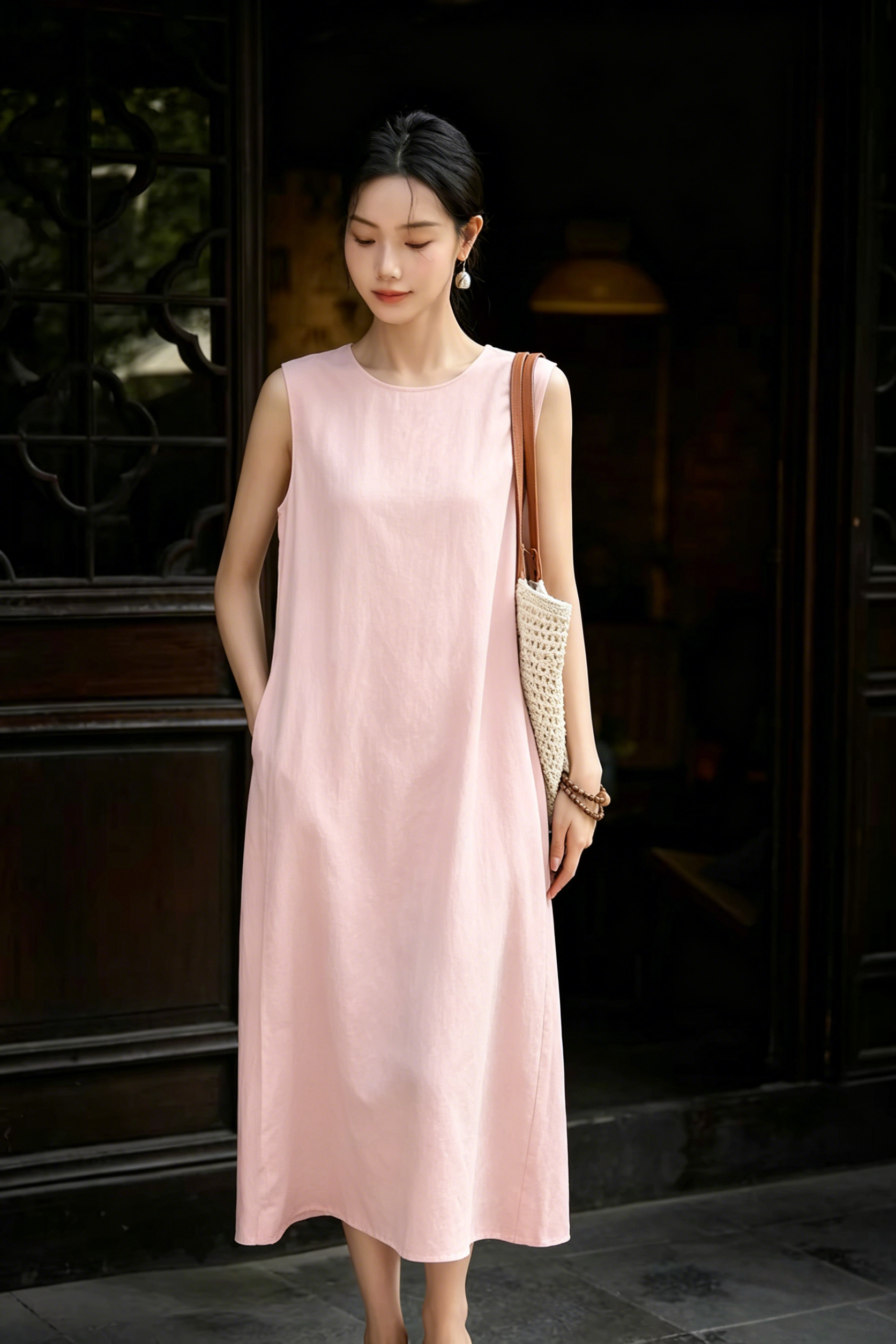 【3-7天发货】郎奴华菲LONGNVFAIR轻薄亚麻天丝无袖2色连衣裙,清冷又慵懒,不透不闷!越穿越软,不挑年龄!无法抗拒的松弛老钱风