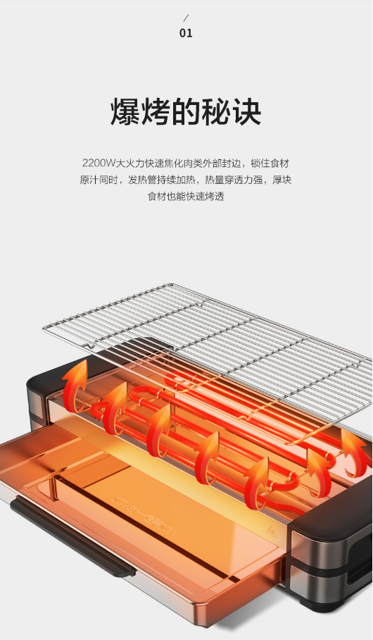 Fastee法诗缇电烧烤炉家用无烟烤串机烤肉机电烤烤肉炉子 FST-50C