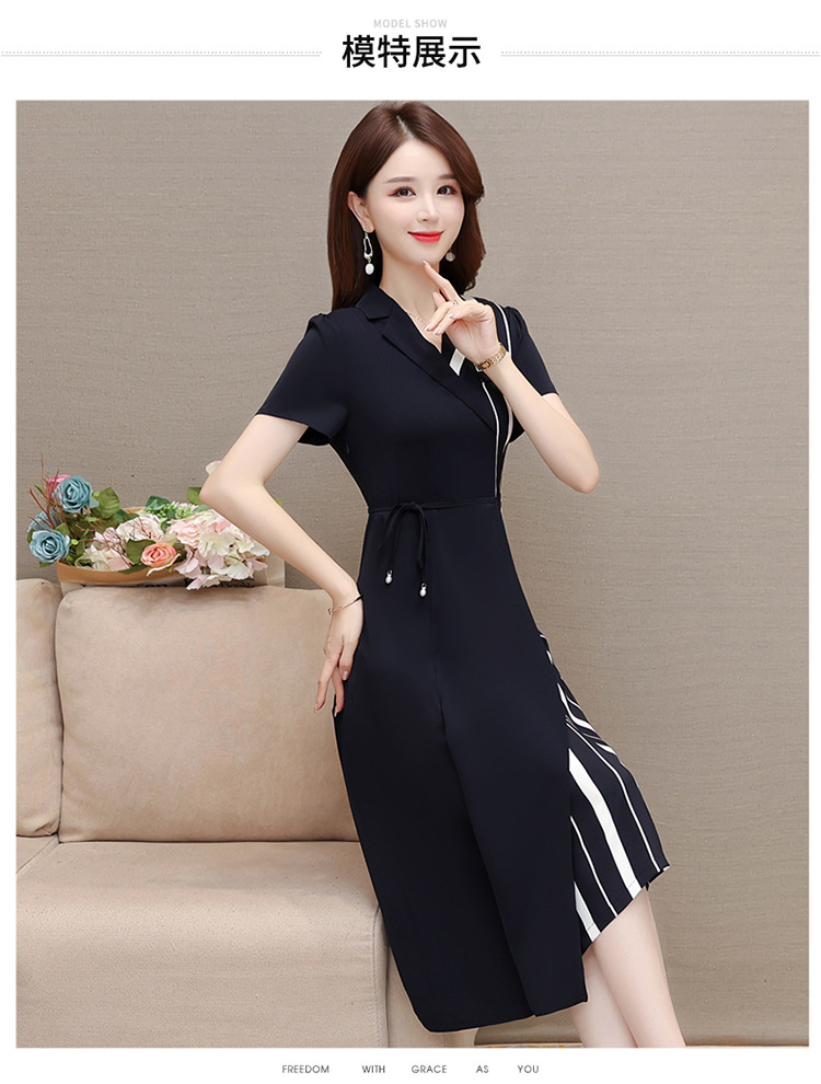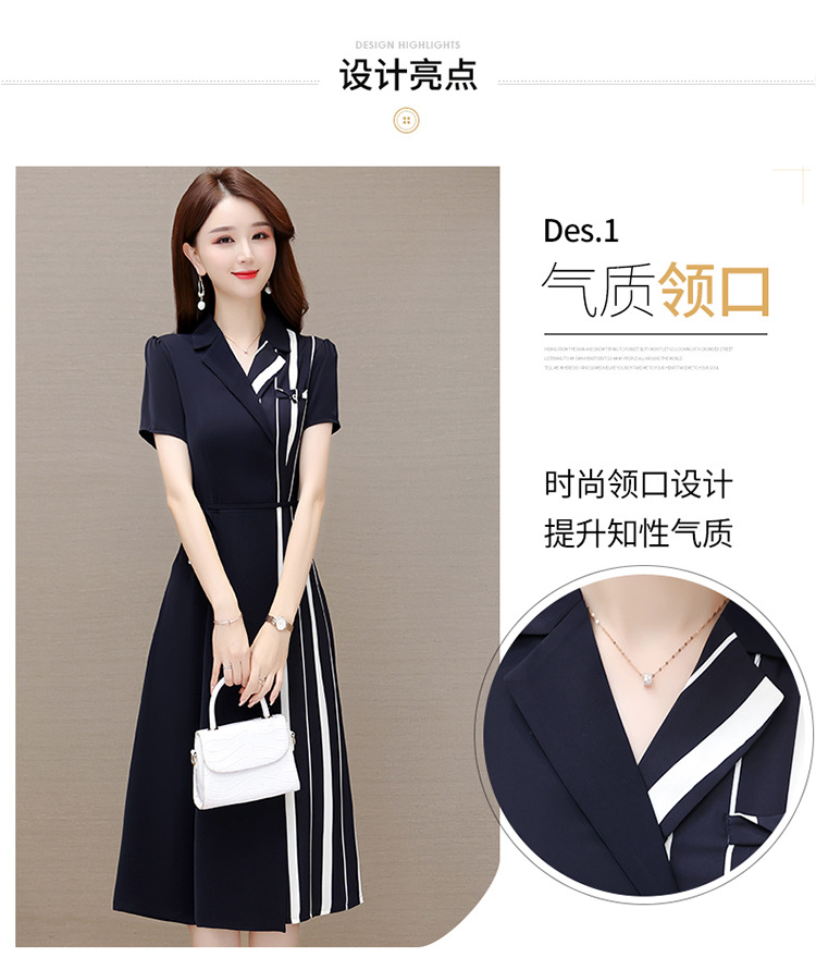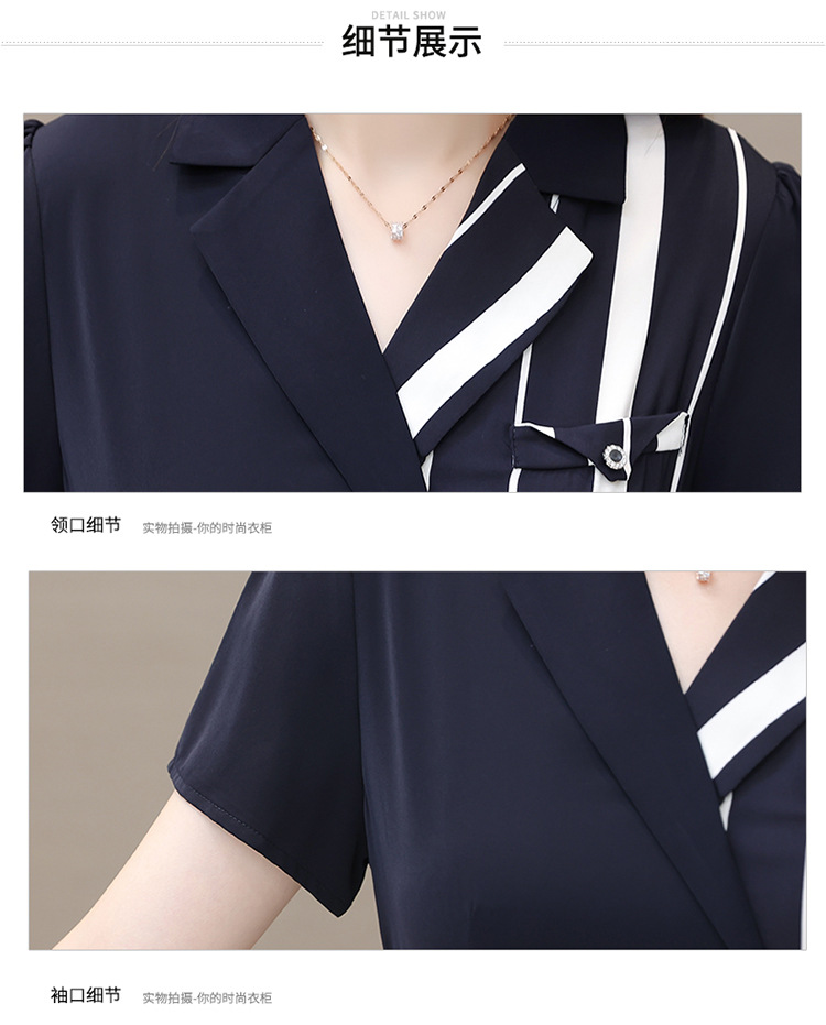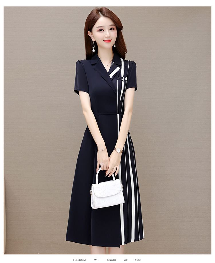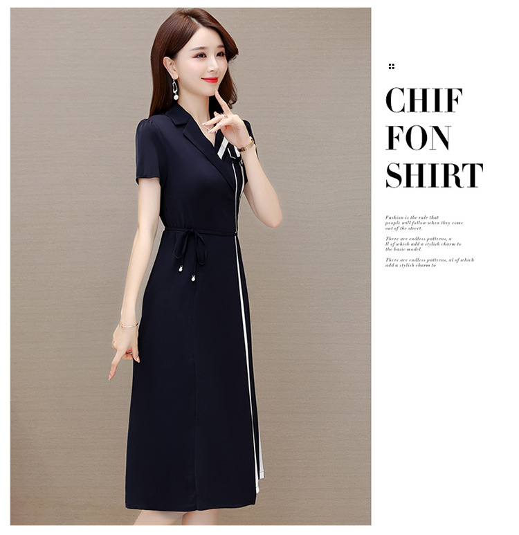 QYMXYKL-JSK2318-L 条纹简约拼接系带收腰通勤时尚雪纺裙2023年夏款短袖气质连衣裙