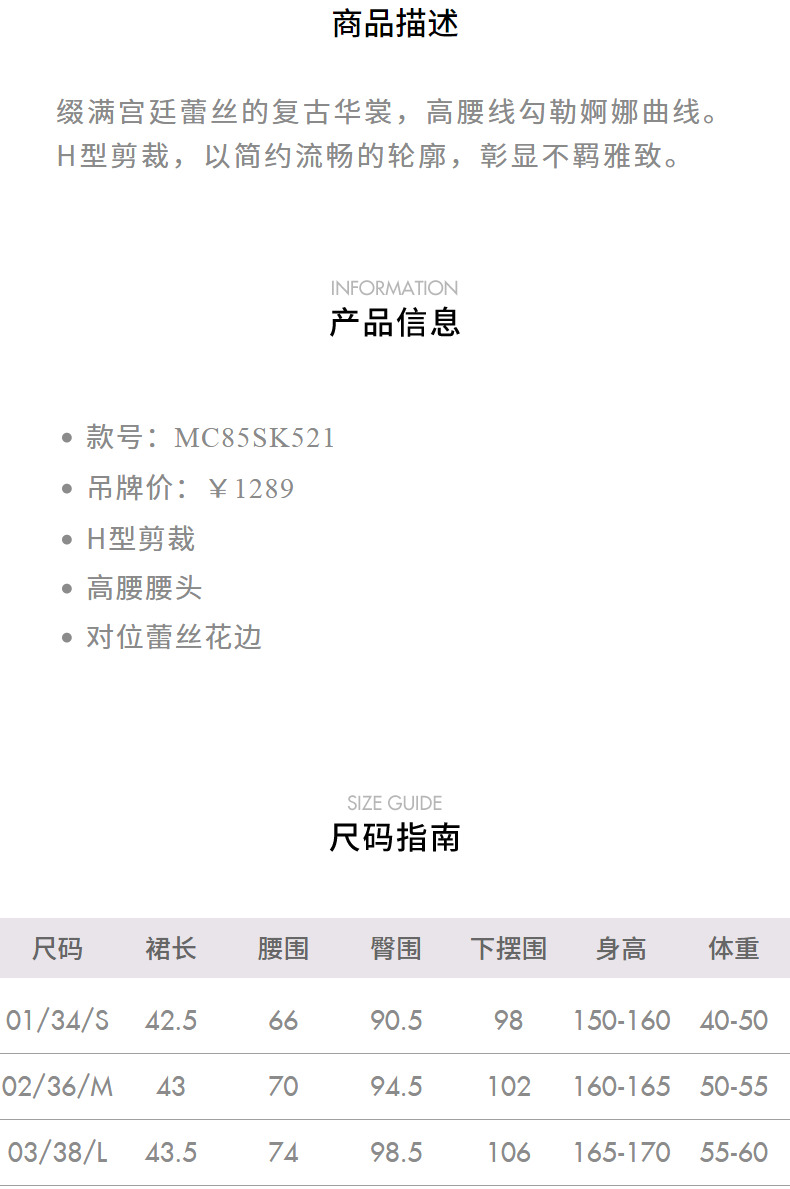 【秀场抢先款】MAXRIENY复古宫廷风H型蕾丝半裙2024秋冬新款(货号:MC85SK521)