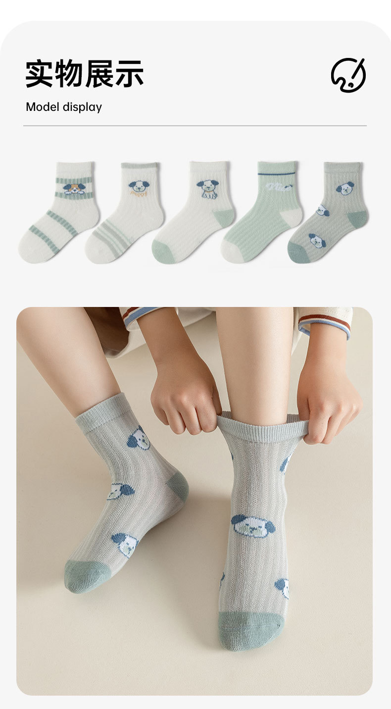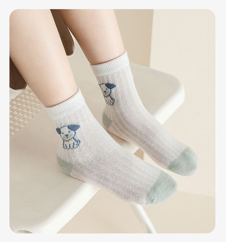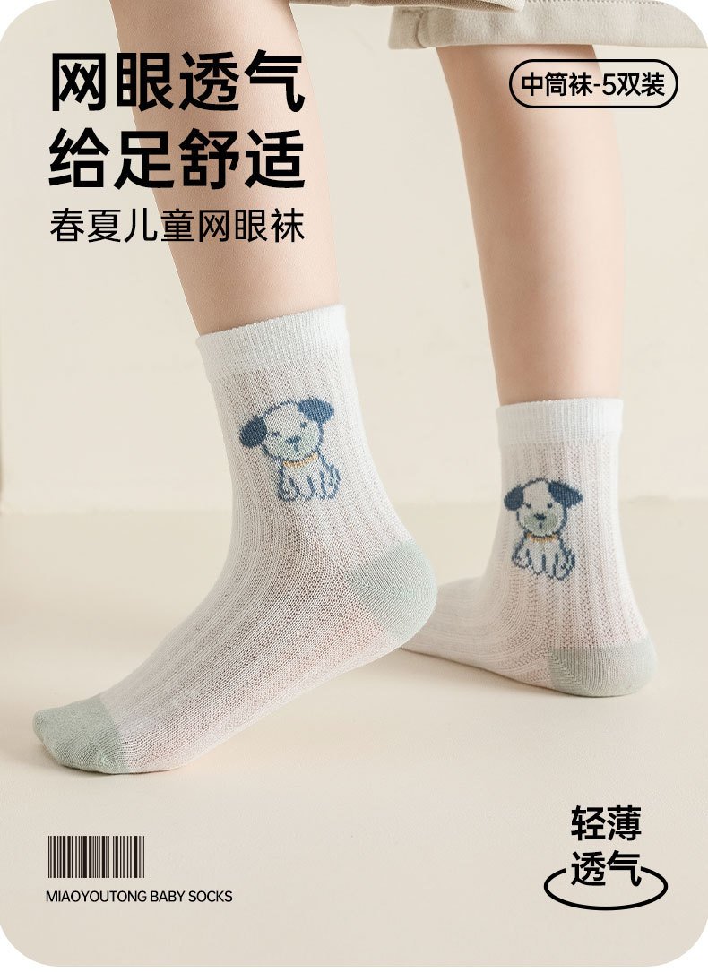 【网眼透气,给足舒适】夏天宝宝袜子 男宝小孩薄款棉中筒童袜 女童网眼透气学生长袜儿童-QQ