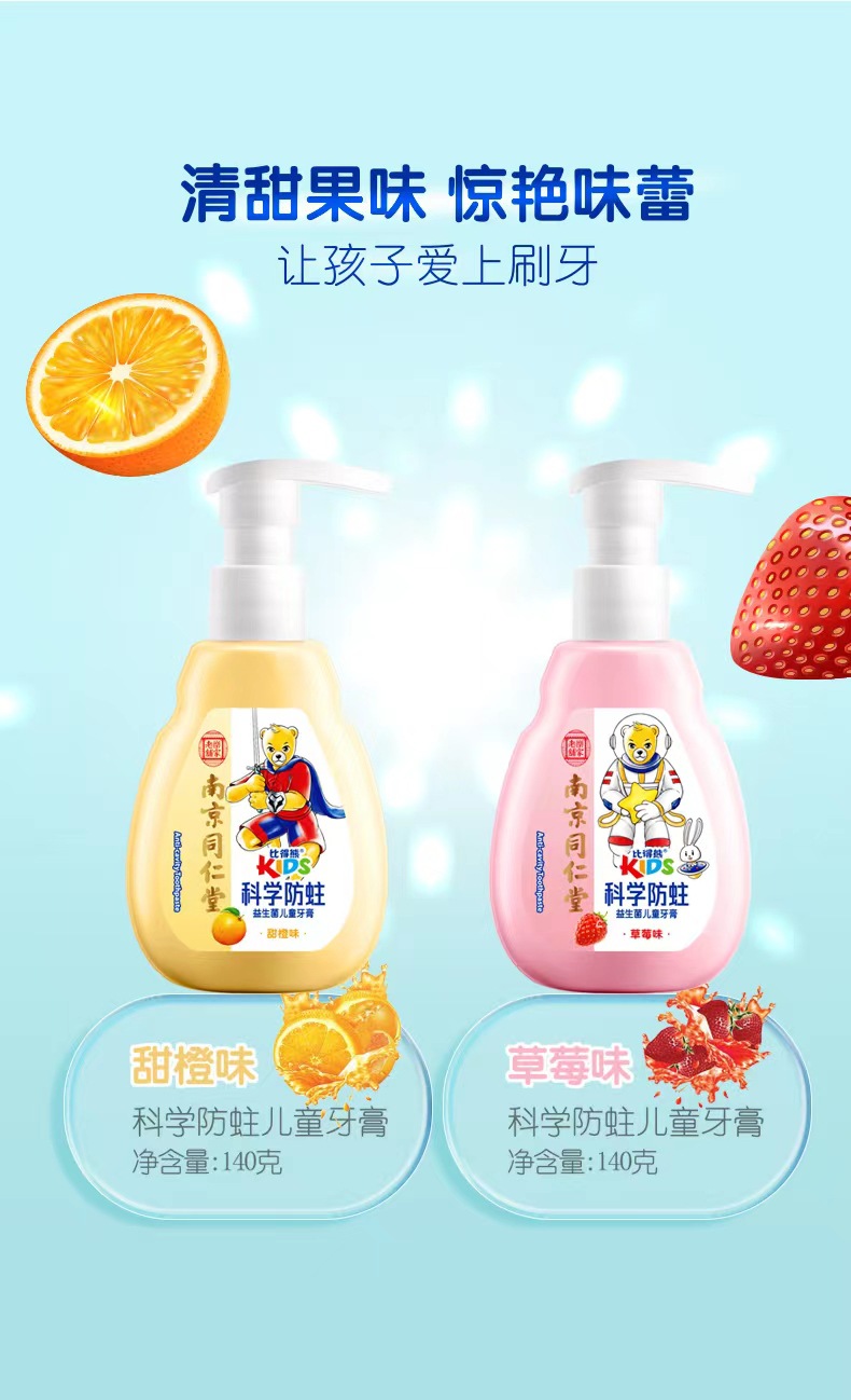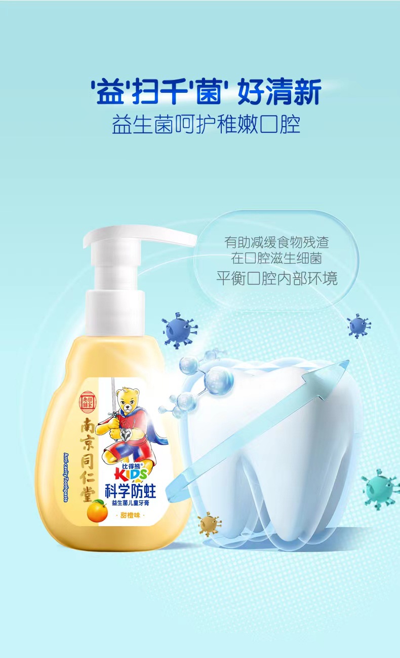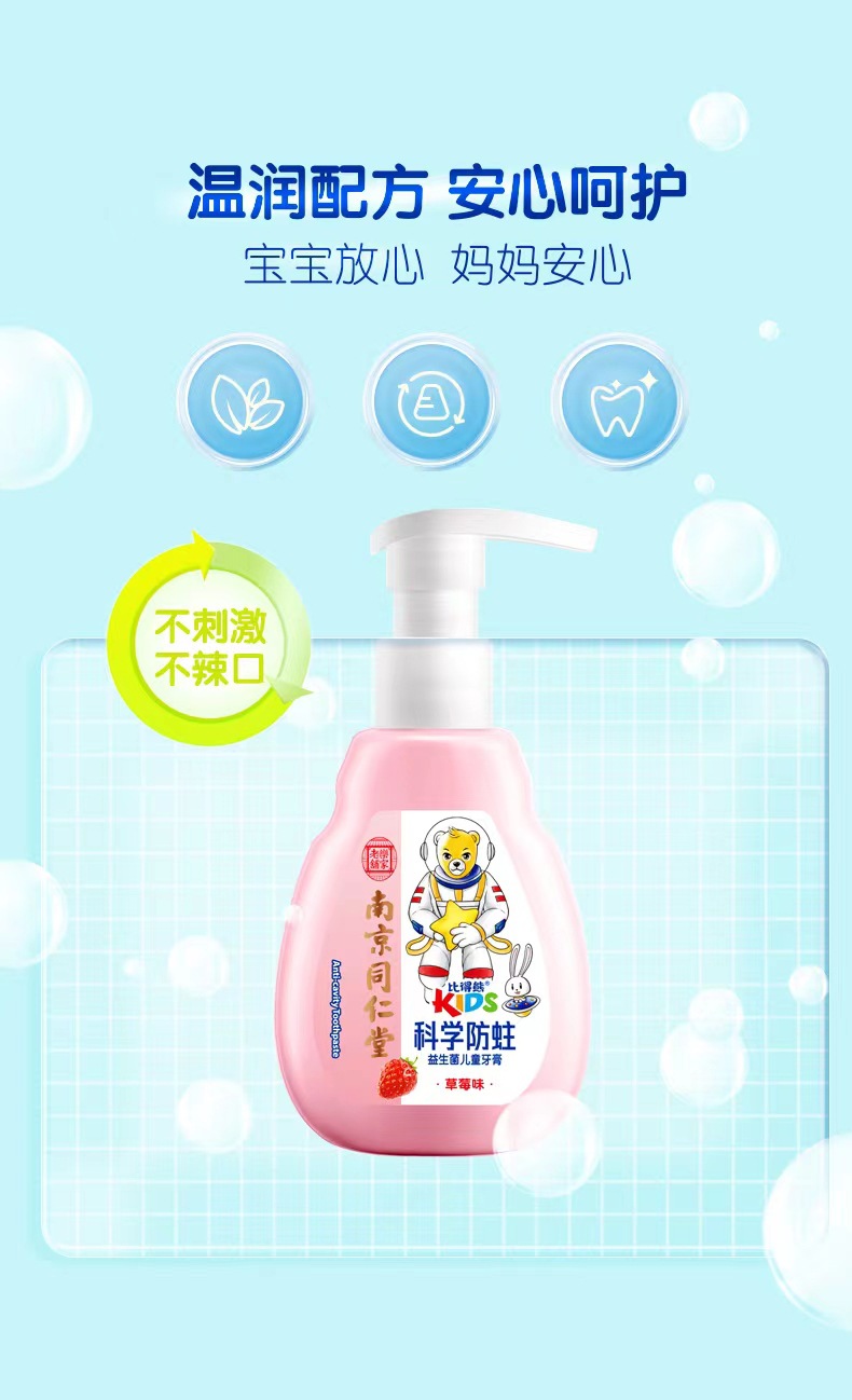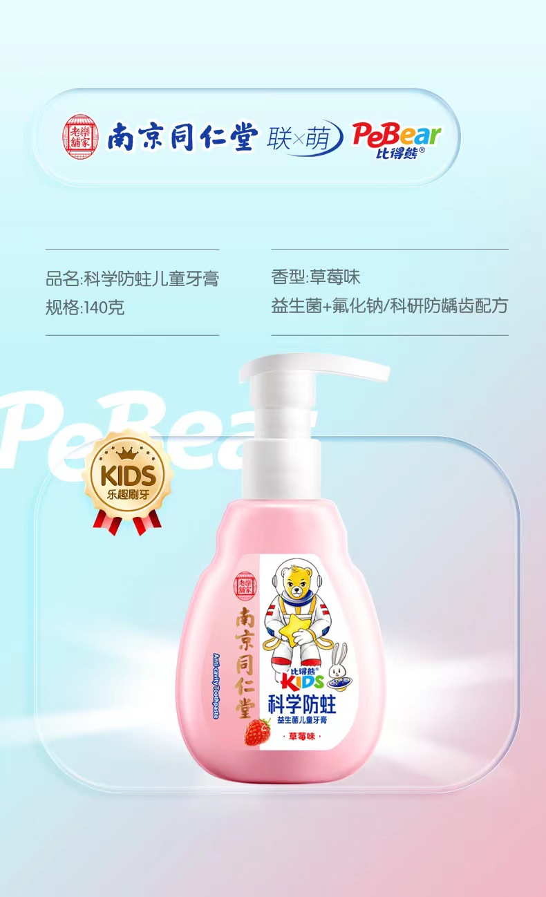 【科学防蛀,护齿联盟~】比得熊儿童牙膏 含氟防蛀益生菌按压式140g牙膏 温润配方 安心呵护-QQ