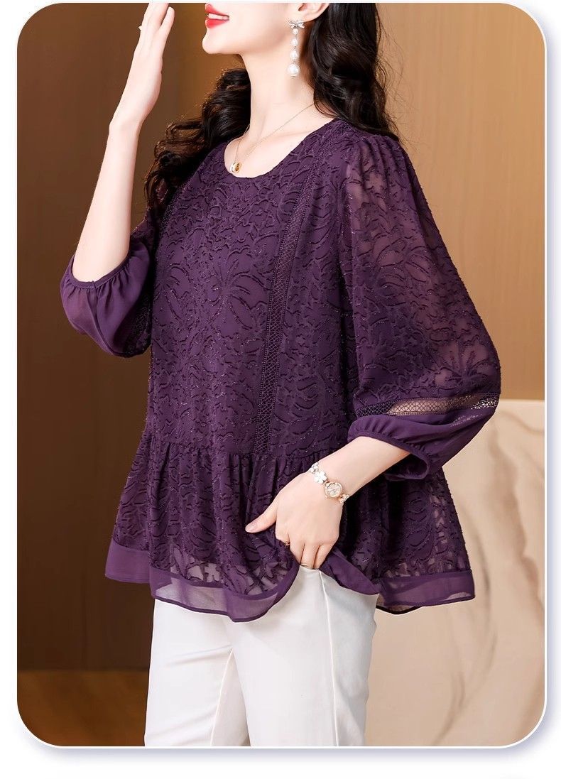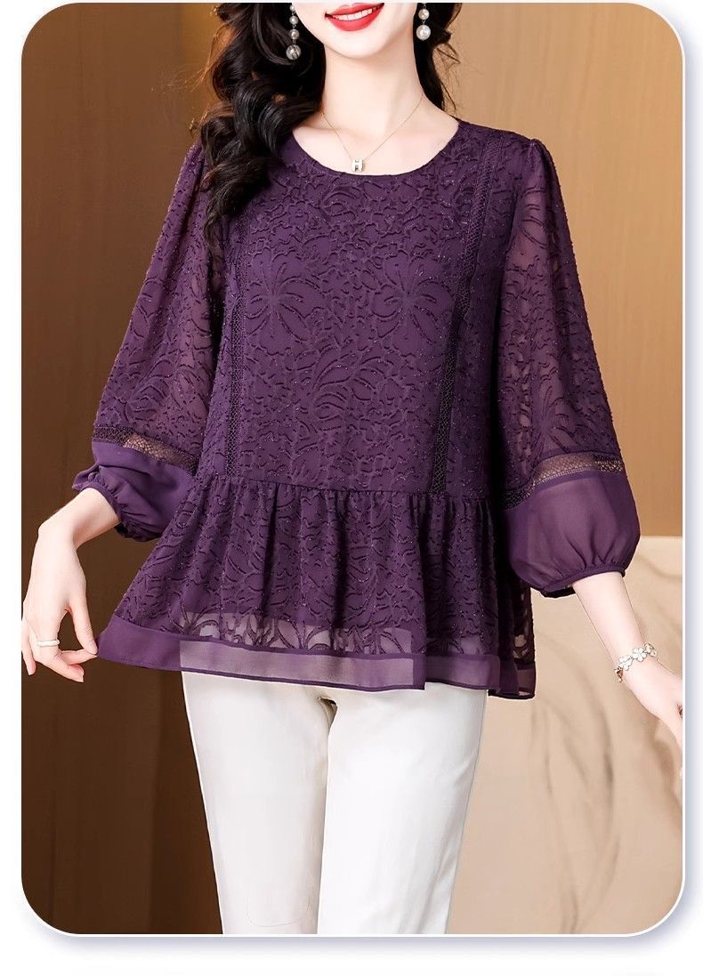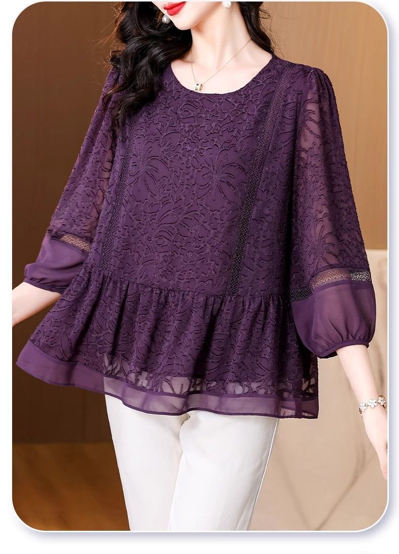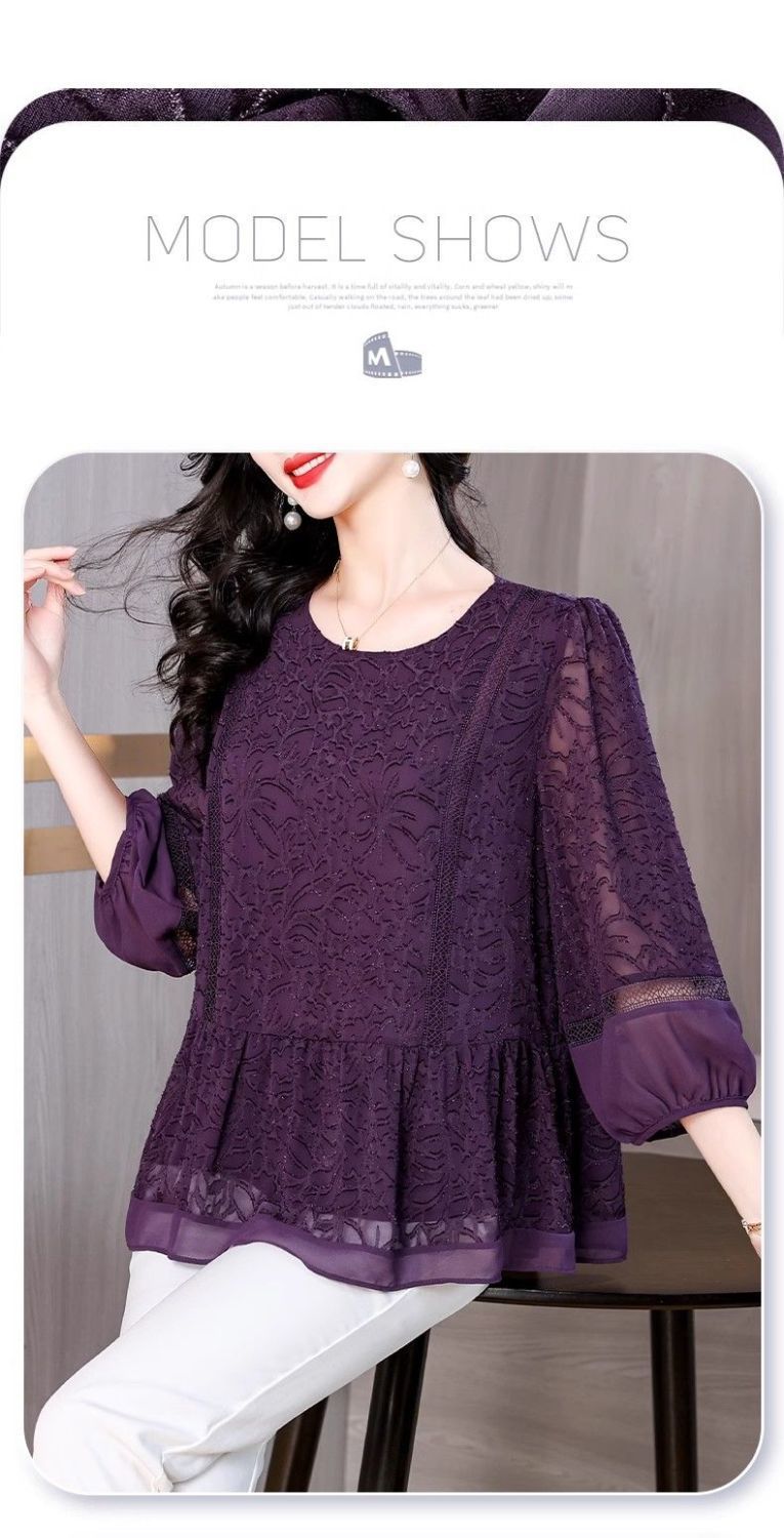 阔太太大码高端蕾丝衫女2025年夏季新款中年妈妈显瘦气质小衫上衣