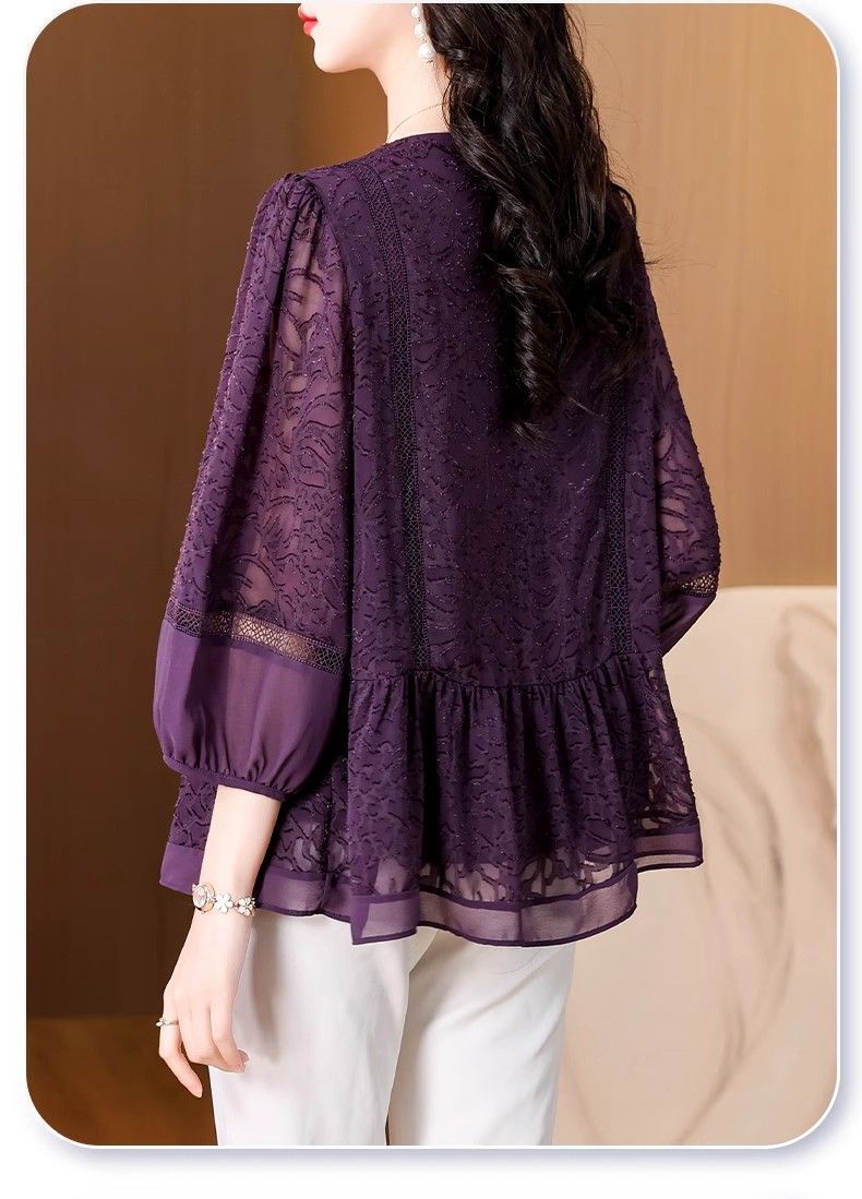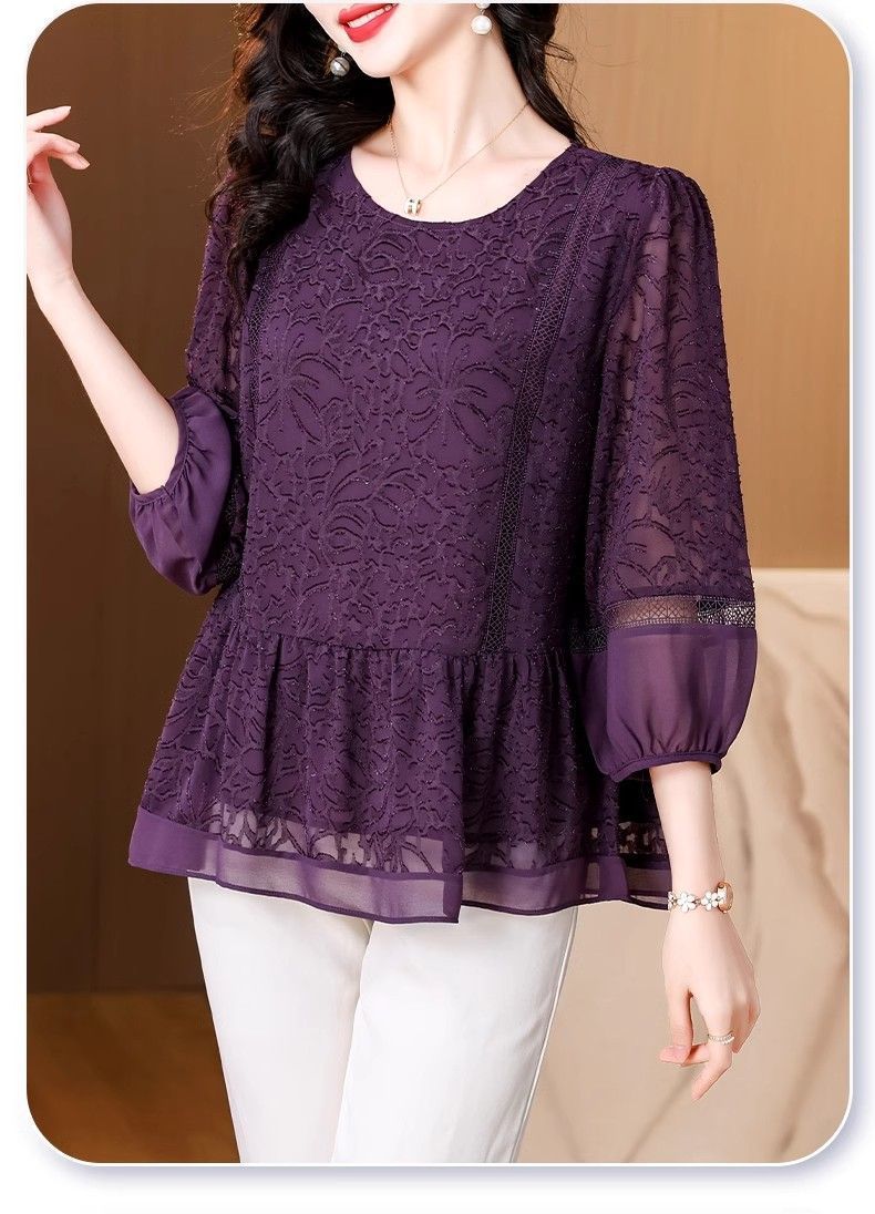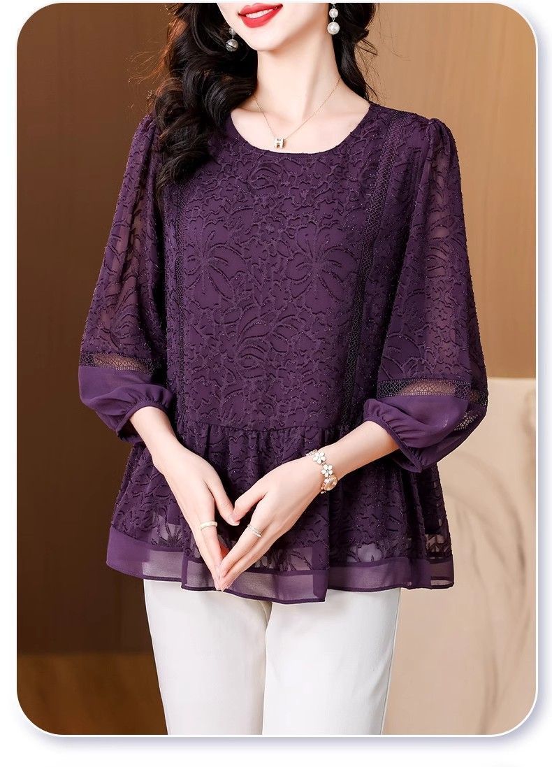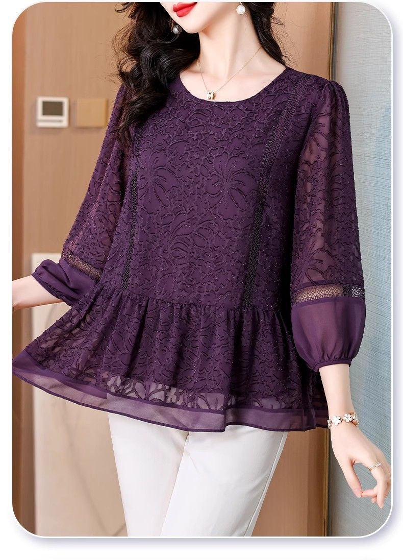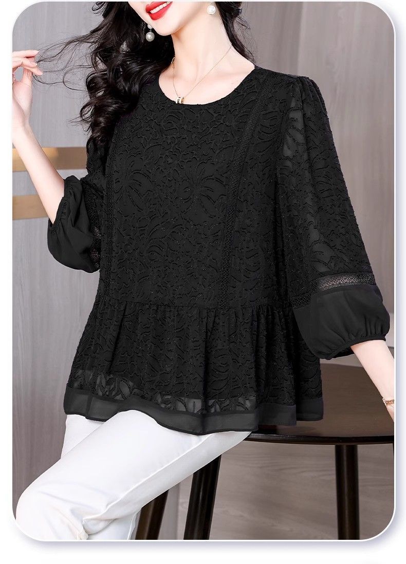 阔太太大码高端蕾丝衫女2025年夏季新款中年妈妈显瘦气质小衫上衣