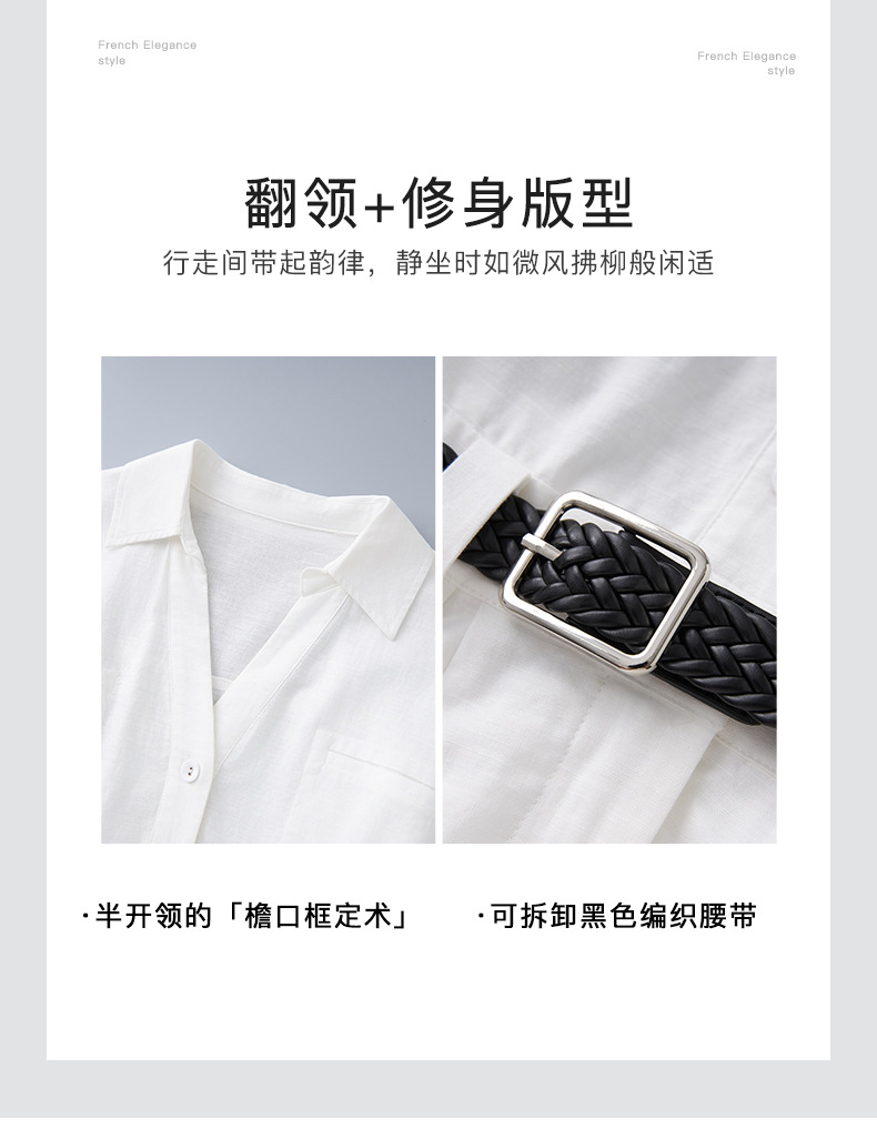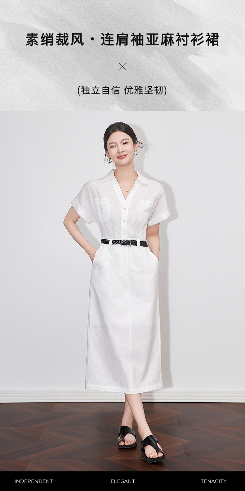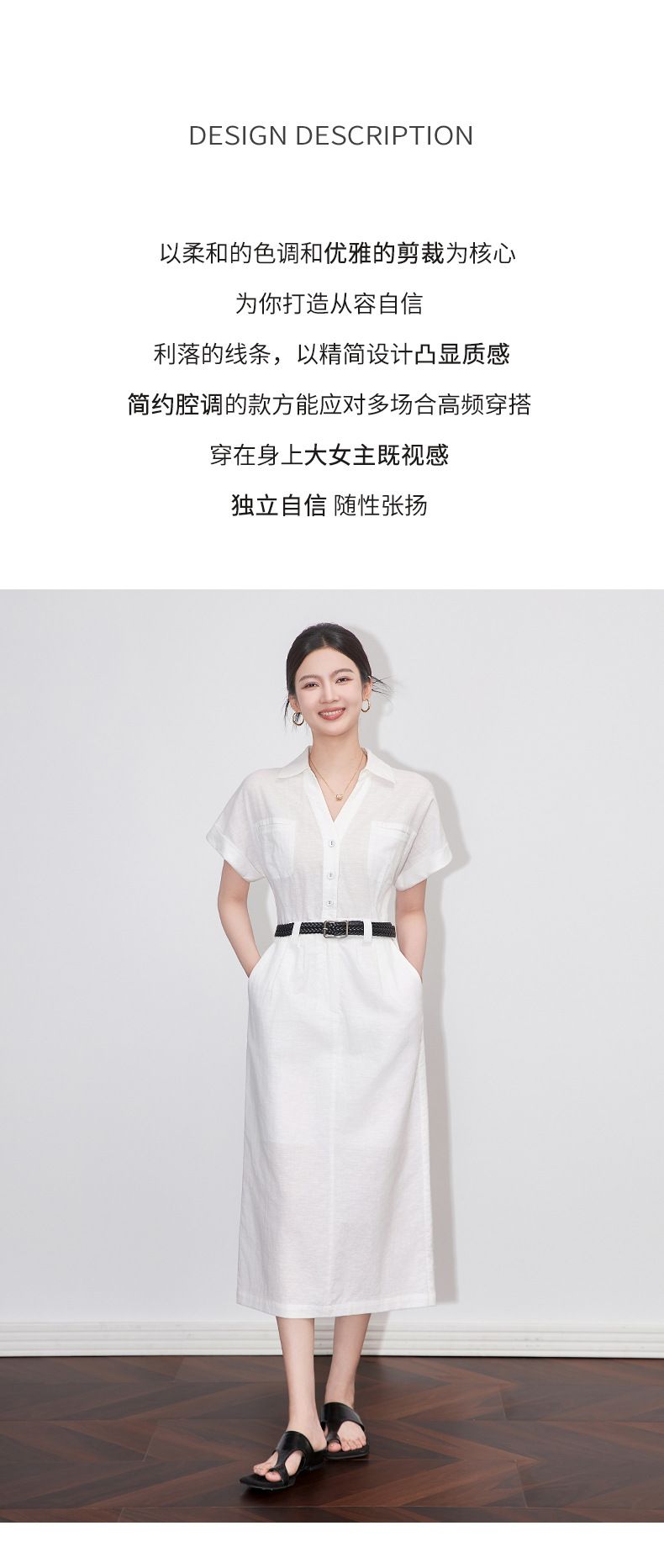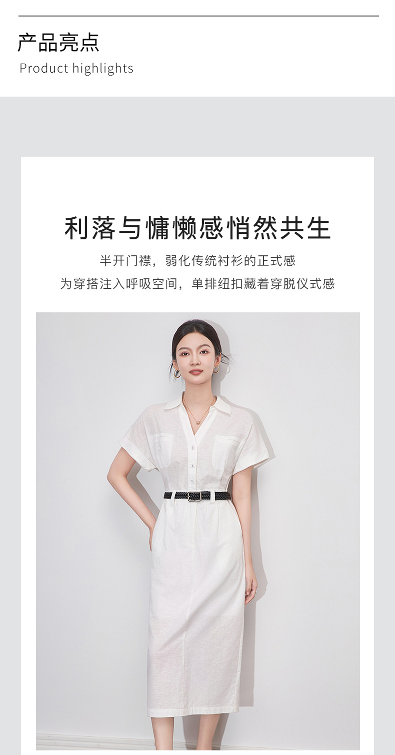「高货wl」全新升级【铂金会员367/天猫499/差价132】(43421)洛诗琳气质法式亚麻衬衫裙2025夏季知性通勤收腰连衣裙女